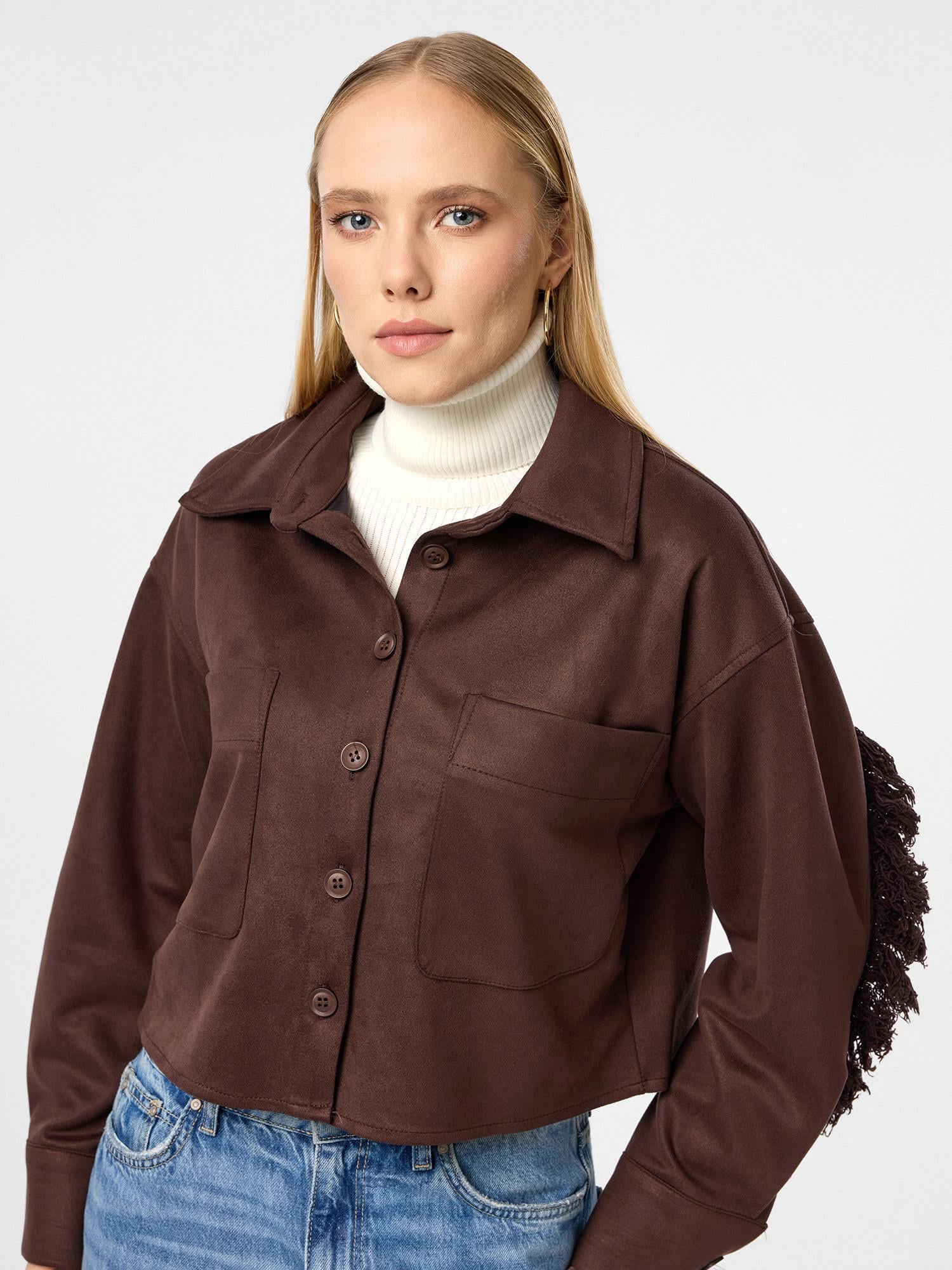 Arkası Taşlı Püsküllü Kısa Süet Gömlek (GML0344K)