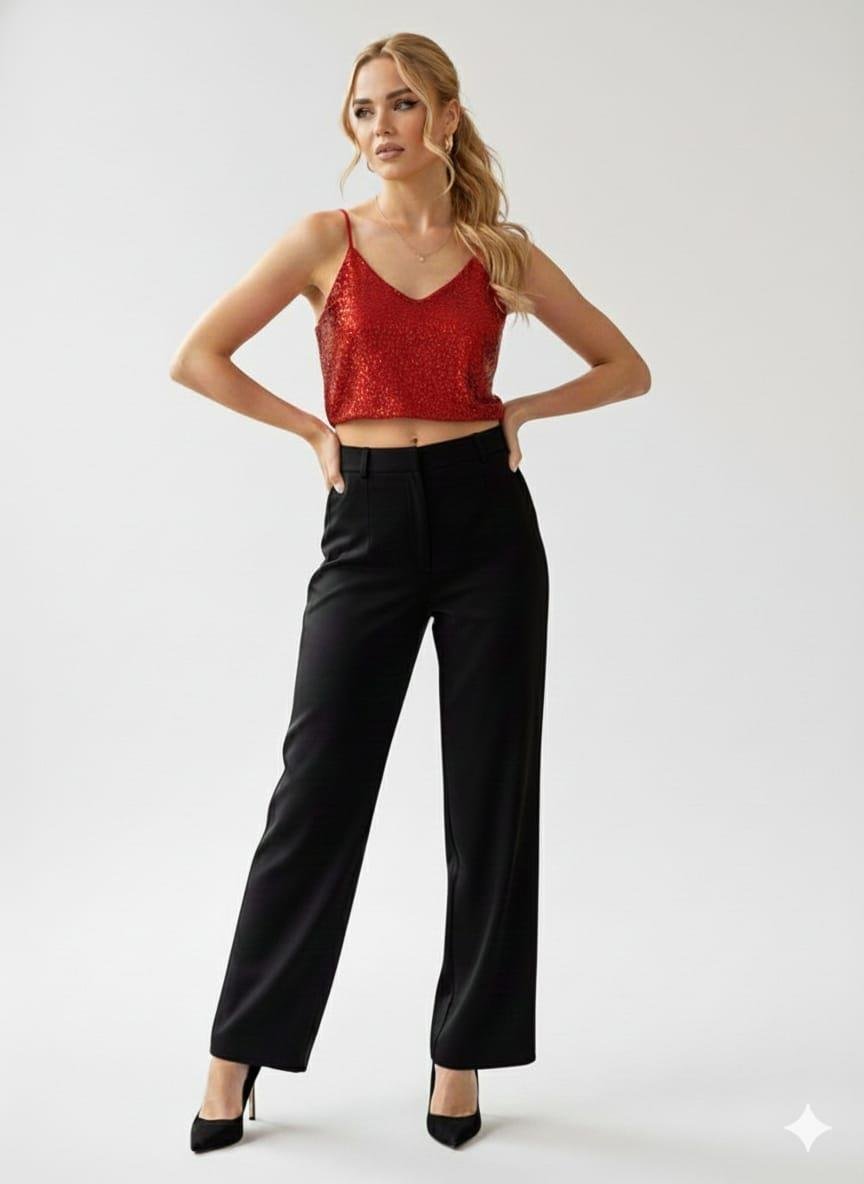 Askılı Pul Payet Bluz - Kırmızı (BLZ0043K)