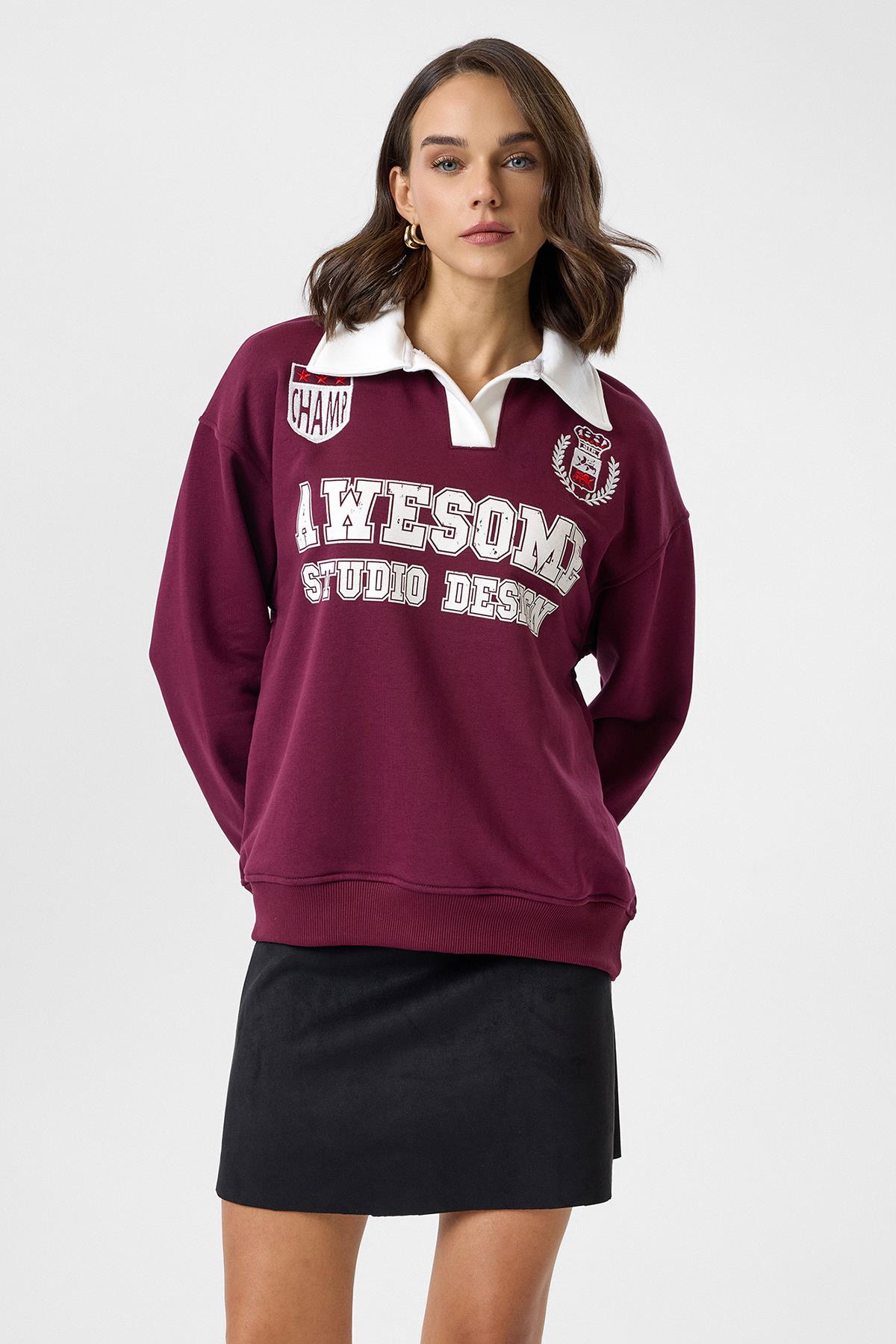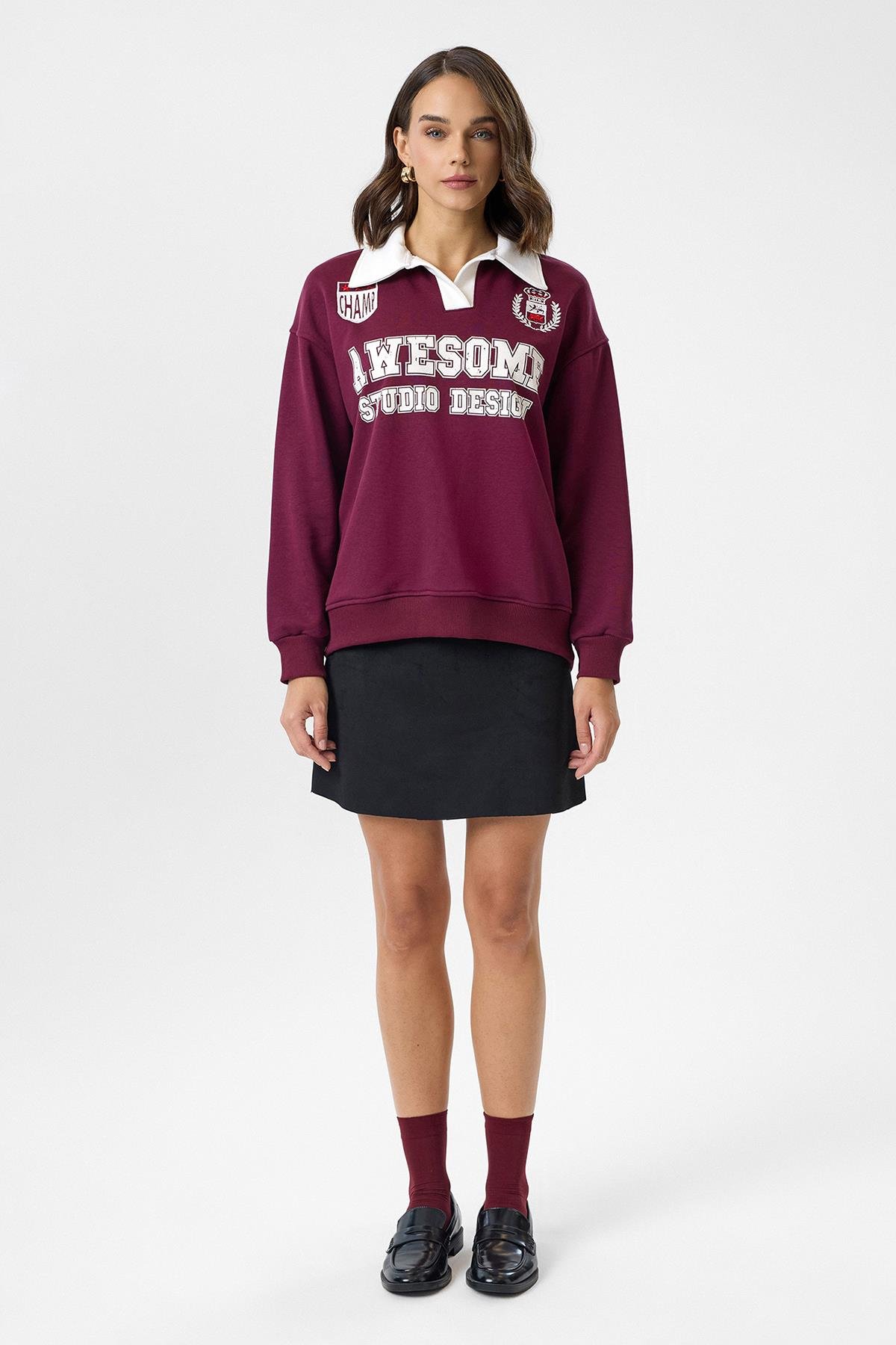 Awesome Yazılı Yakalı Sweatshirt (K0115SWT)