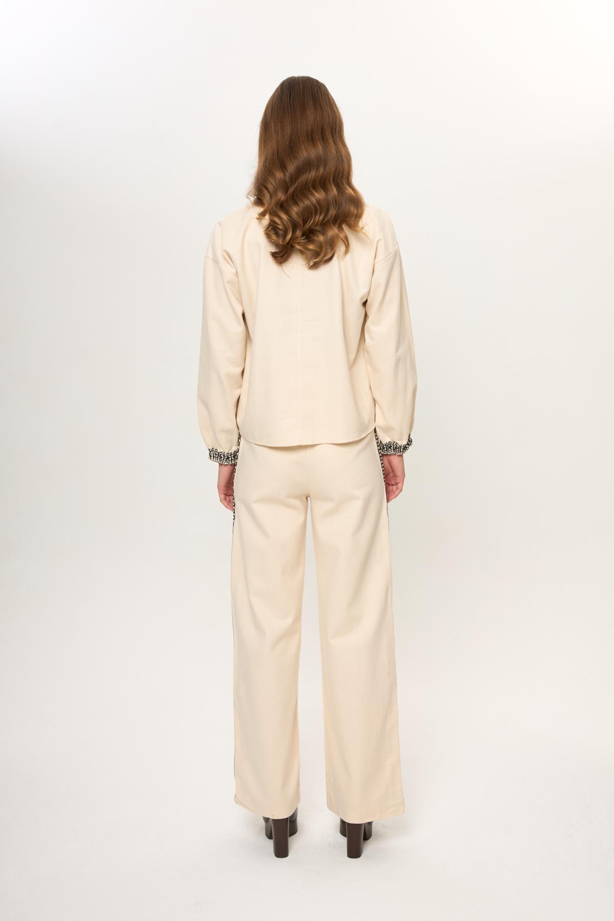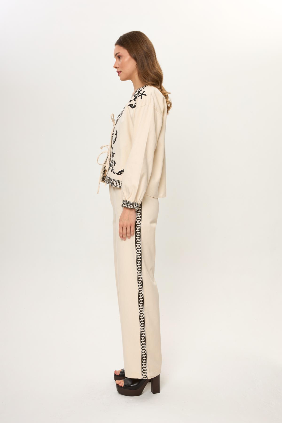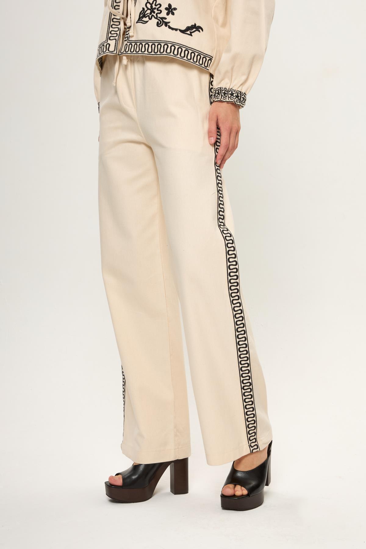Bej %100 Pamuk Nakış Detaylı Kadın Pantolon (PNT0262Y)