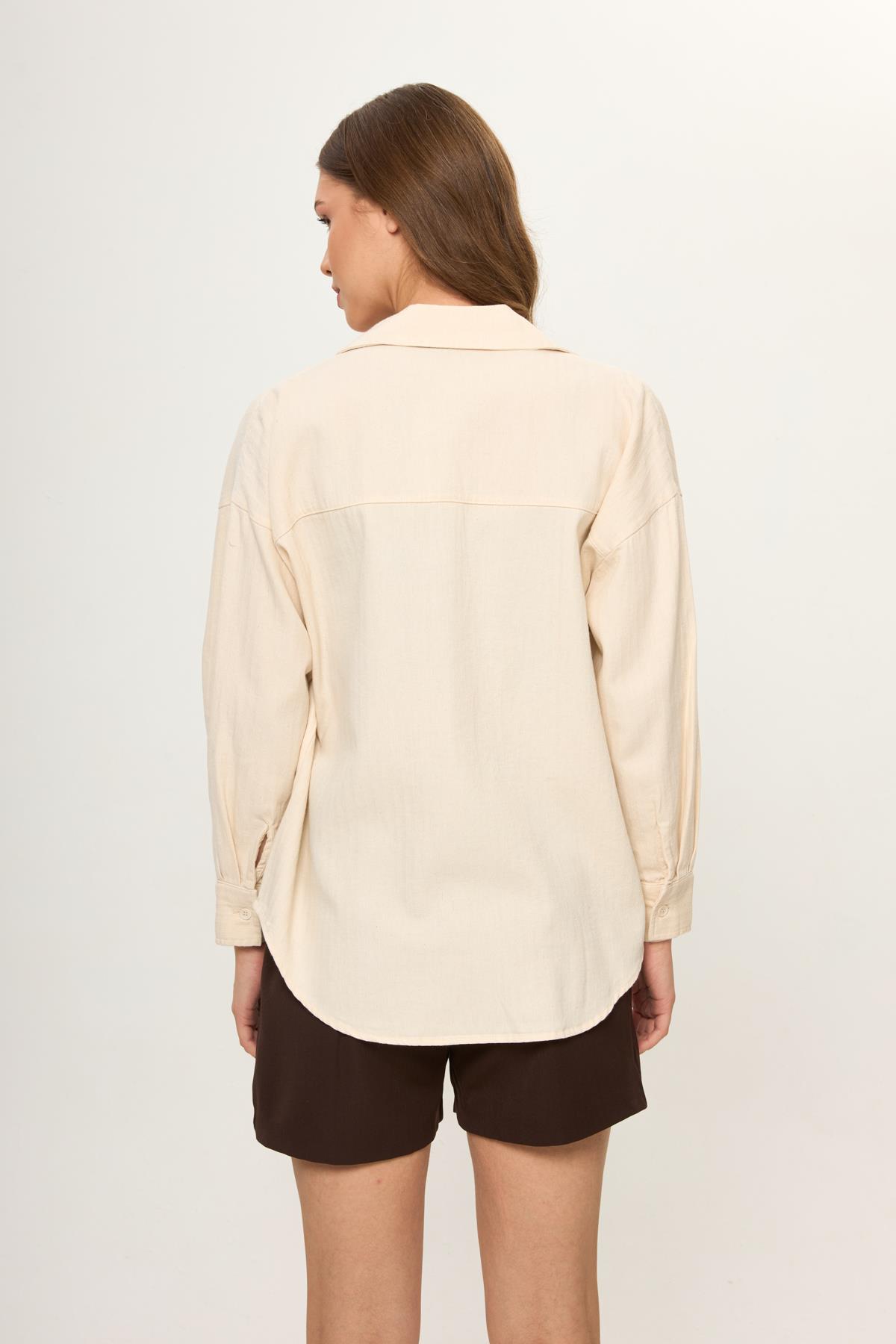 Bej %100 Pamuk Nakışlı Balıksırtı Desenli Kadın Gömlek (GML0354Y)