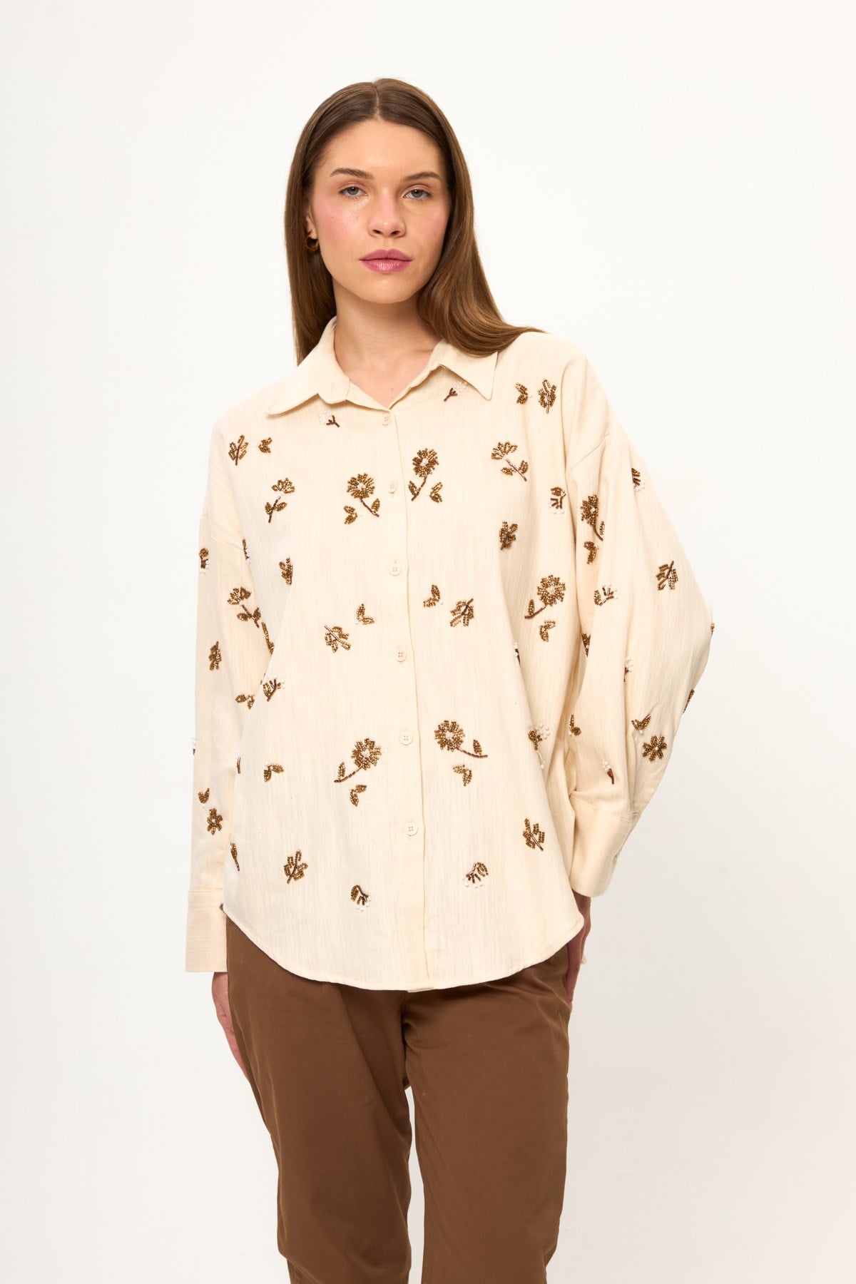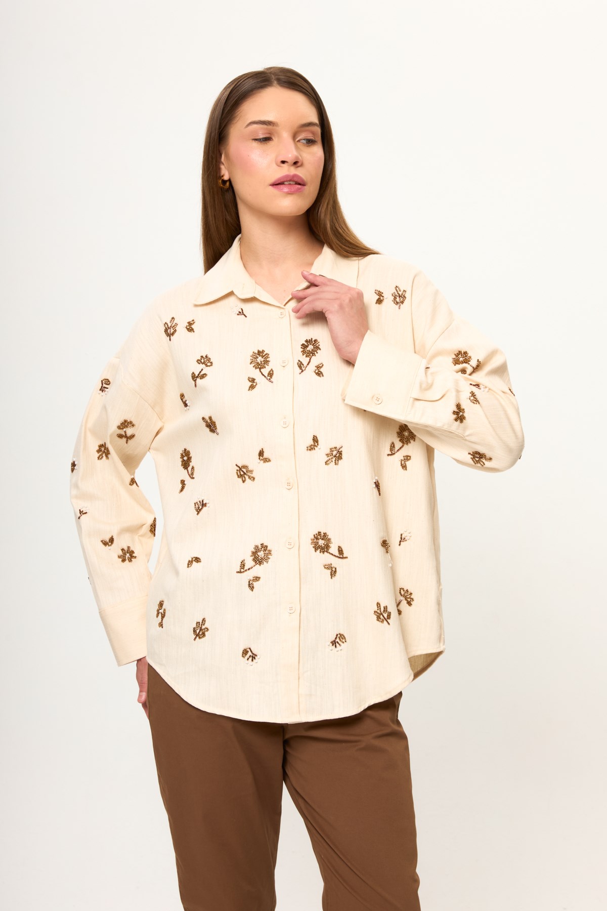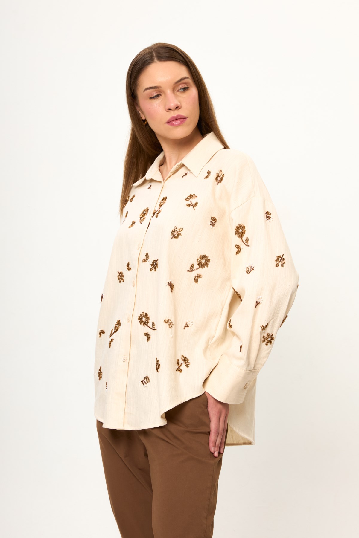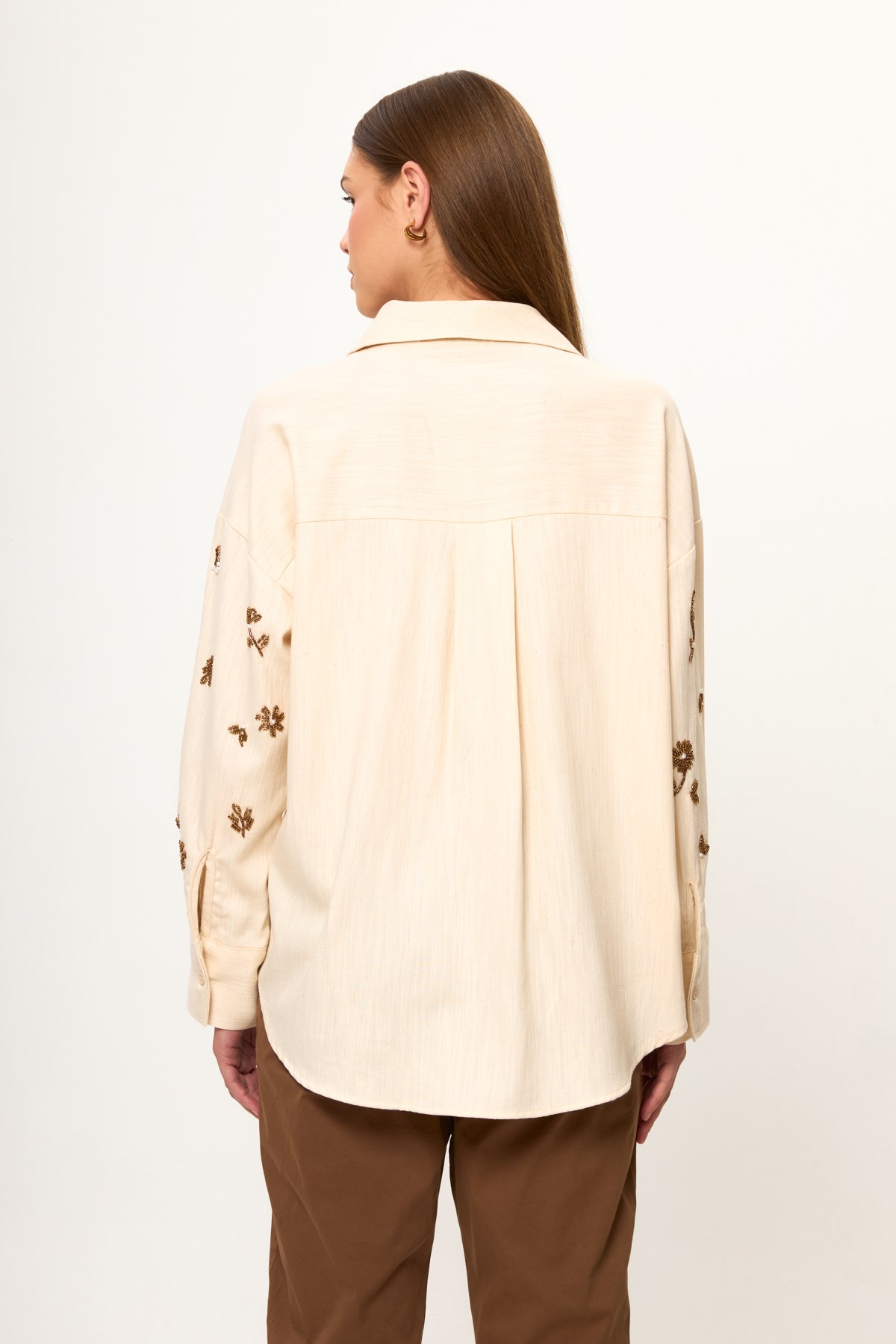 Boncuk İşlemeli Gabardin Gömlek Boncuk İşlemeli Gabardin Gömlek
