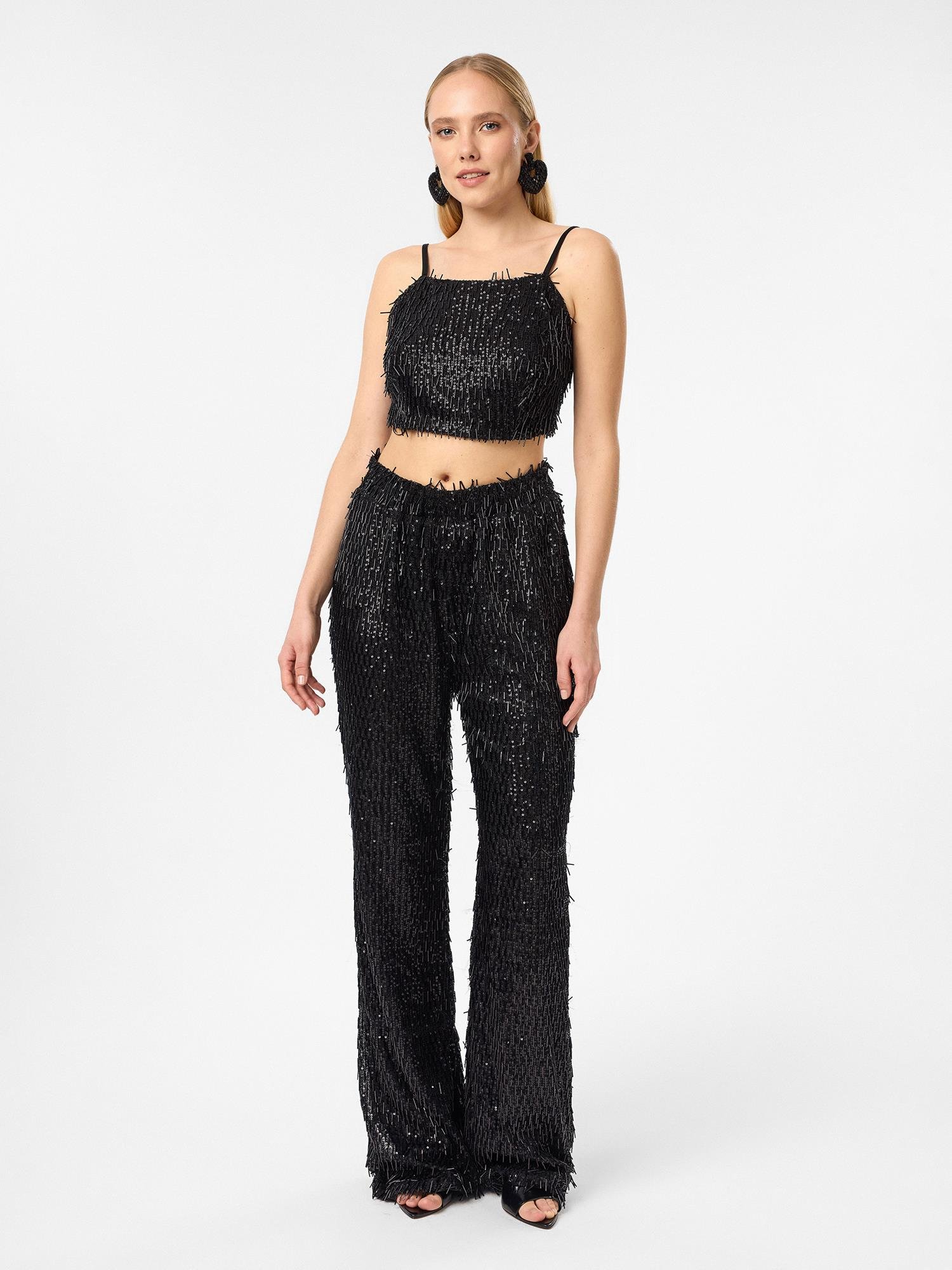 Boncuklu İspanyol Paça Pantolon (PNT0261K)