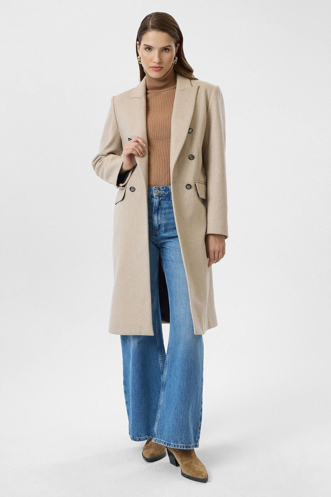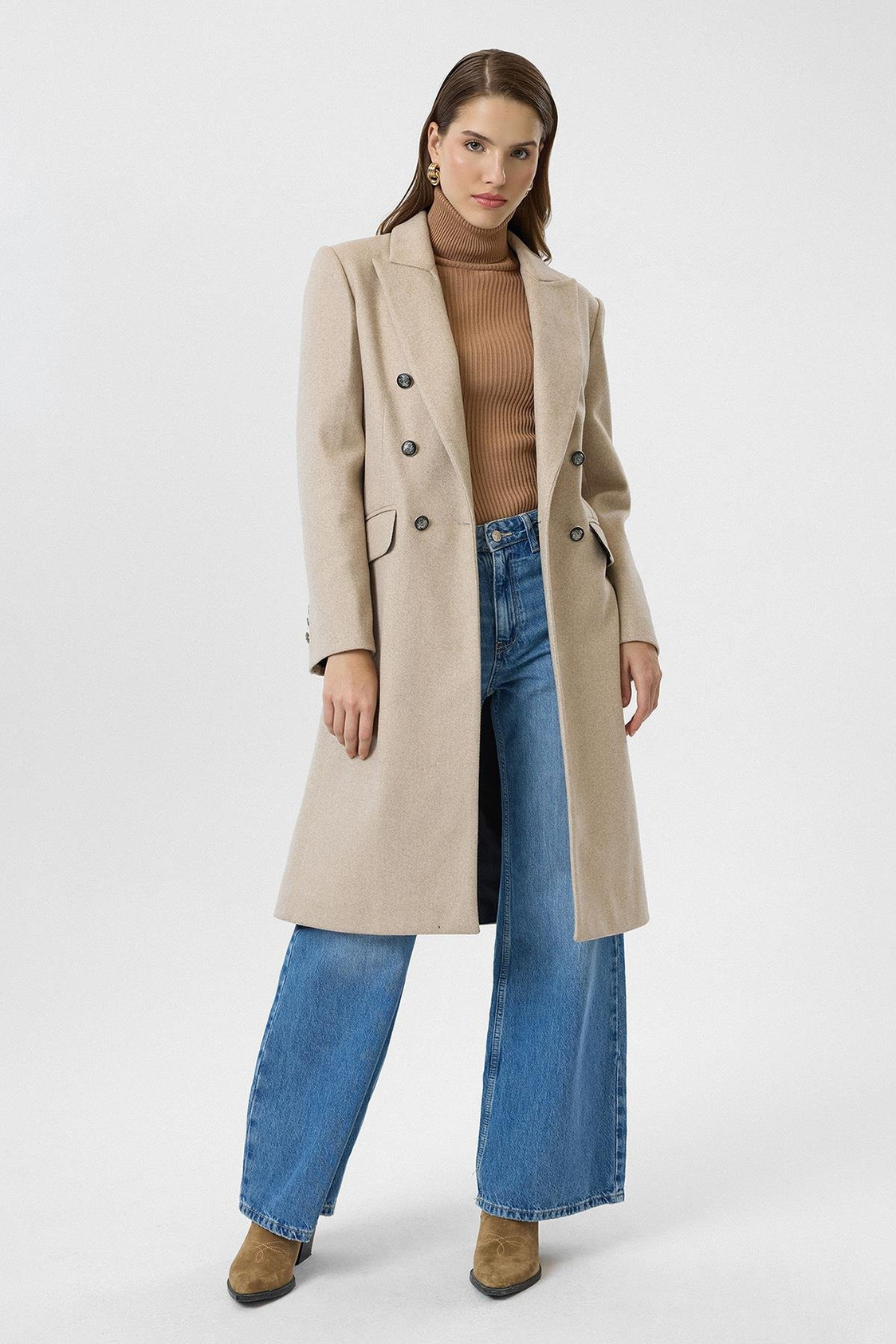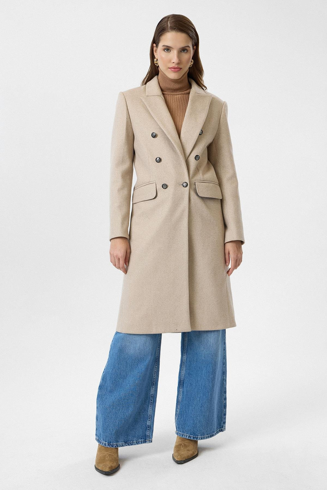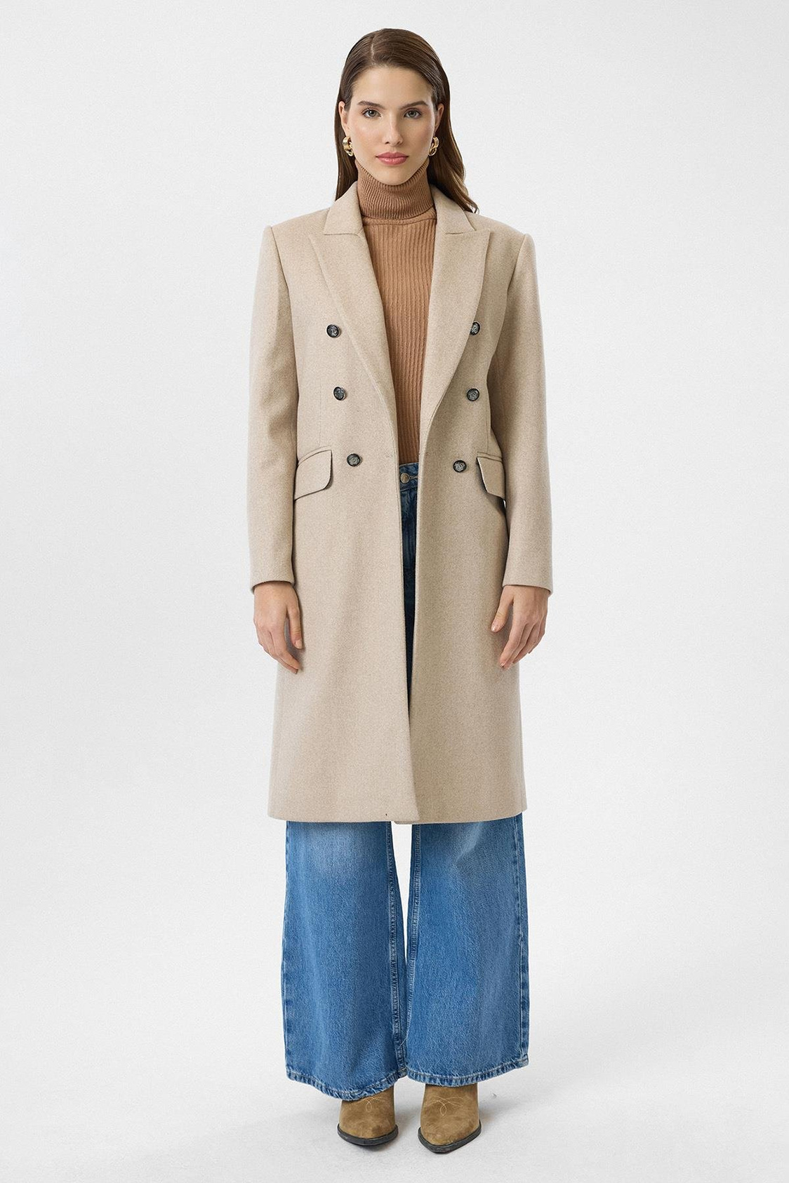 Cep Kapaklı Düğmeli Uzun Kaşe Kaban (KBN0060K)