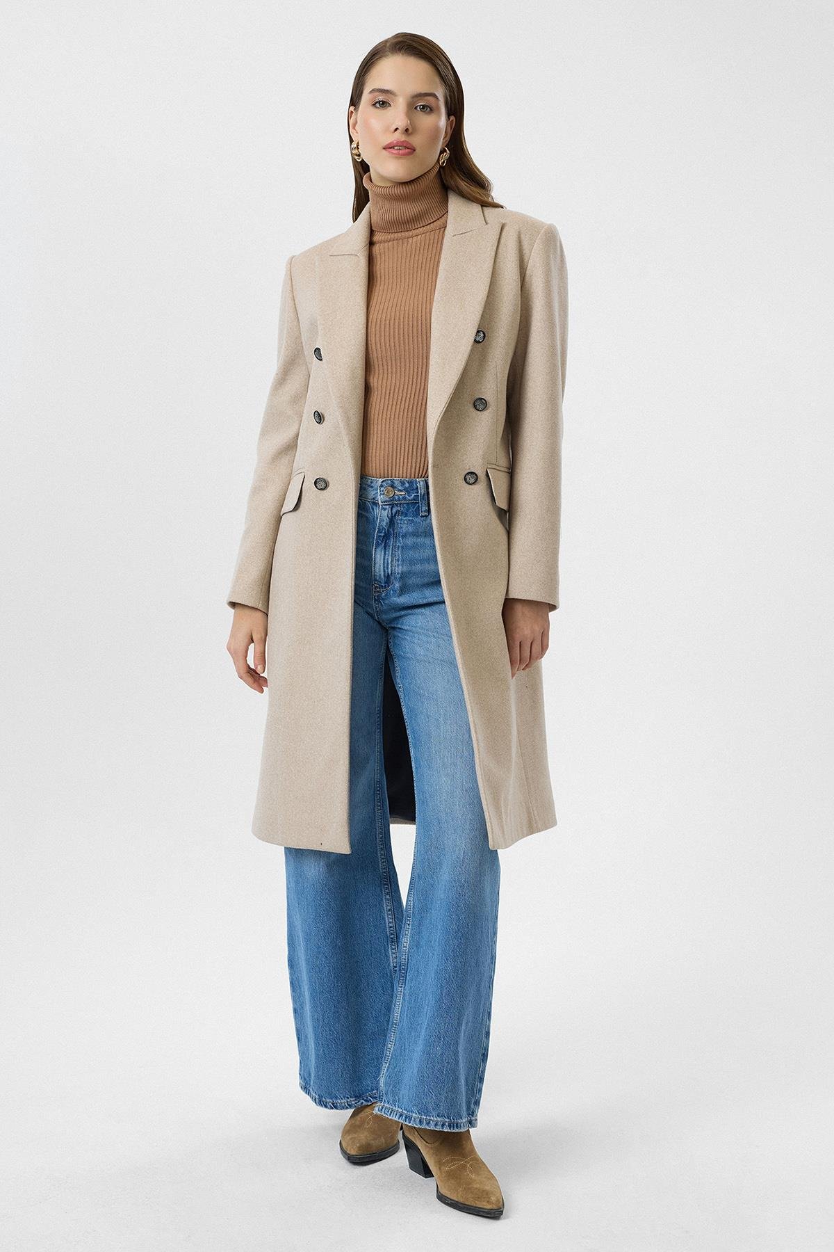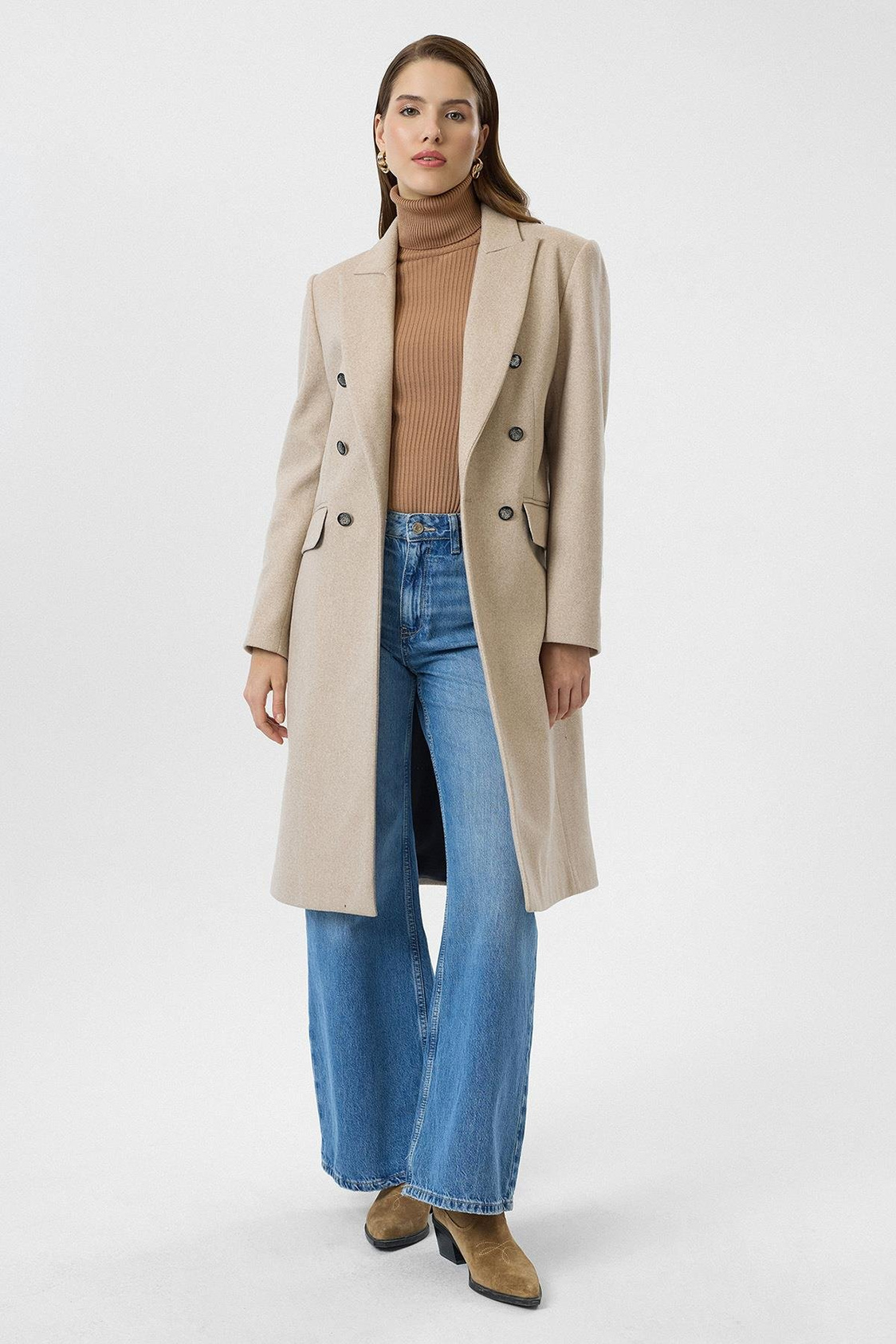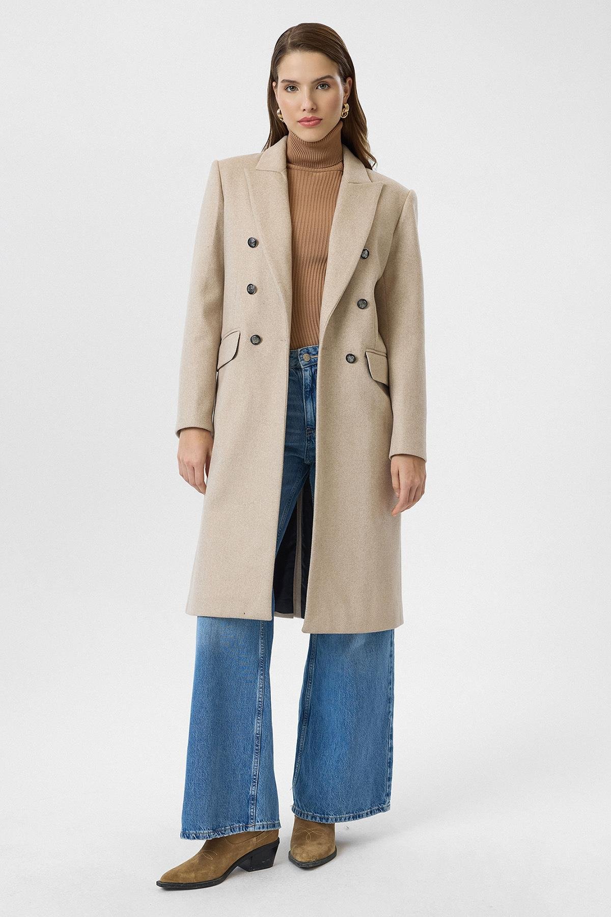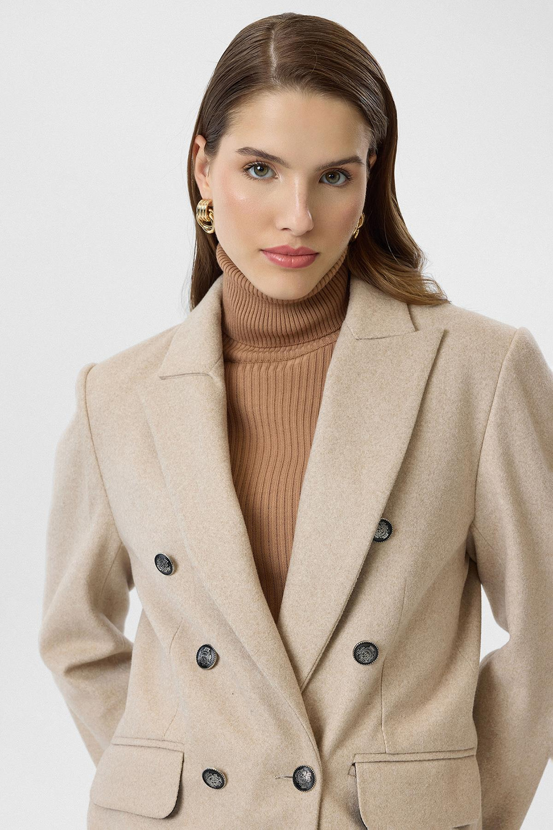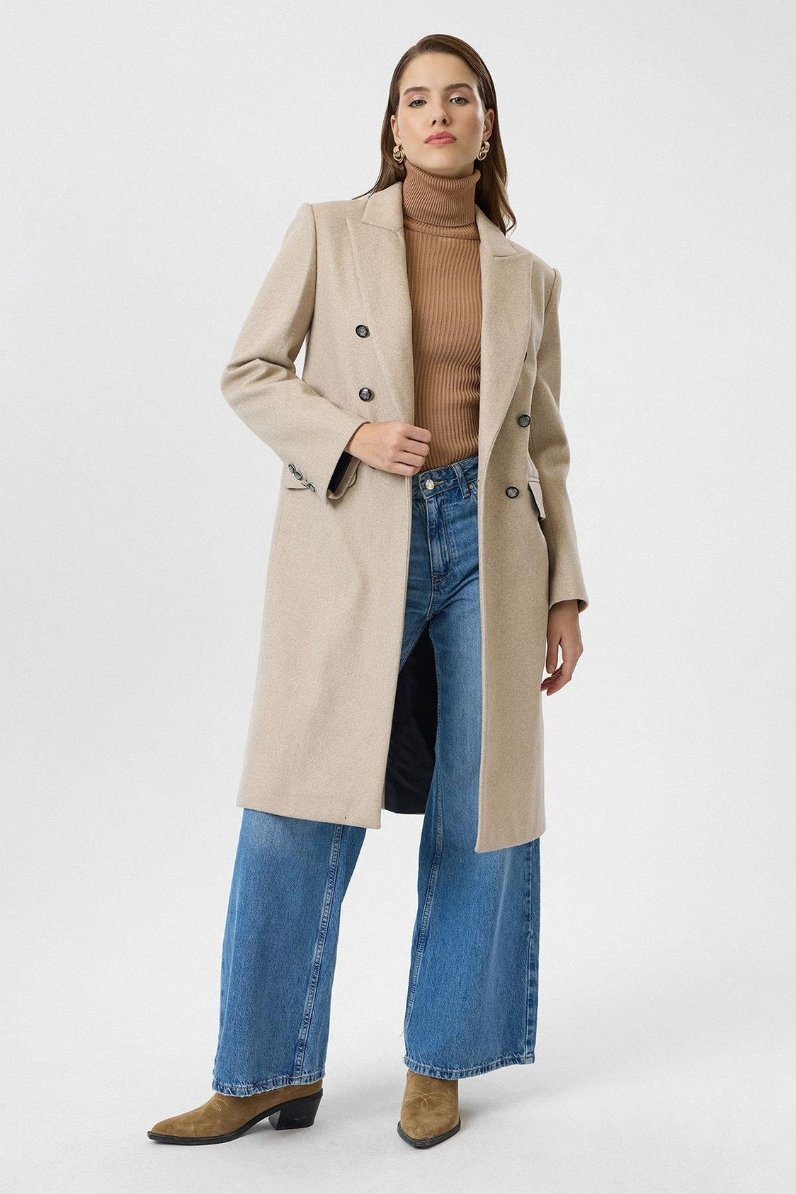 Cep Kapaklı Düğmeli Uzun Kaşe Kaban (KBN0060K)