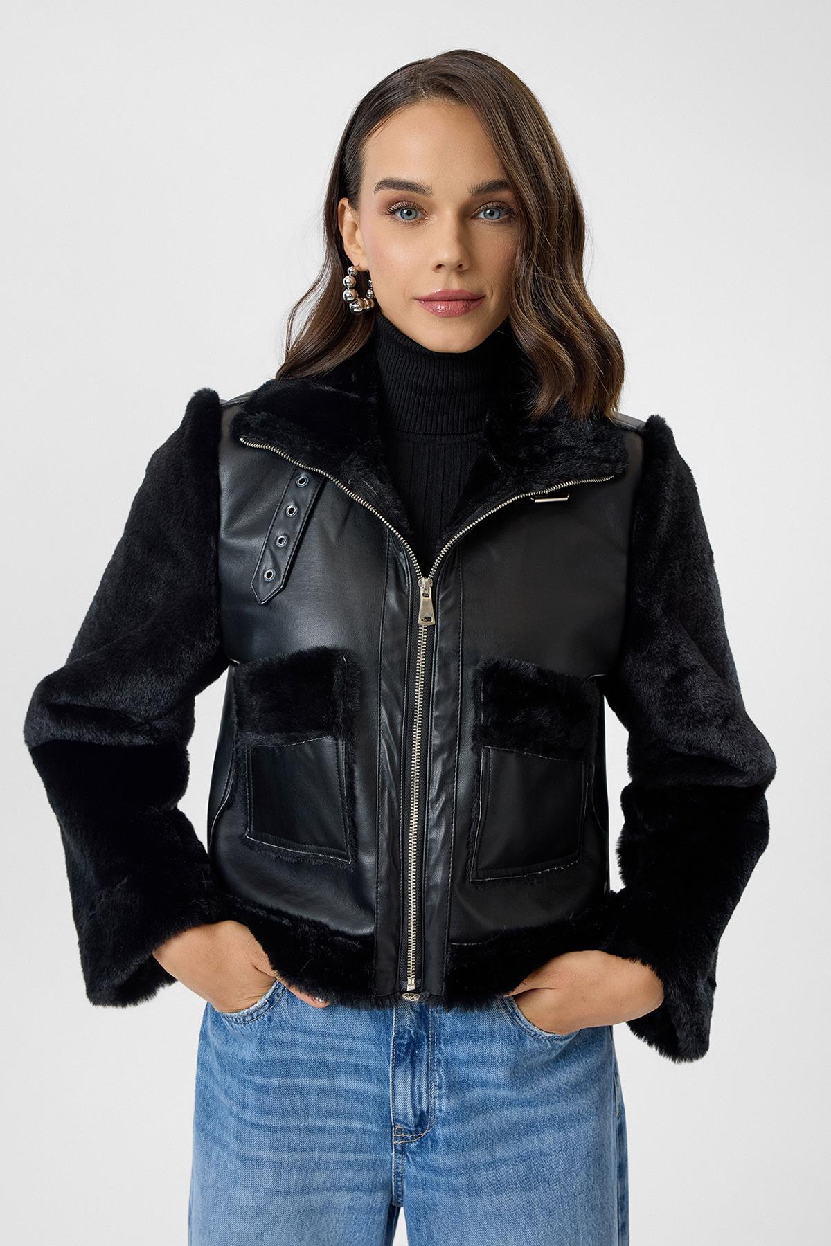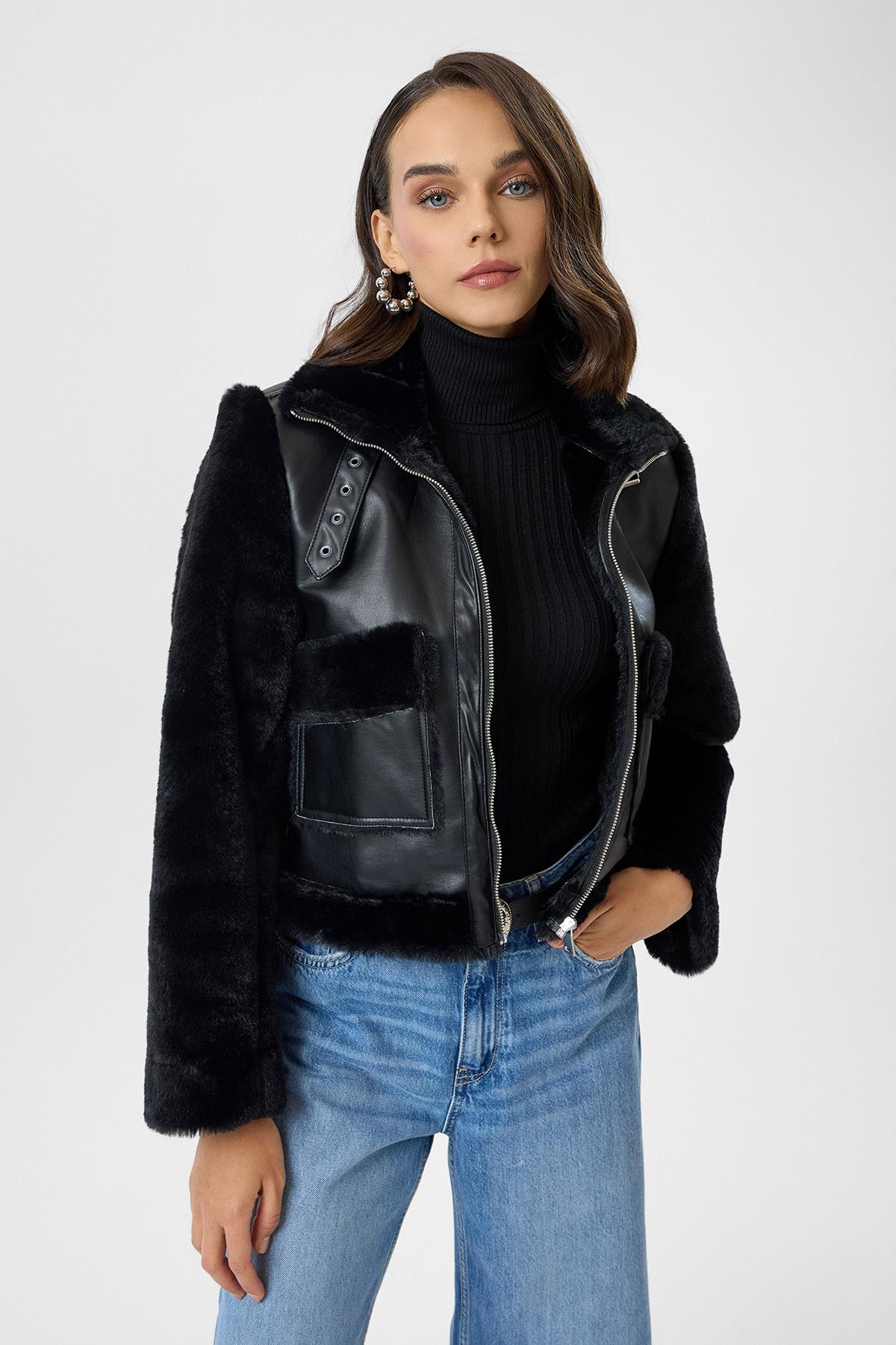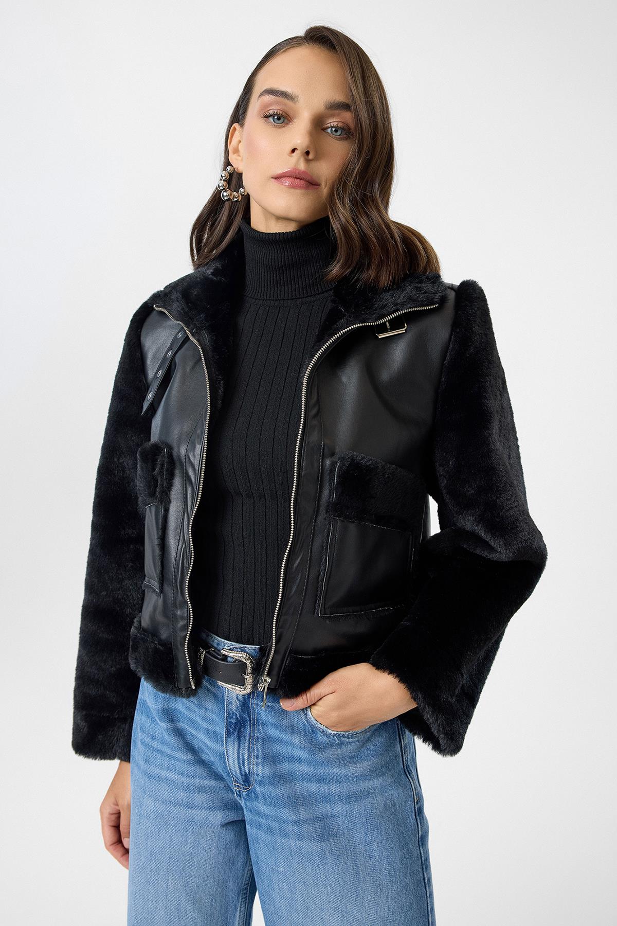 Çift Cepli Deri Peluş Mont (MNT0053K)