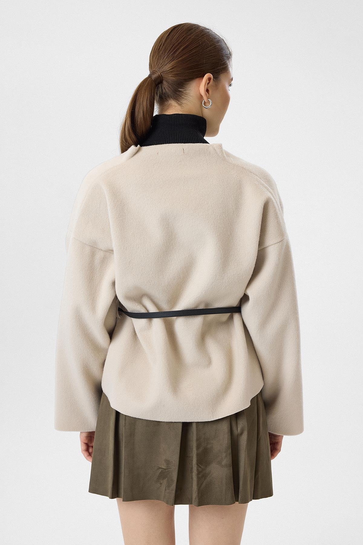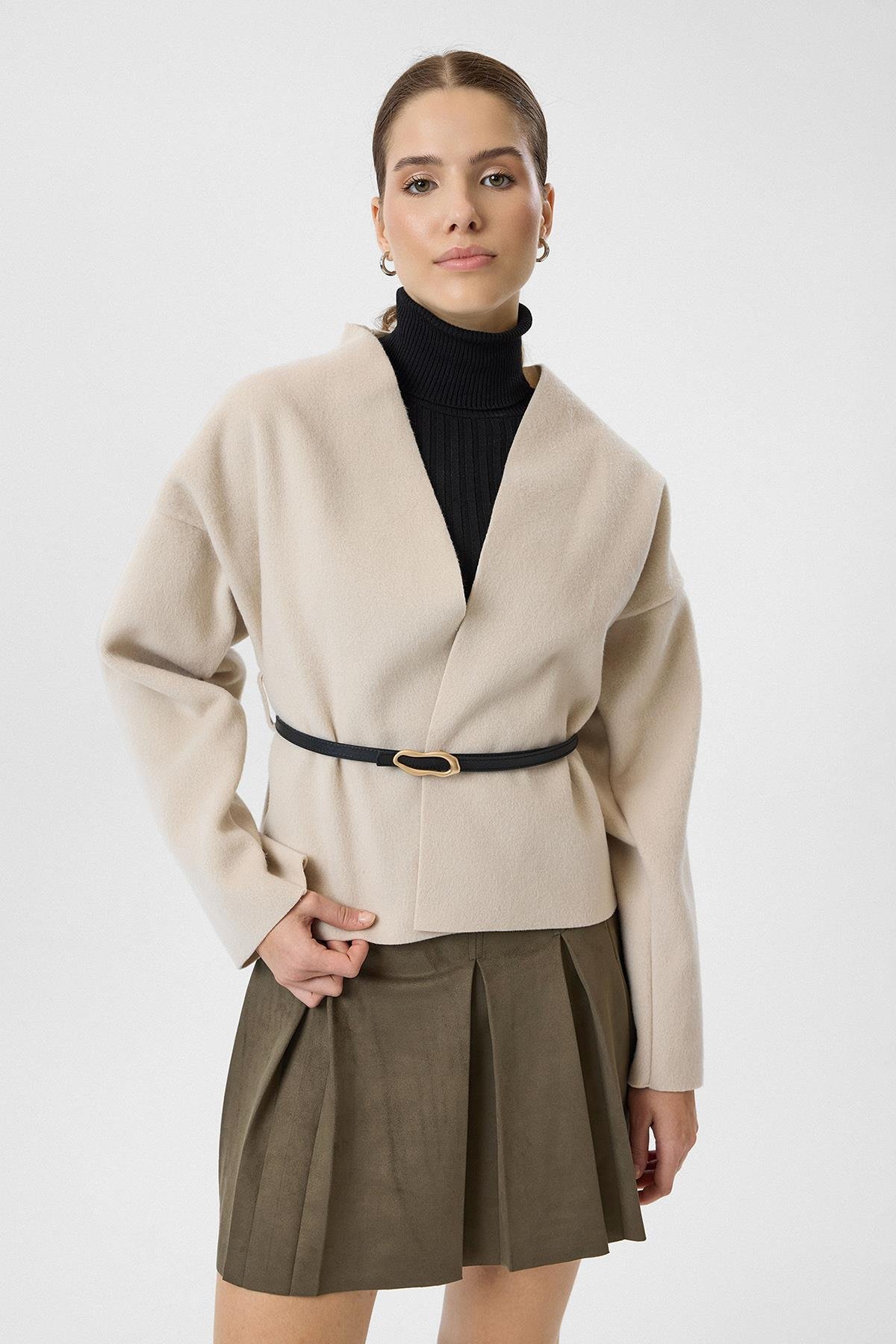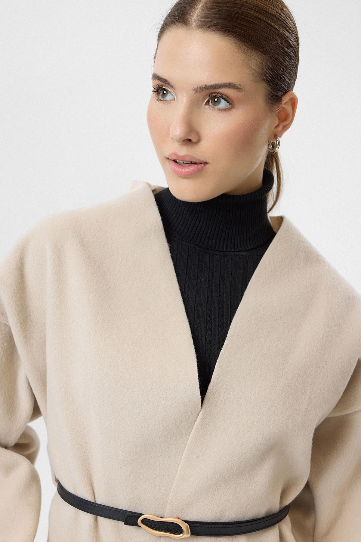 Deri Kemerli Kaşe Kimono (KMN0098K)