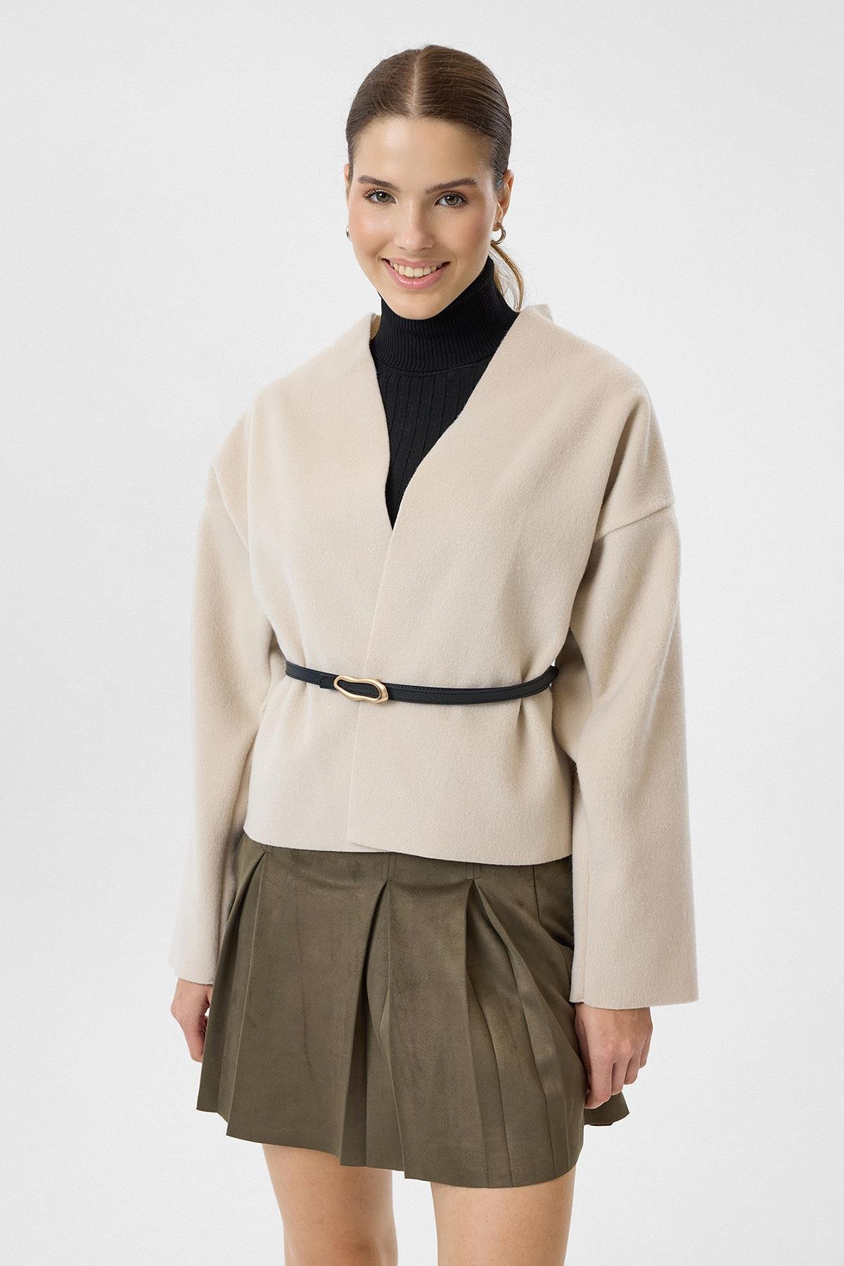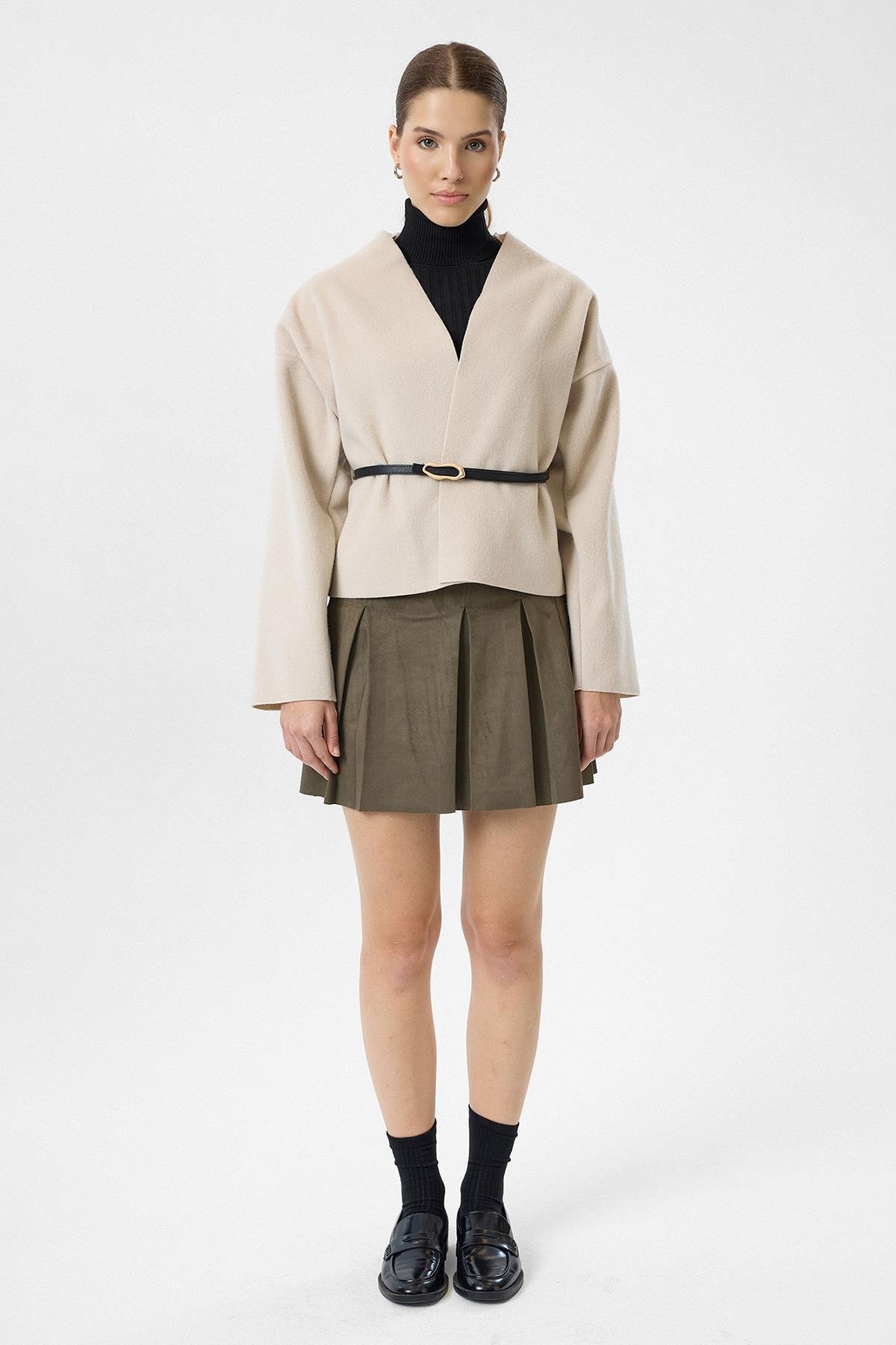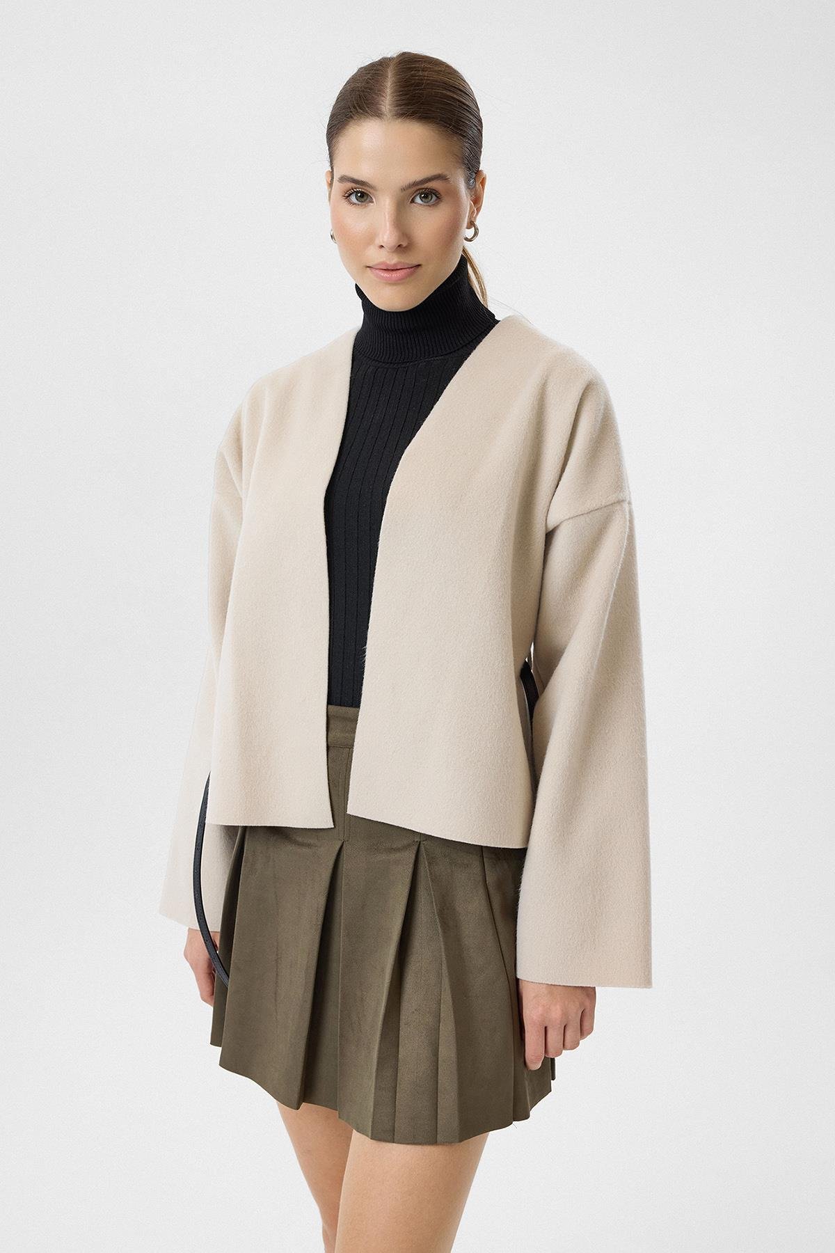 Deri Kemerli Kaşe Kimono (KMN0098K)