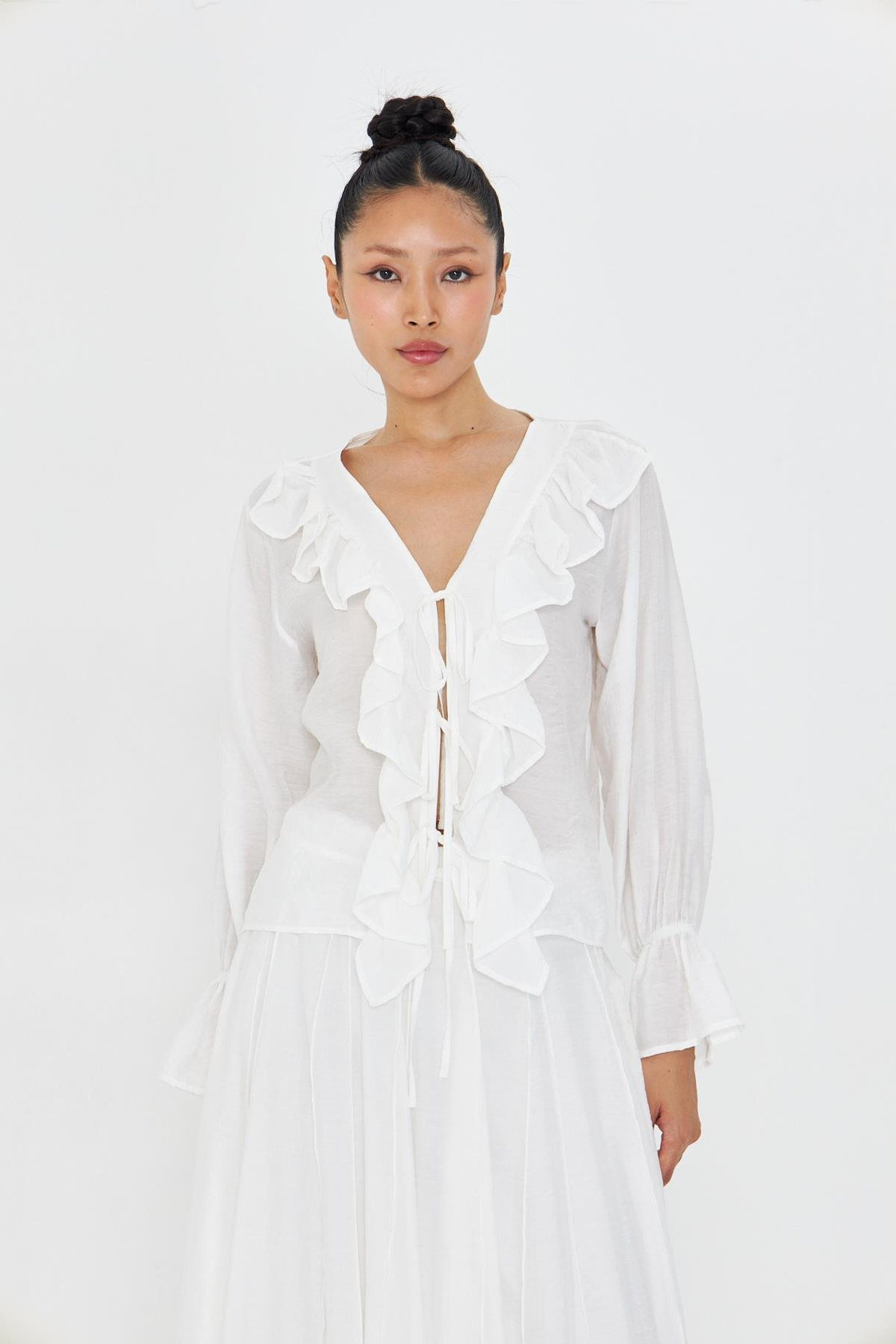 Fırfır Detaylı Bağlamalı Bluz Fırfır Detaylı Bağlamalı Bluz