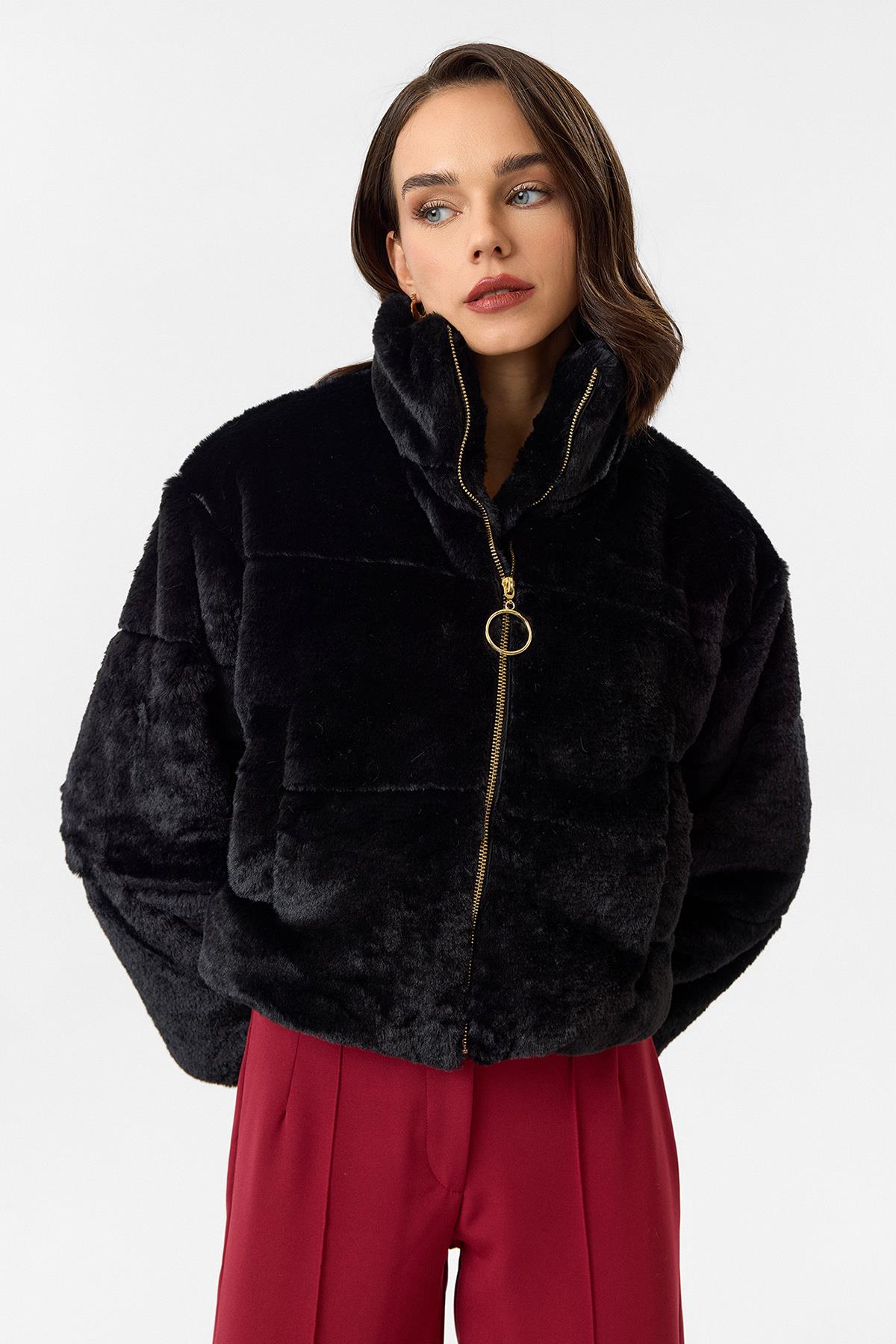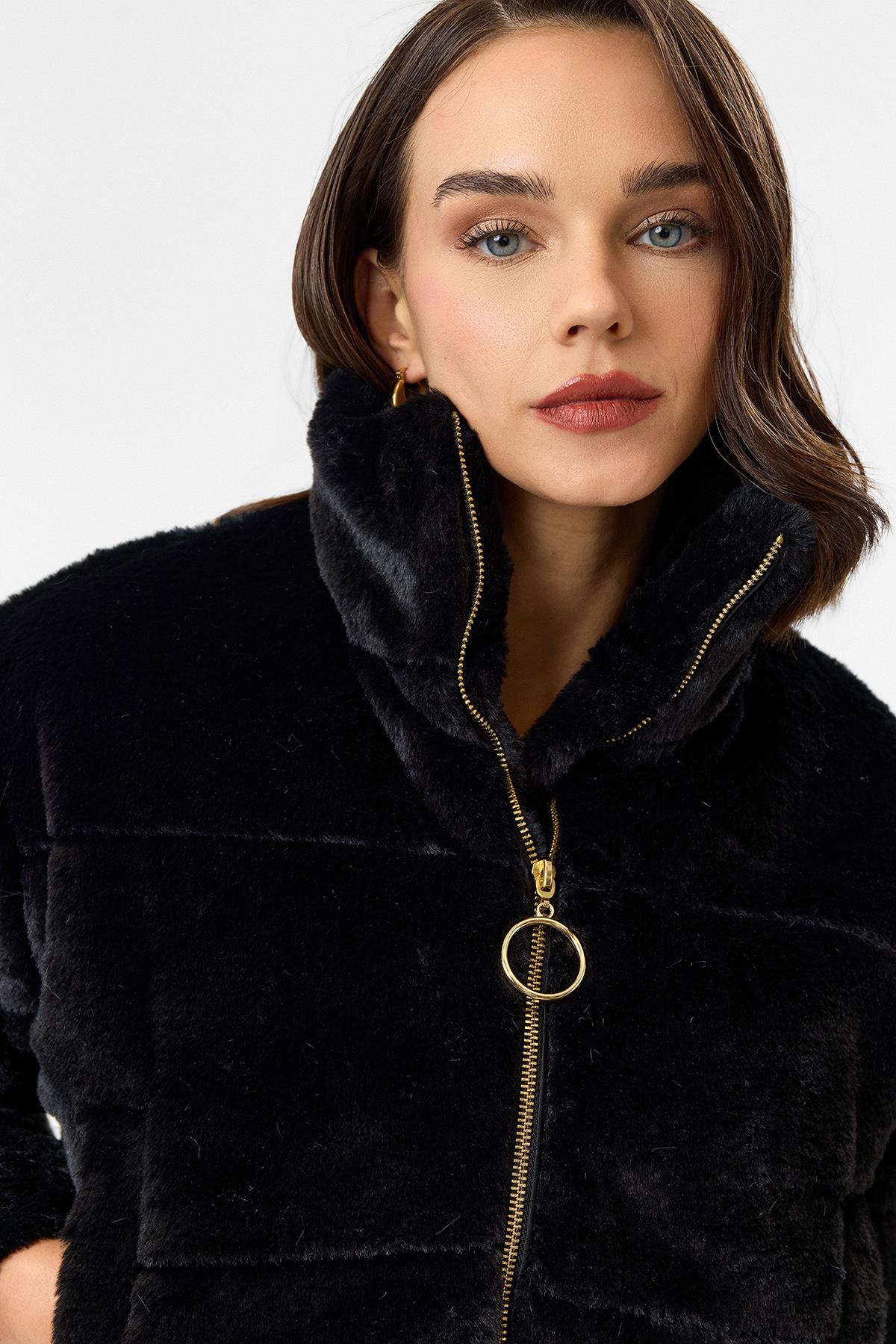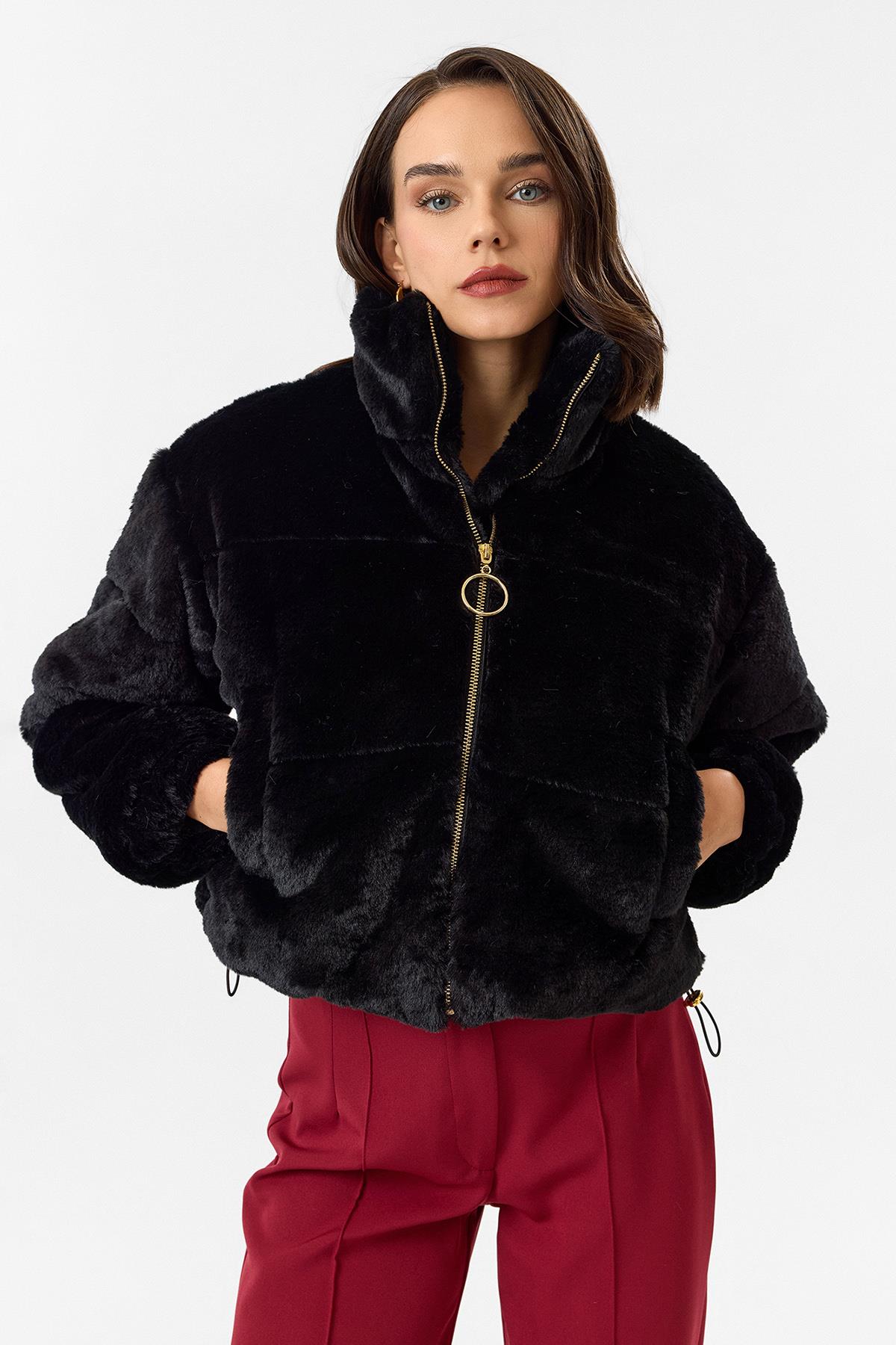 Fleto Cepli Alt Büzgülü Kapitone Peluş Mont (MNT0019K)