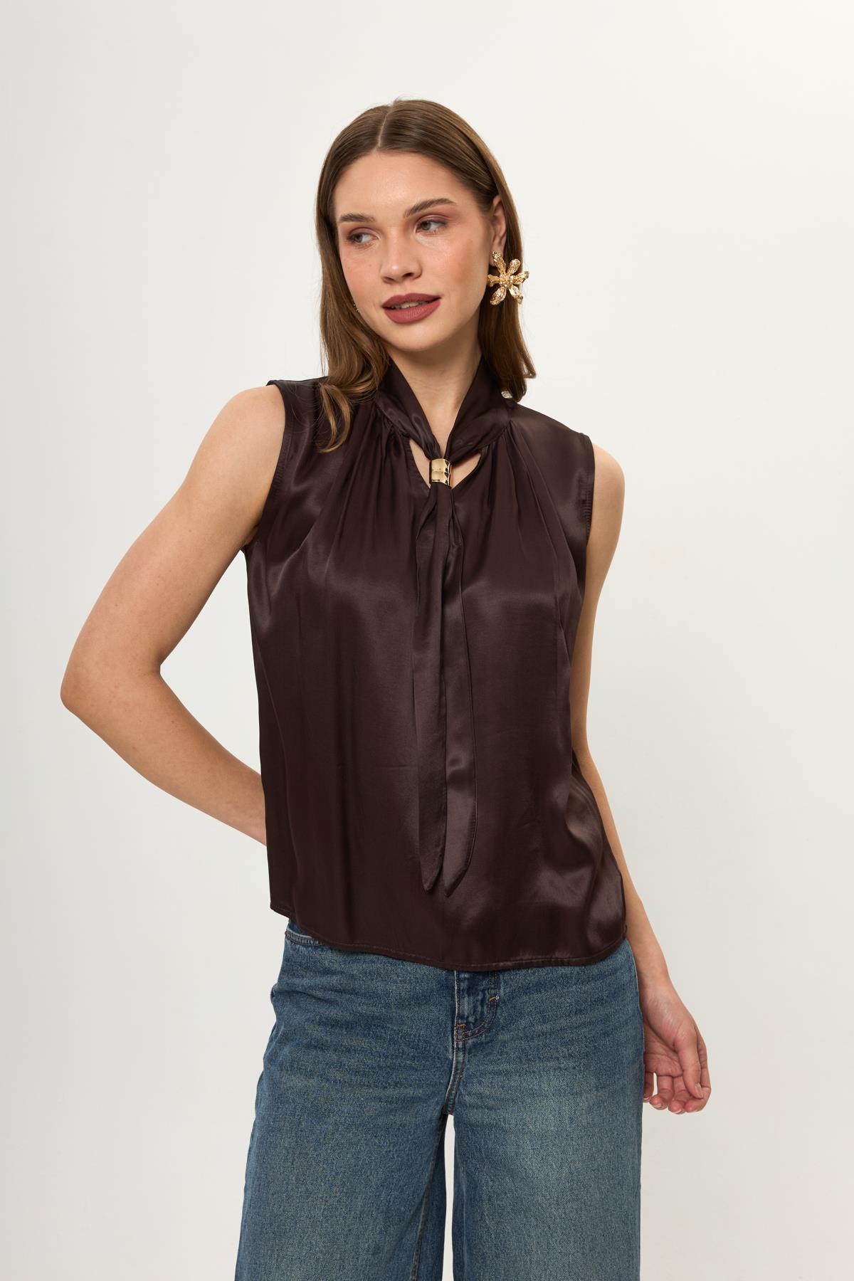 Fular Yakalı Saten Bluz (BLZ0093K)