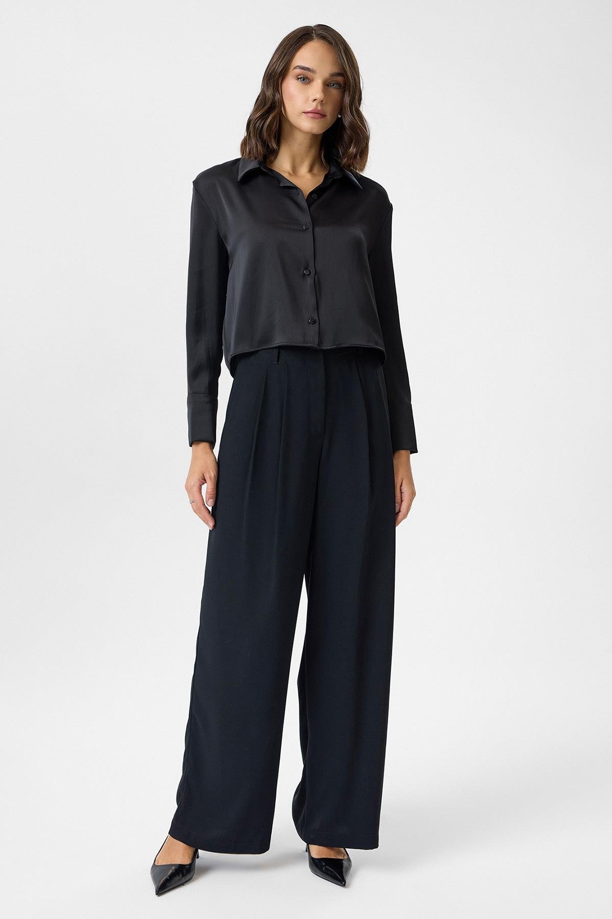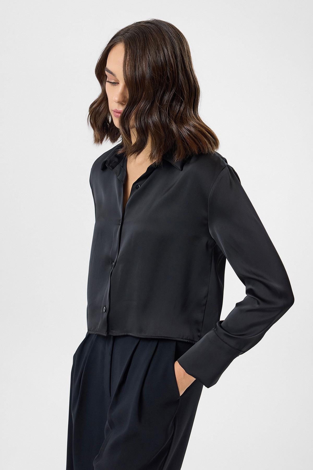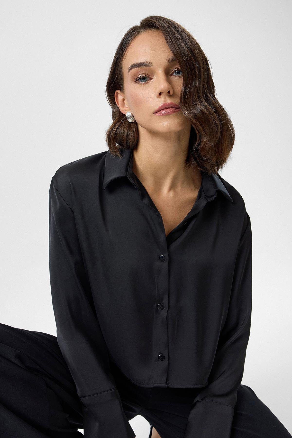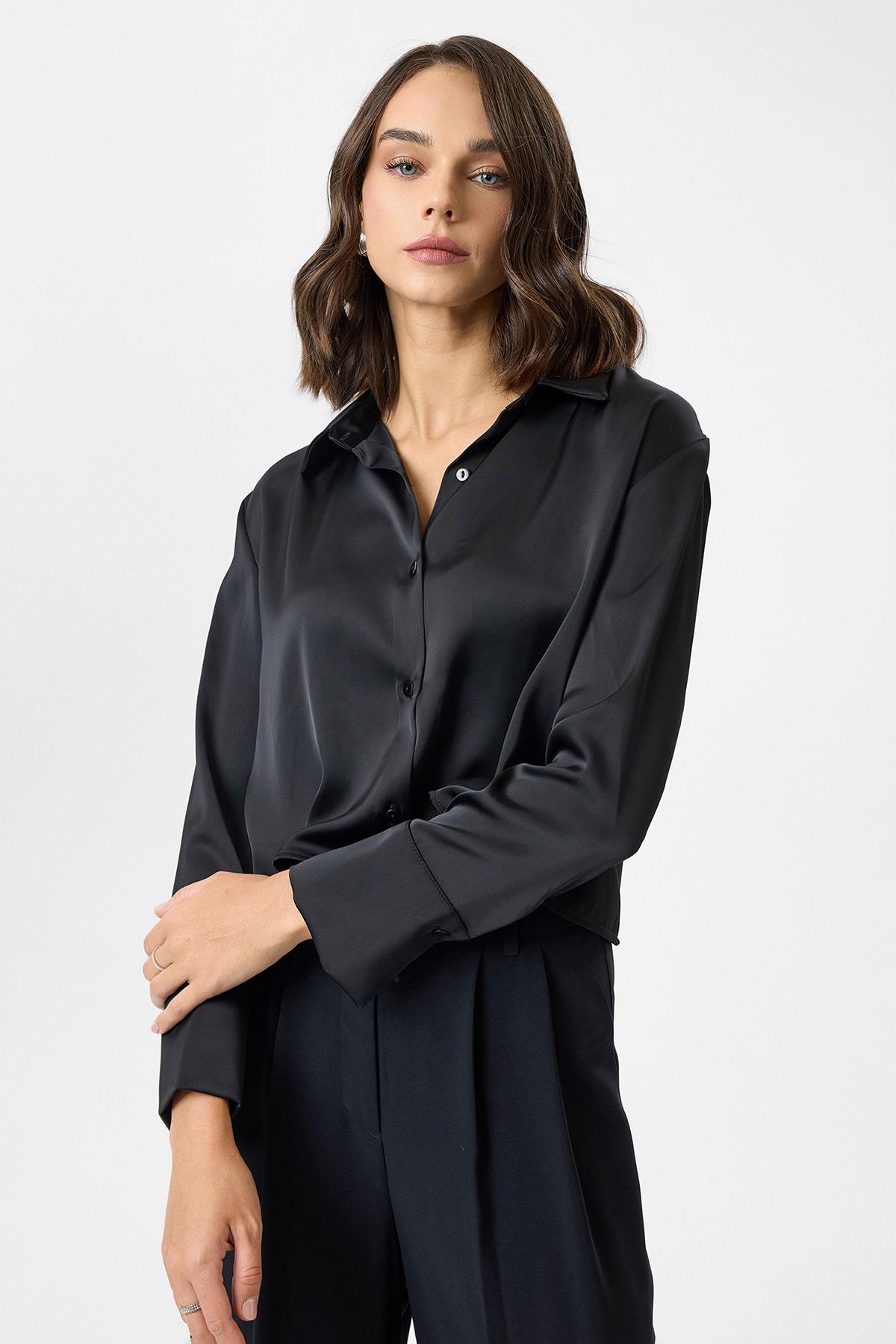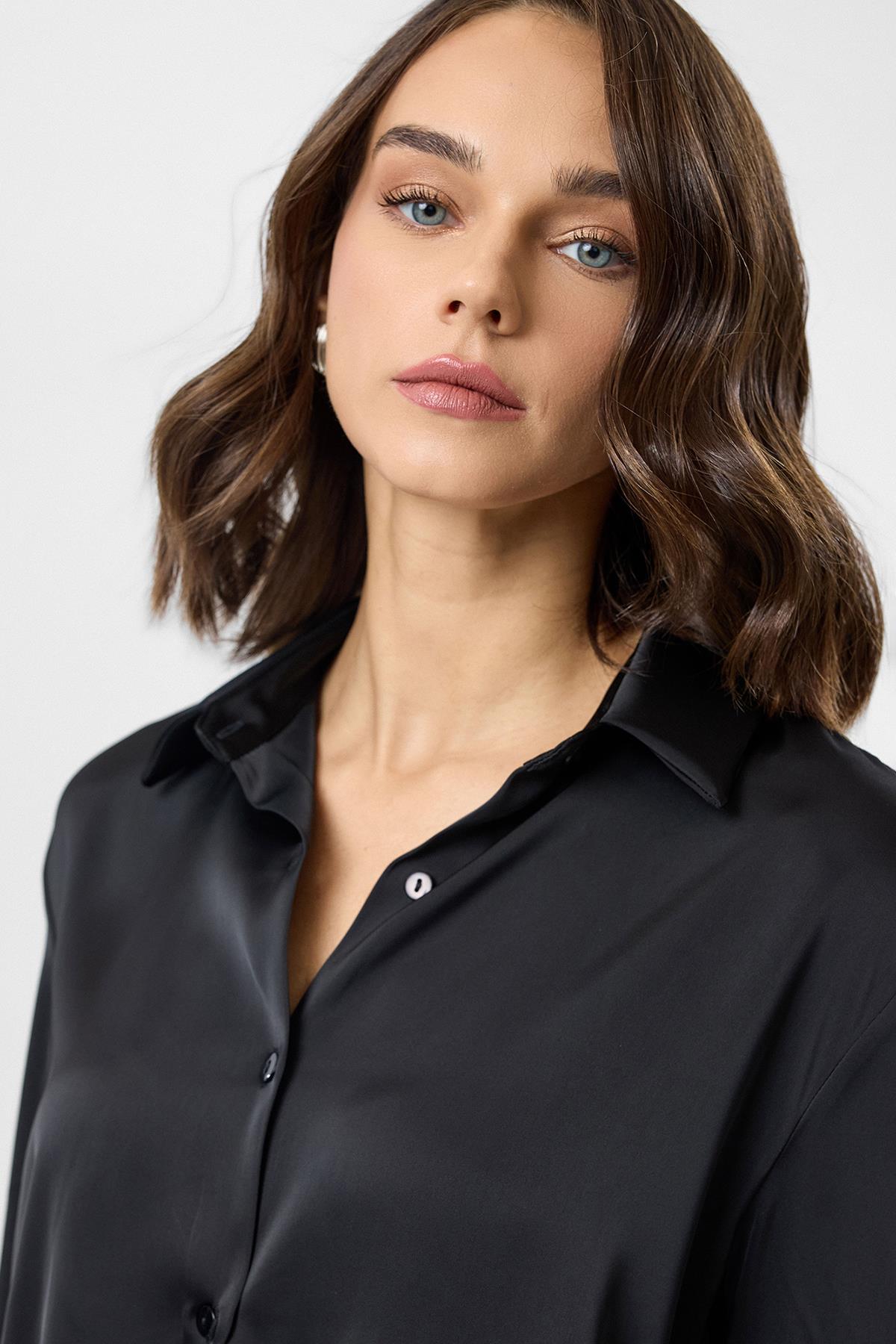 Geniş Manşetli Kısa Saten Gömlek (GML0338Y)
