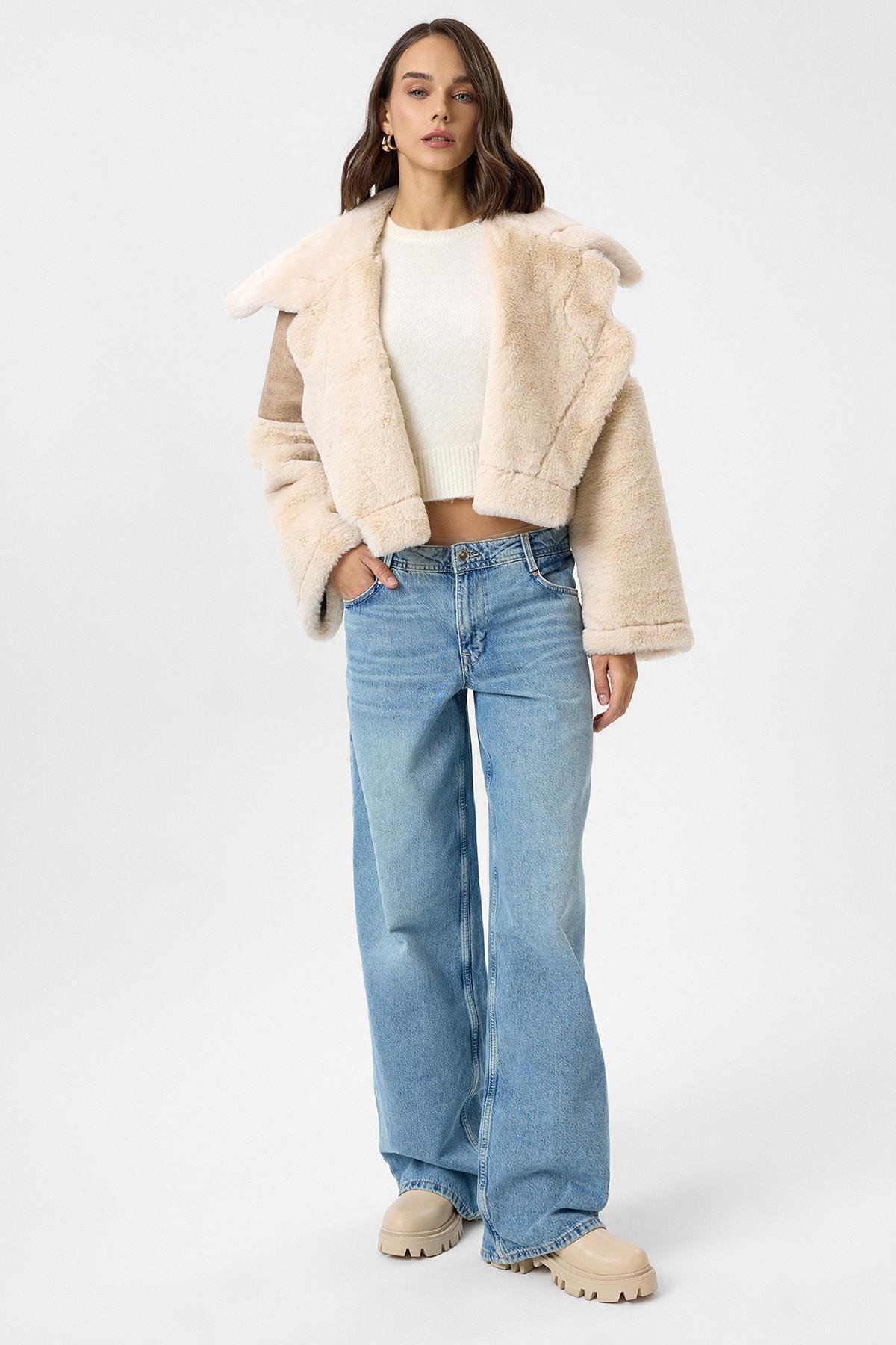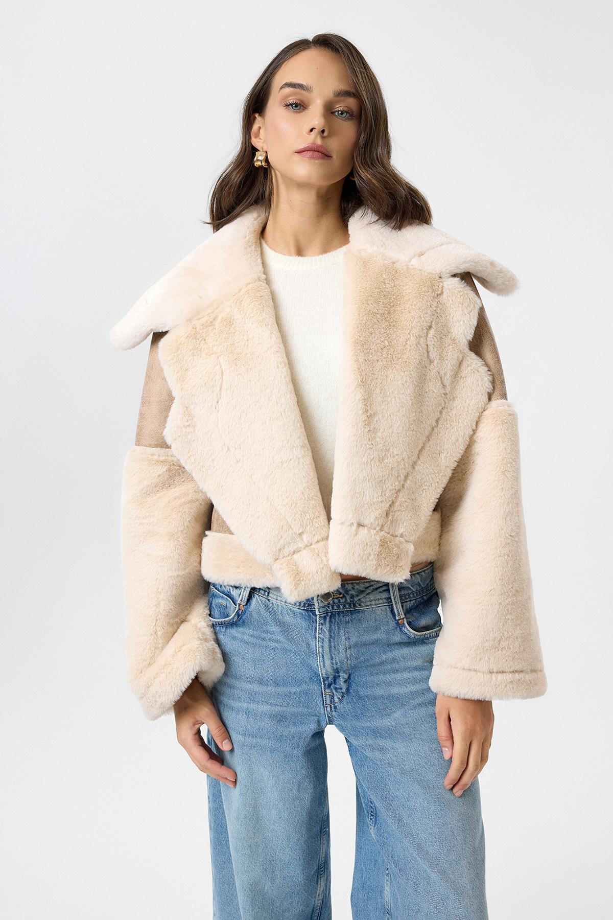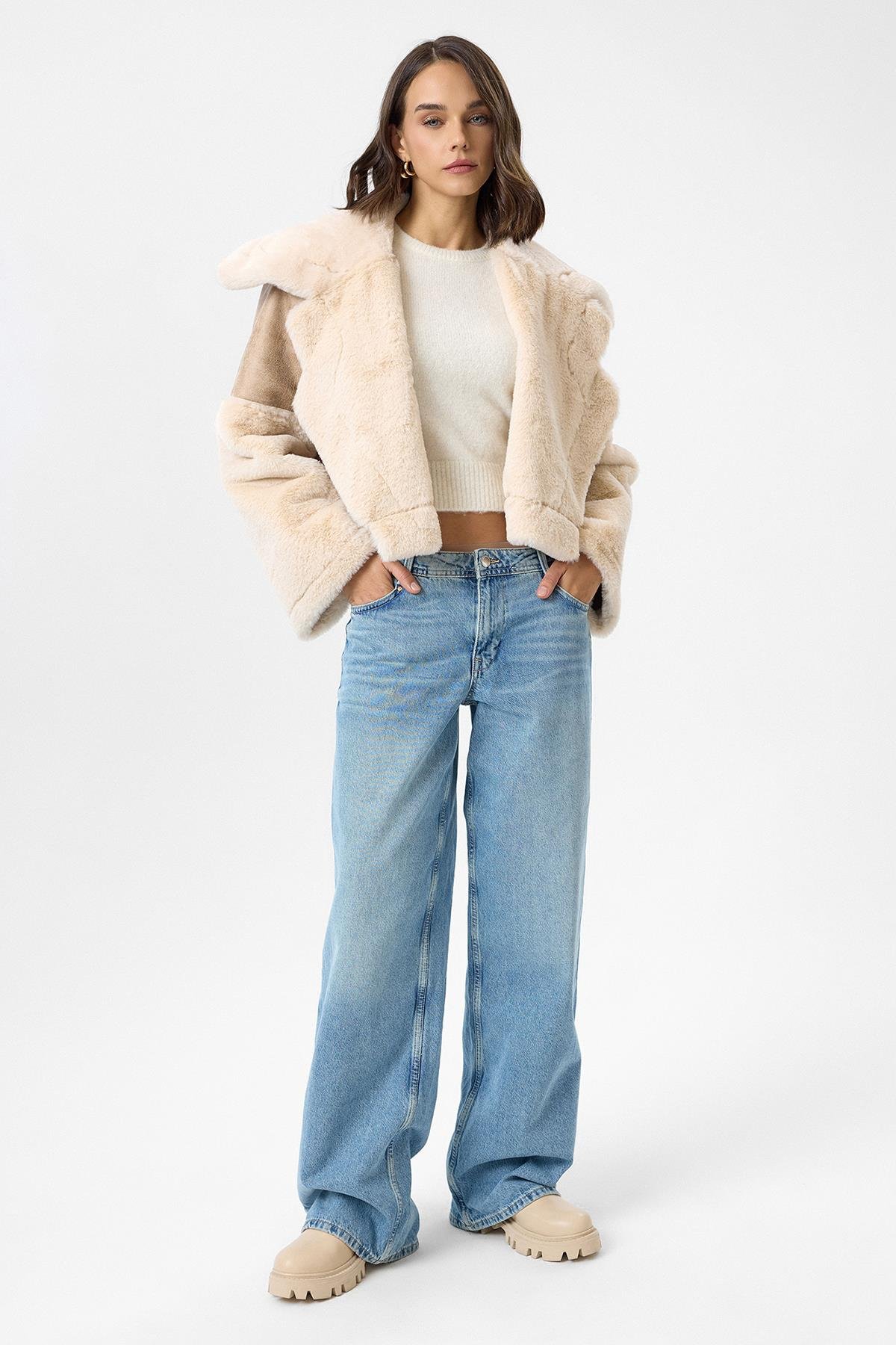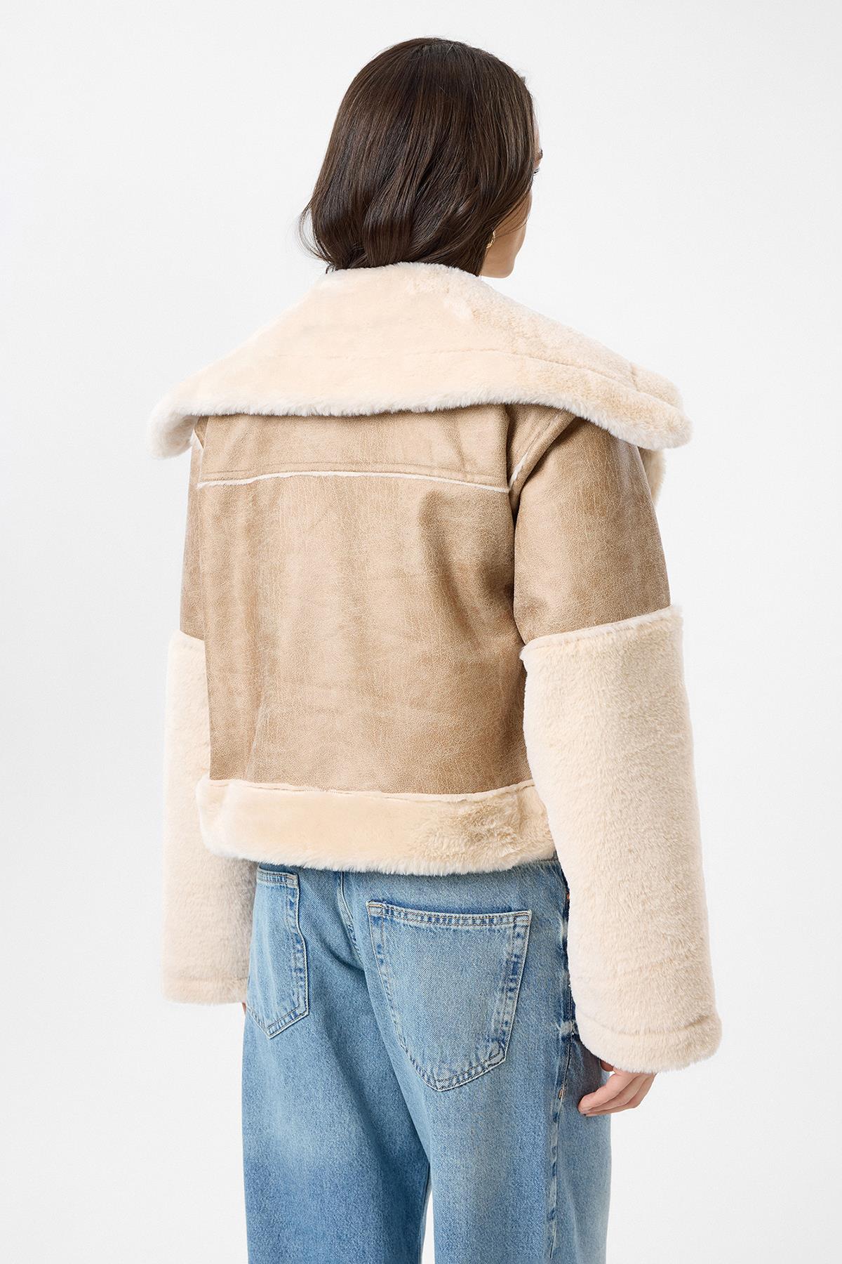 Geniş Yakalı Kolu Peluş Mont (MNT0059K)
