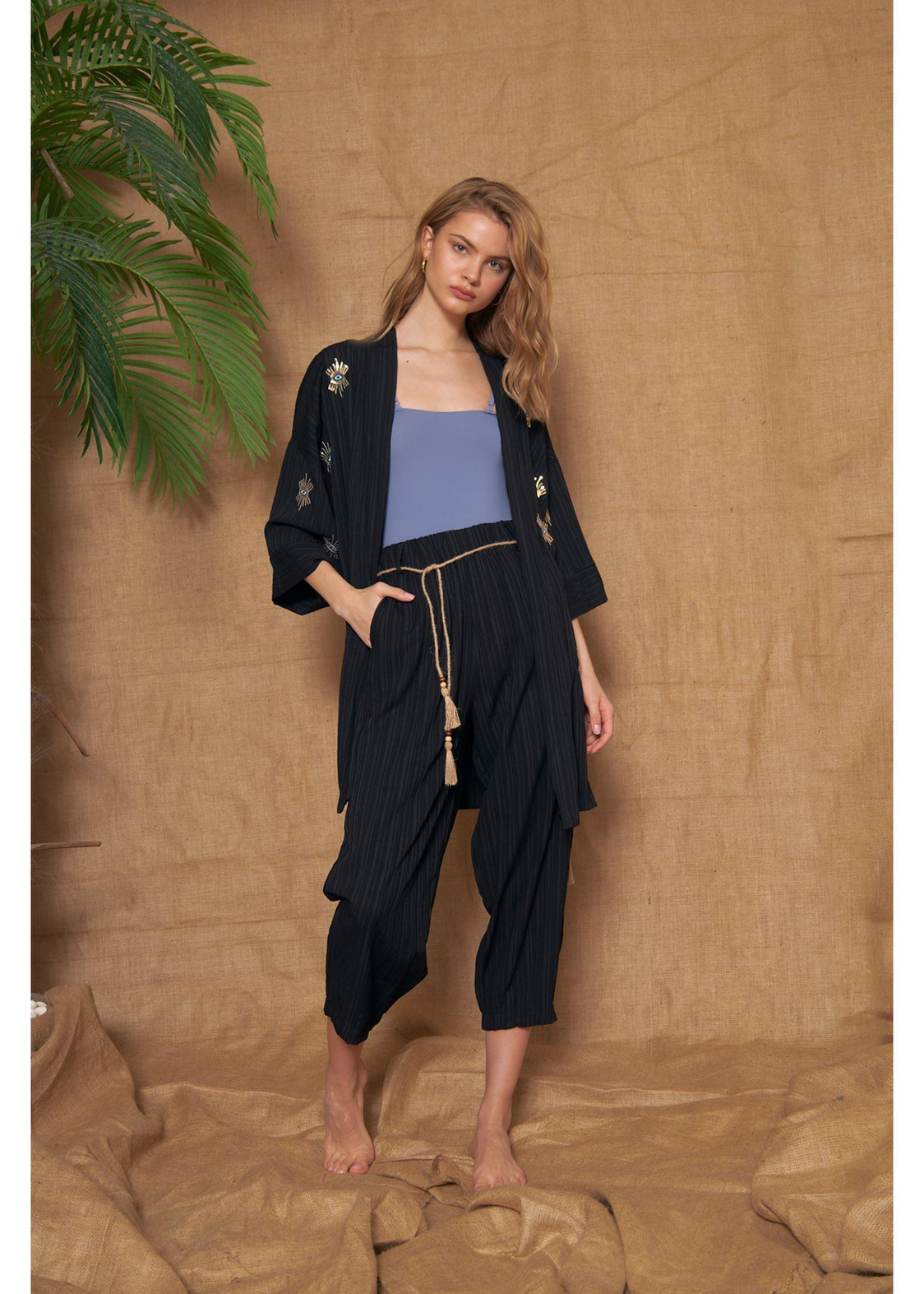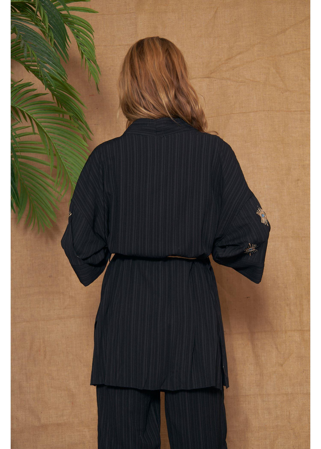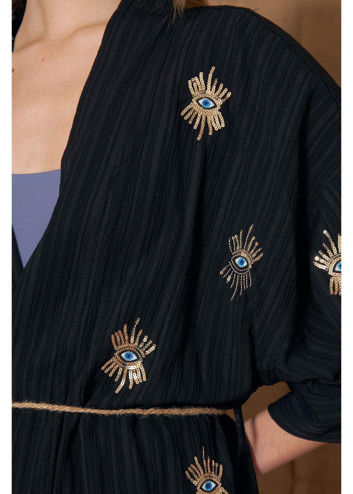 Göz Nakışlı Keten Görünümlü Kimono (KMN0042Y)
