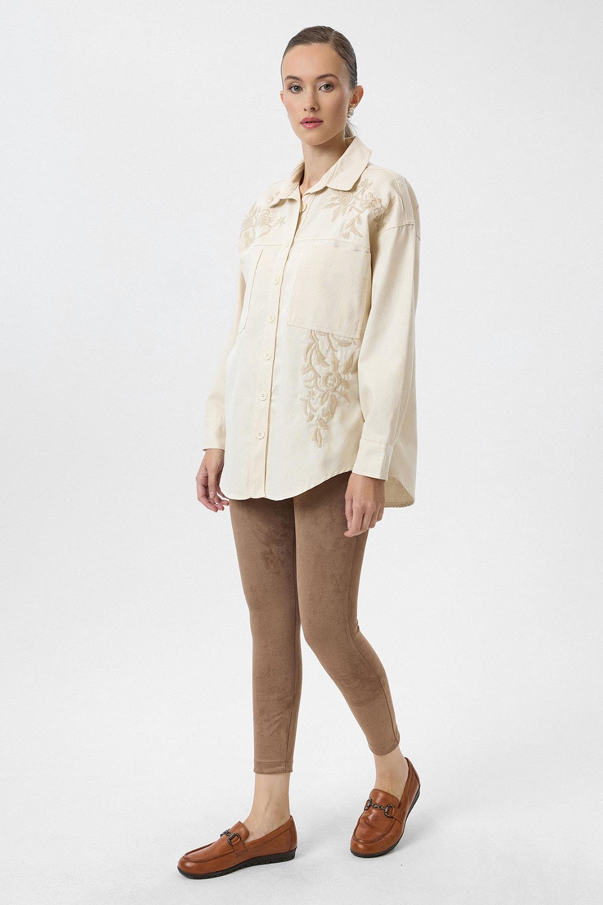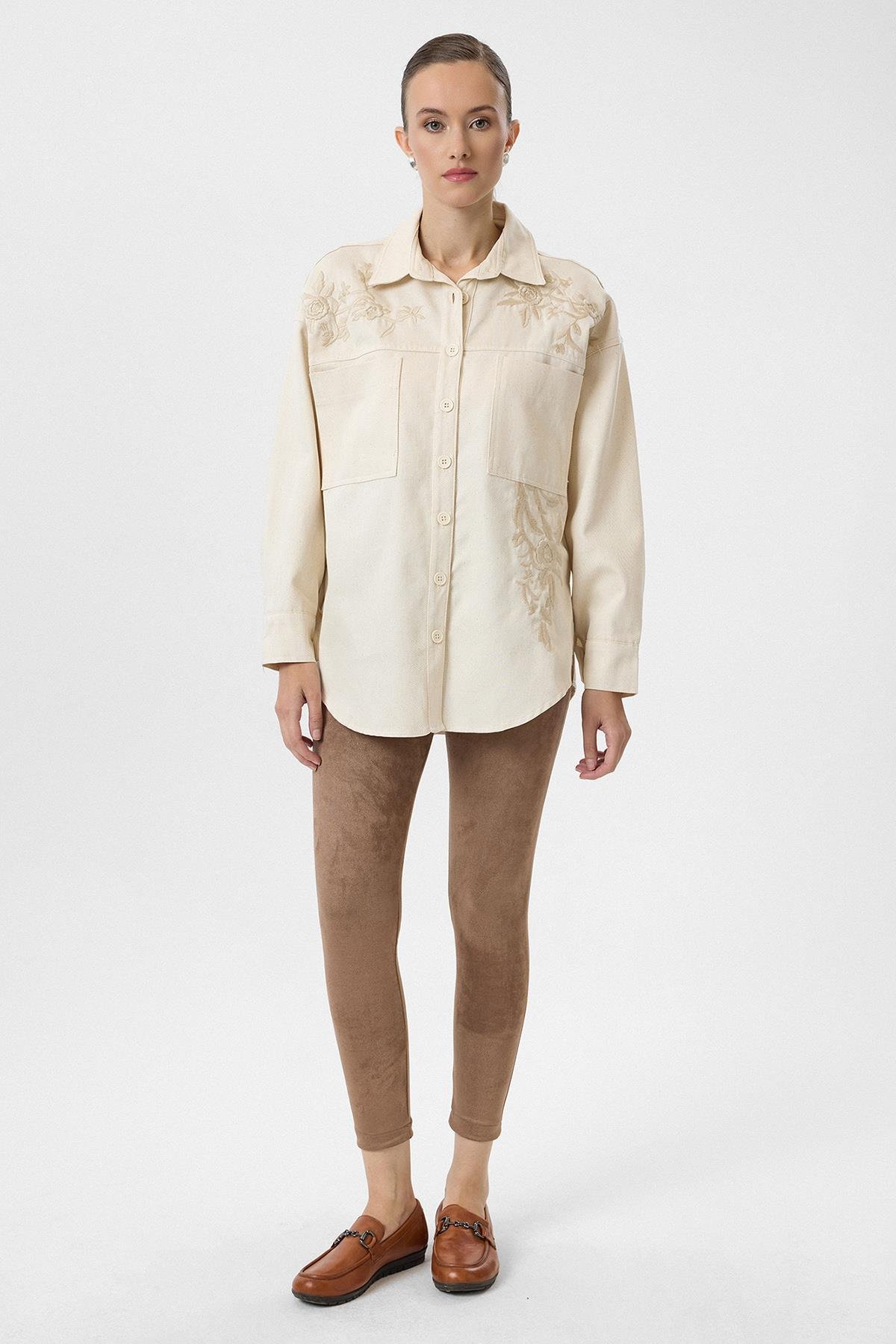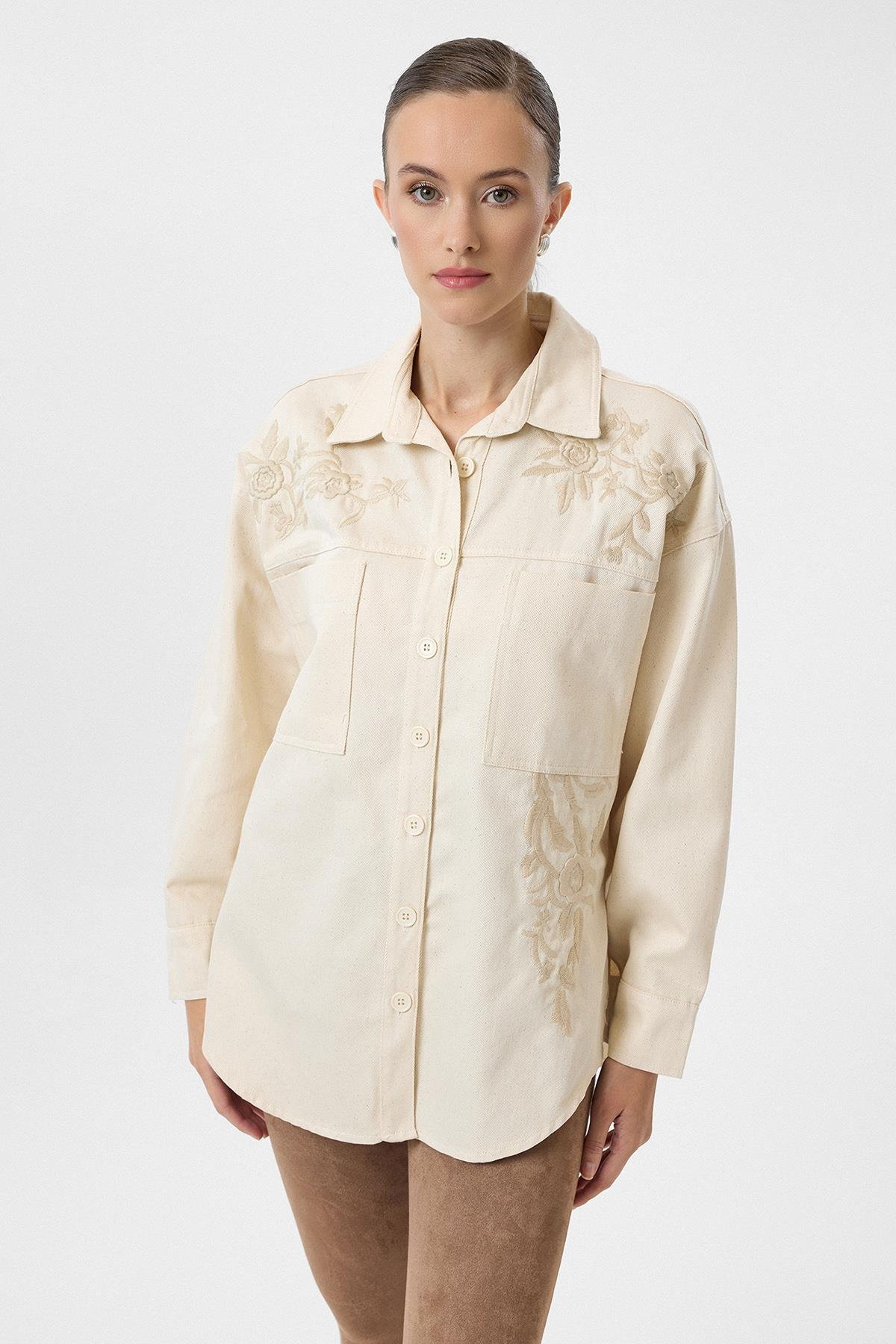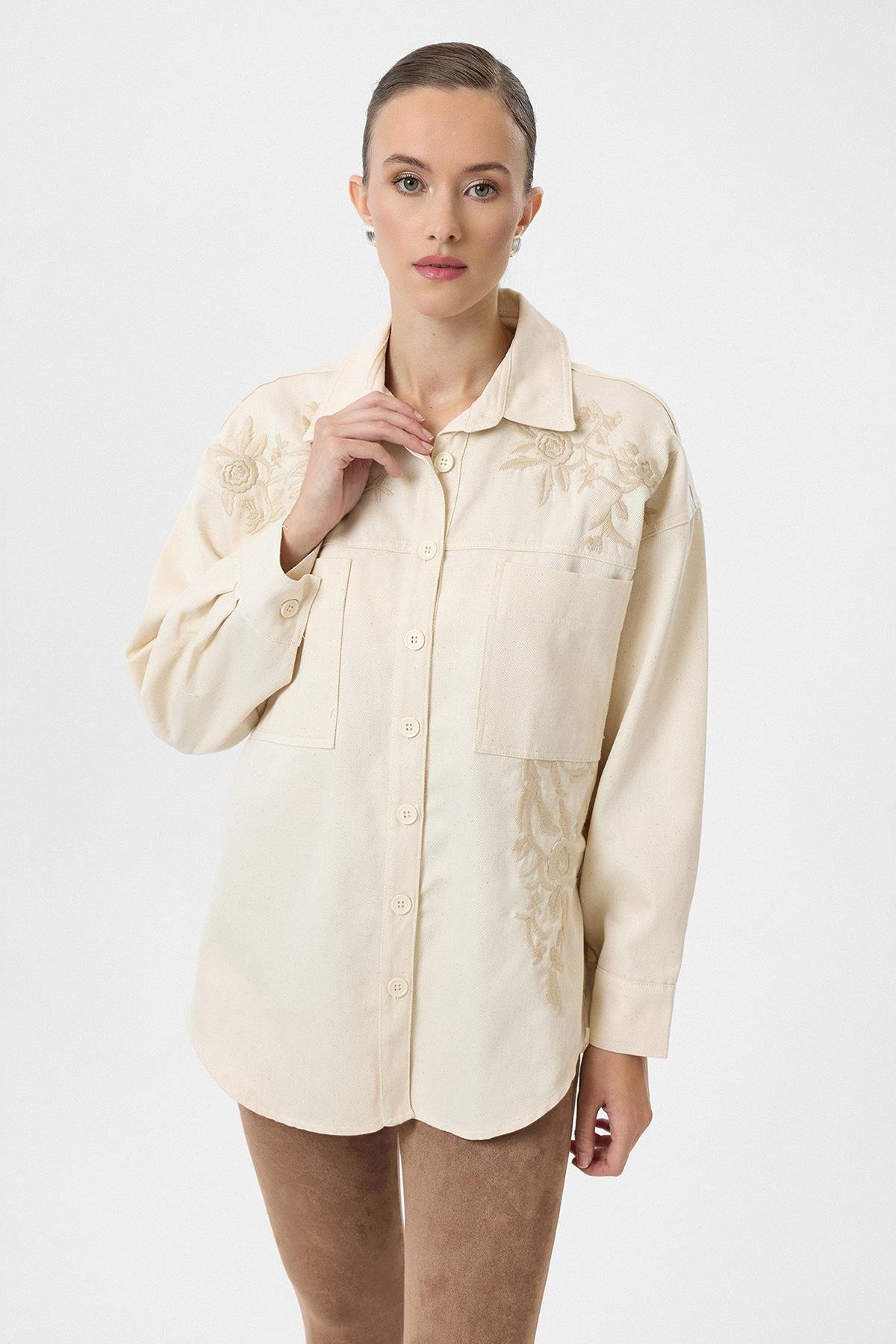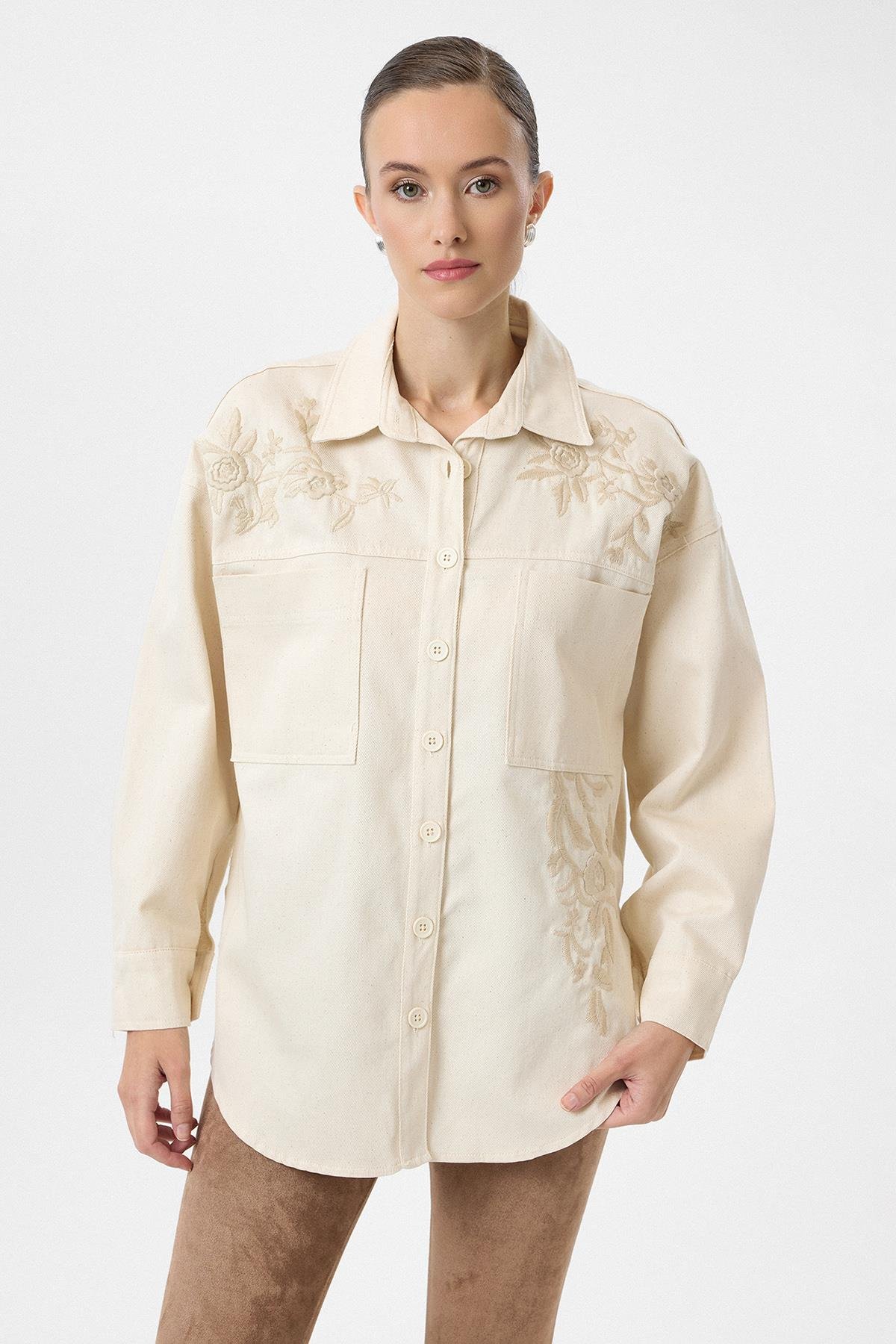 Gül Nakışlı Gabardin Gömlek (GML0340K)