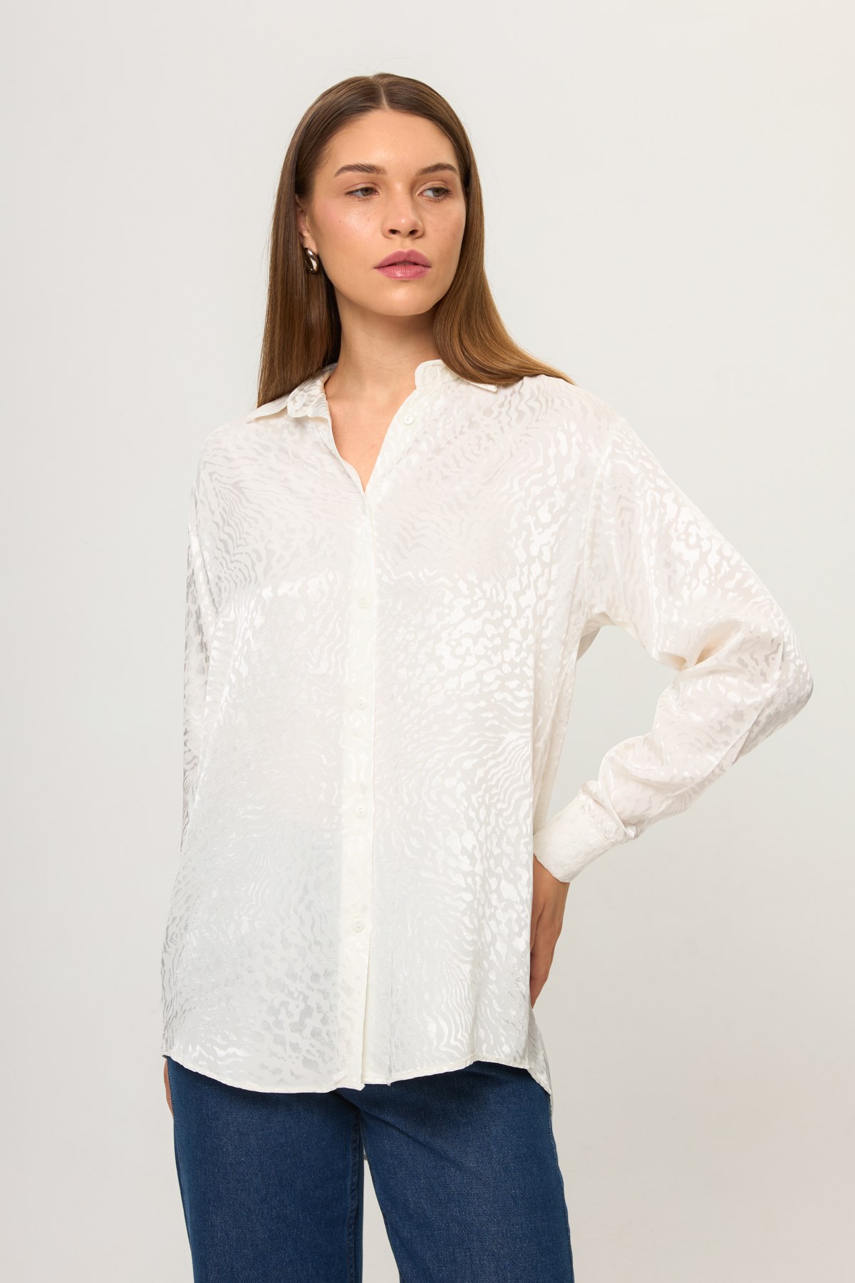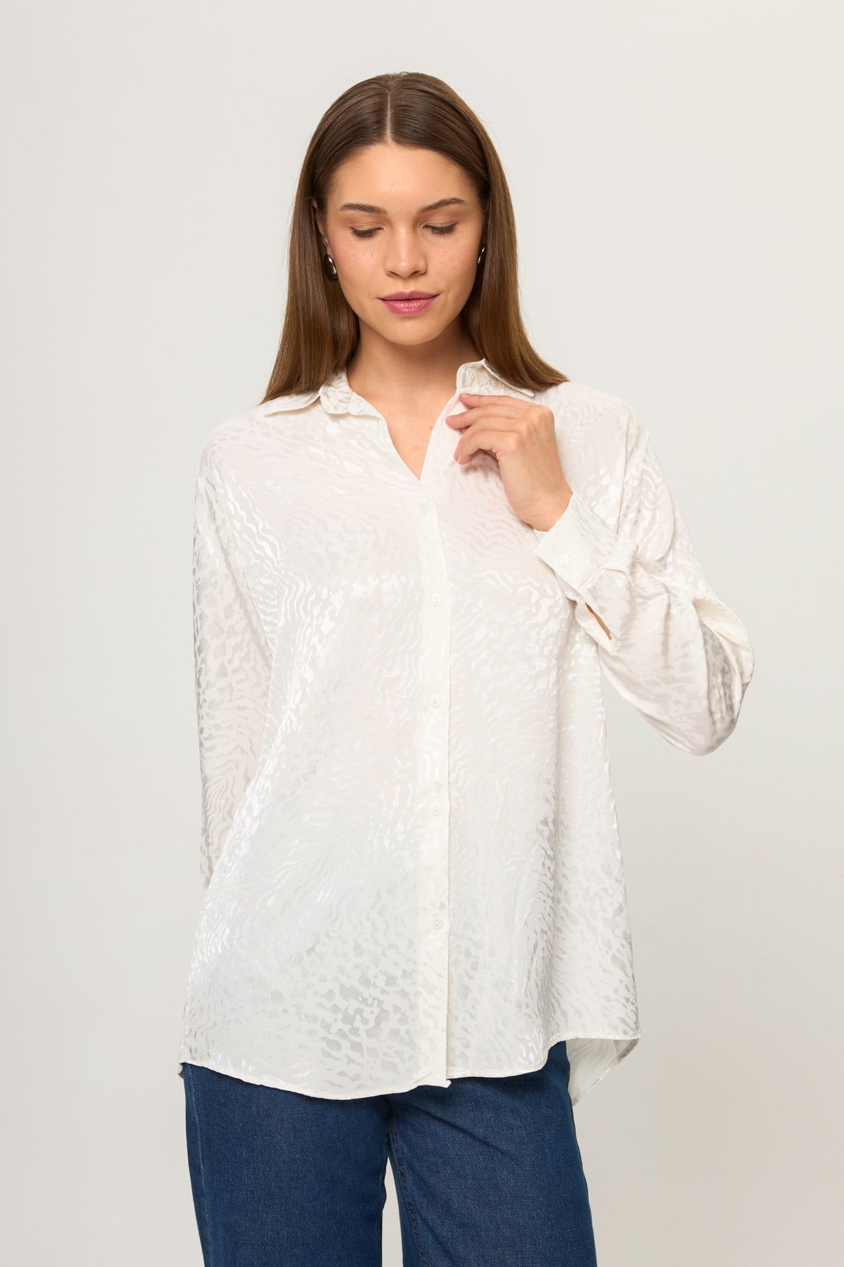 Jakarlı Saten Gömlek