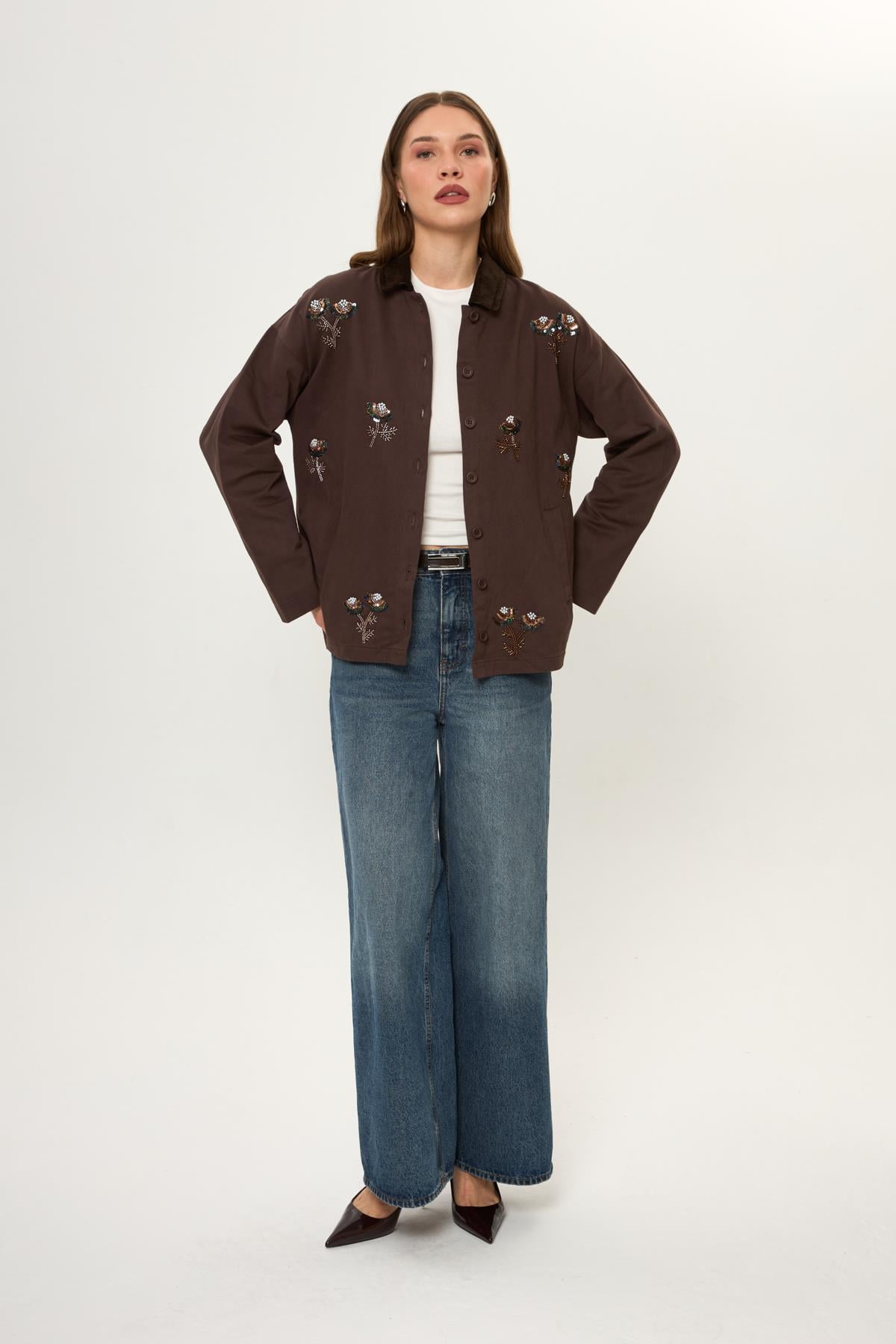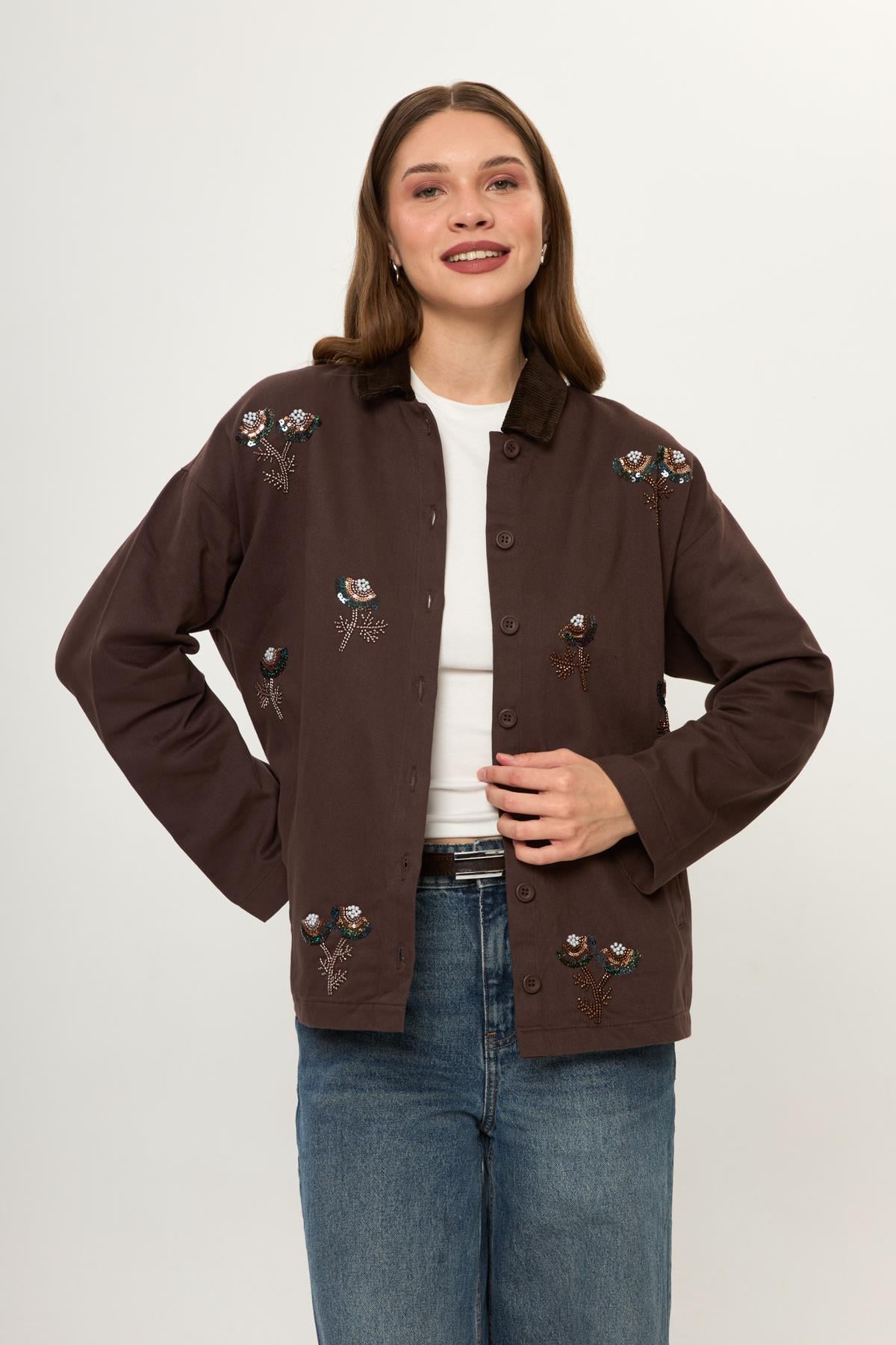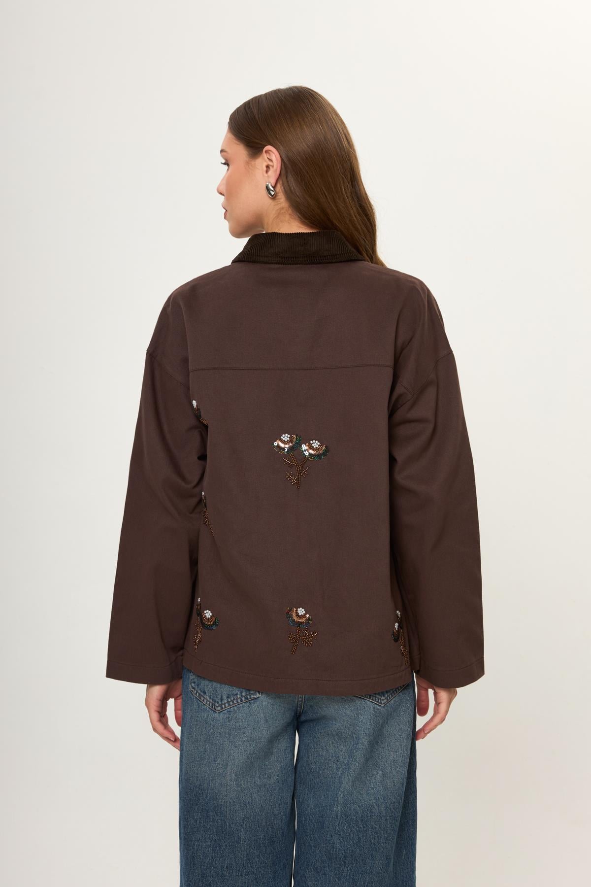 Kadife Yakalı Nakışlı Pamuklu Ceket Kadife Yakalı Nakışlı Pamuklu Ceket