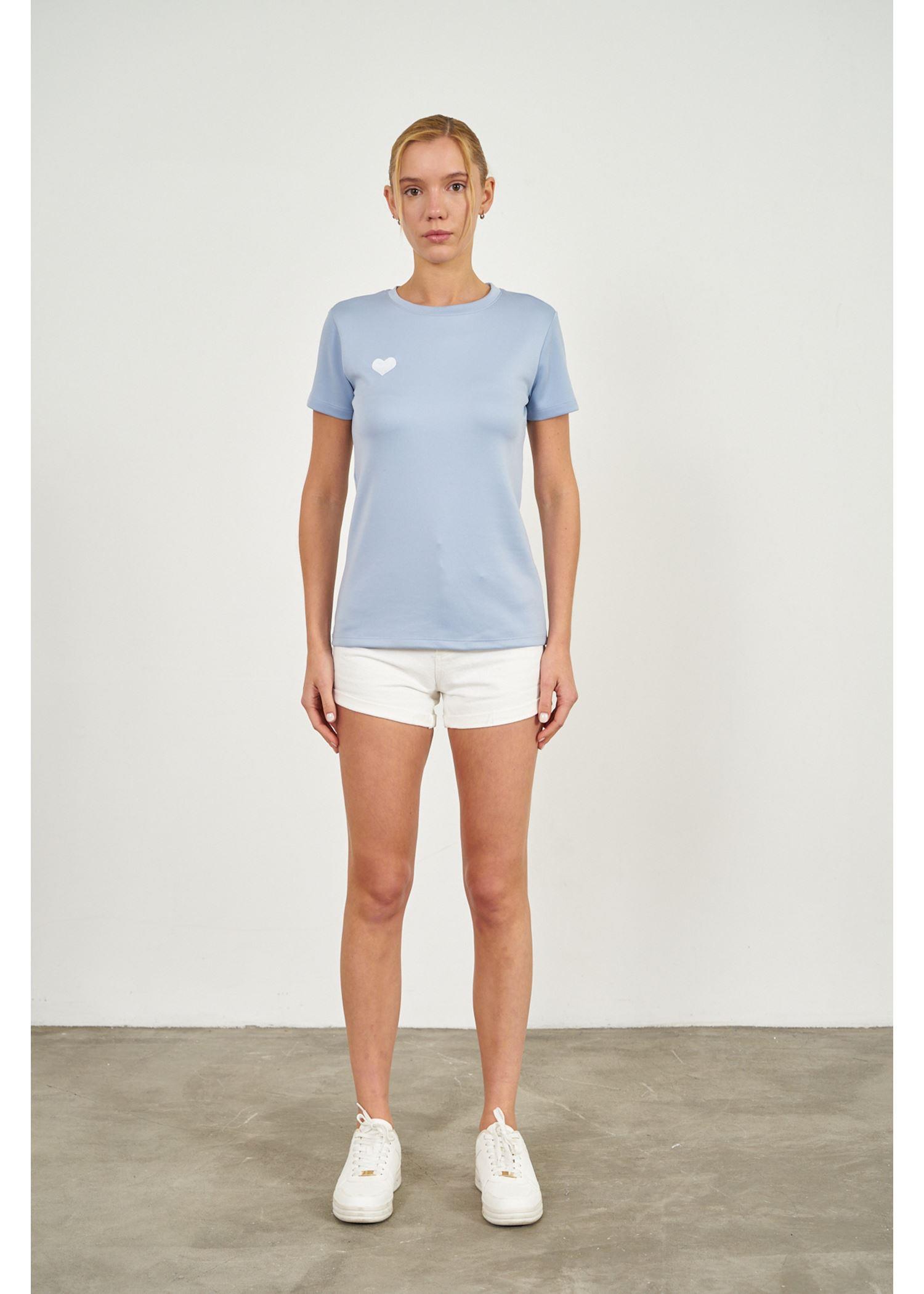 Kalp Nakışlı Kısa Kol Modal T-Shirt (Y0144TST)
