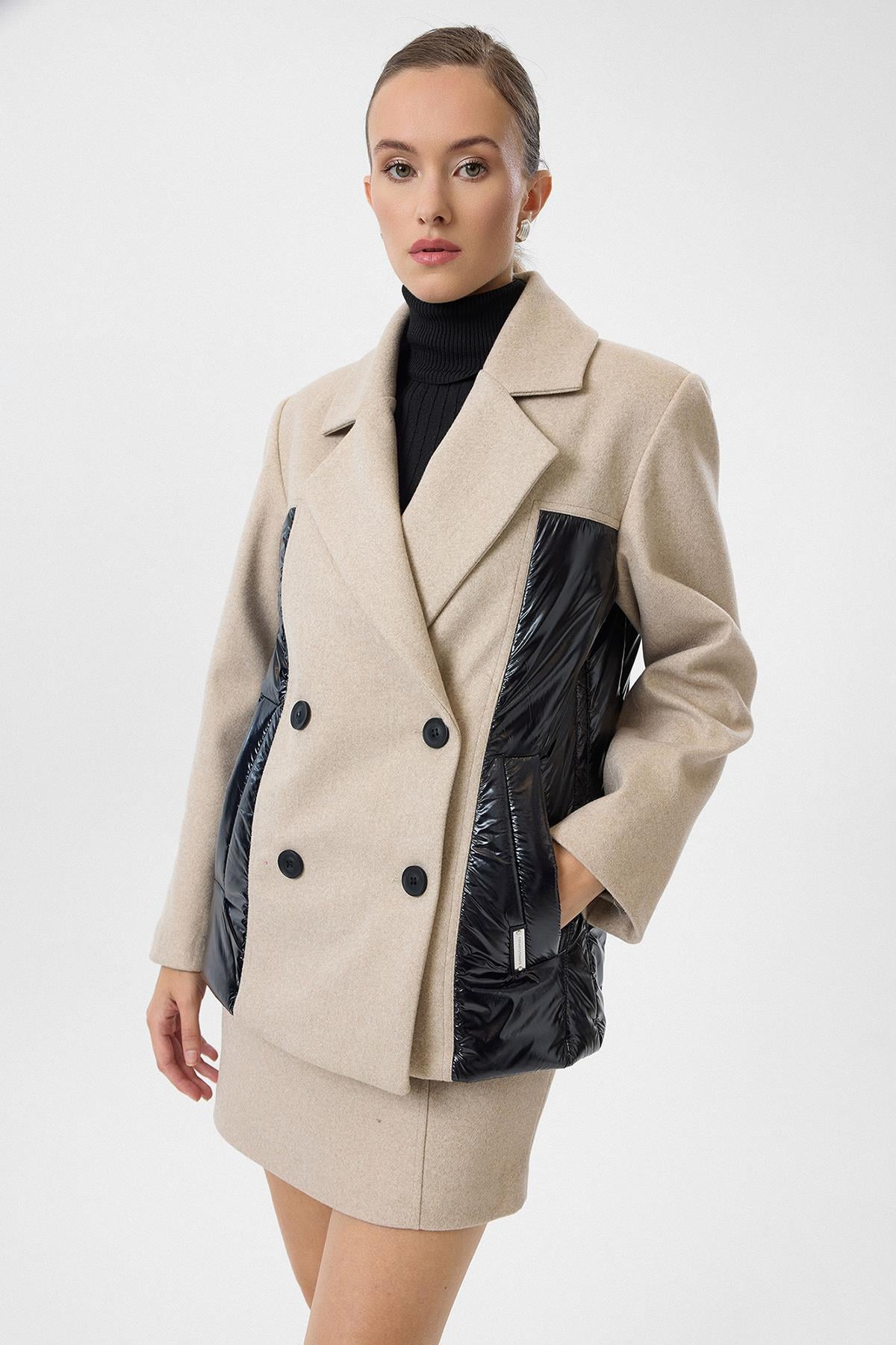Kapitone Detaylı Kaşe Ceket