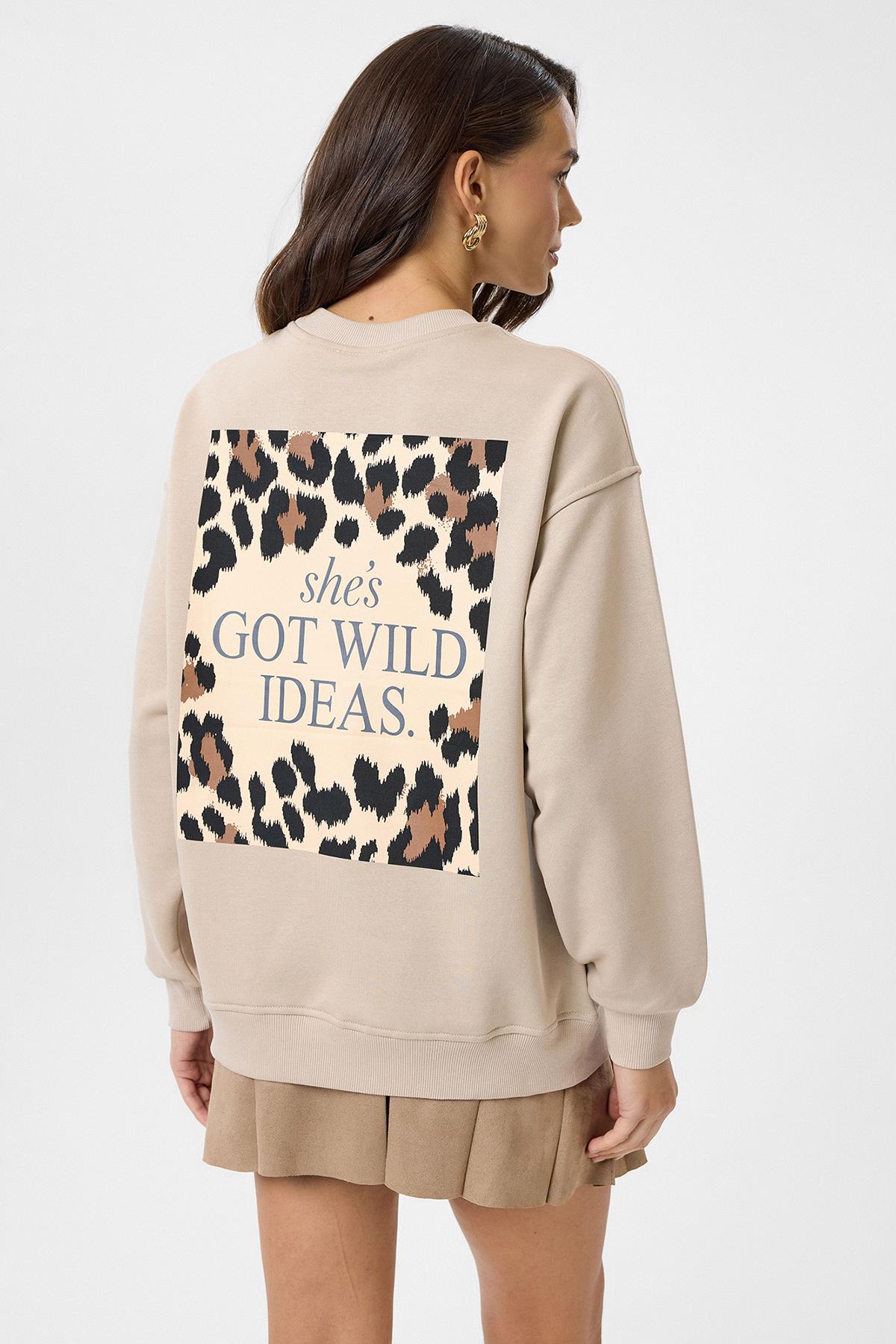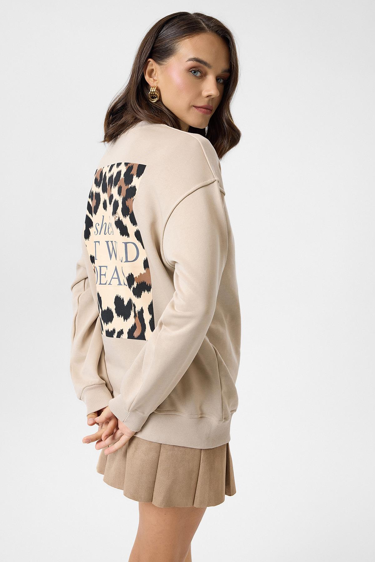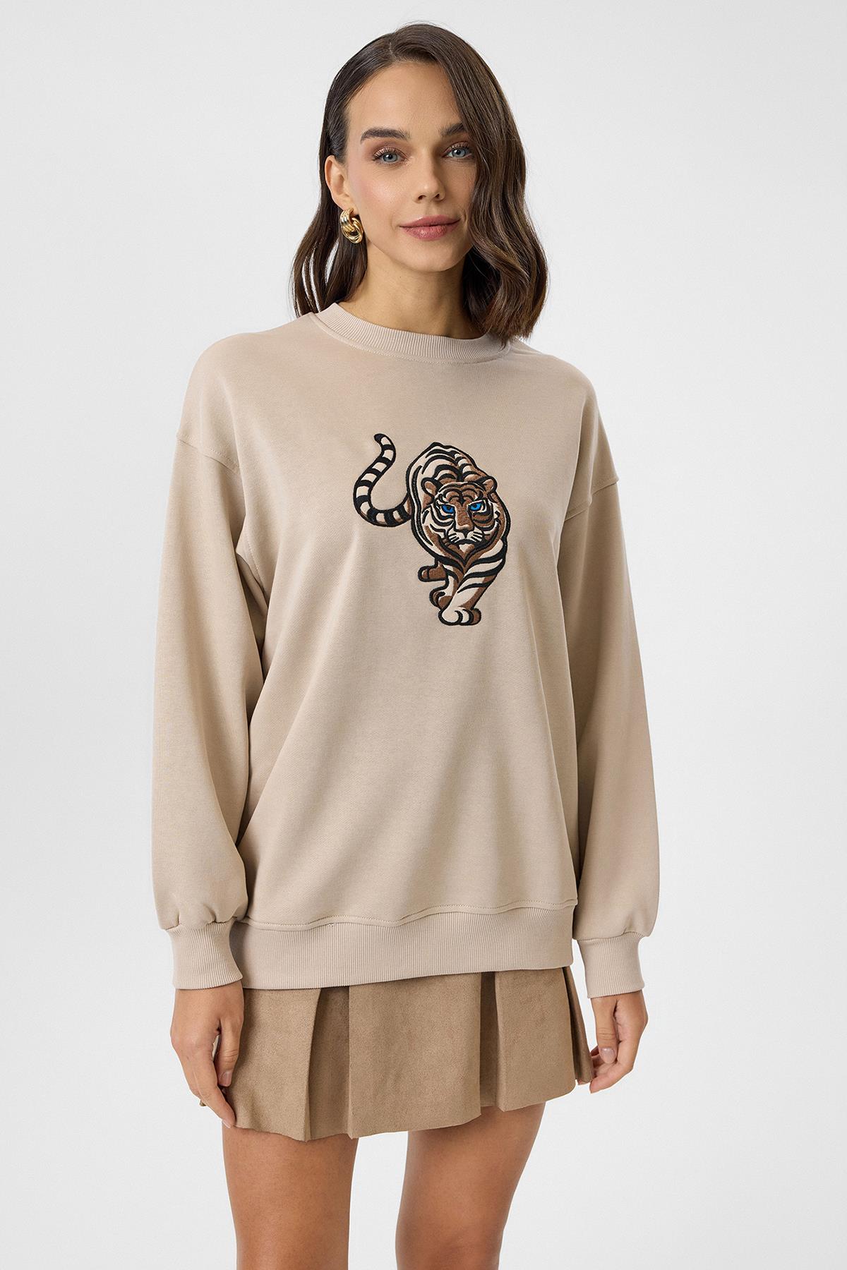Kaplan Nakışlı Arkası Baskılı Sweatshirt (K0101SWT)
