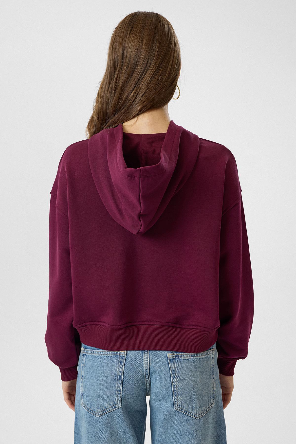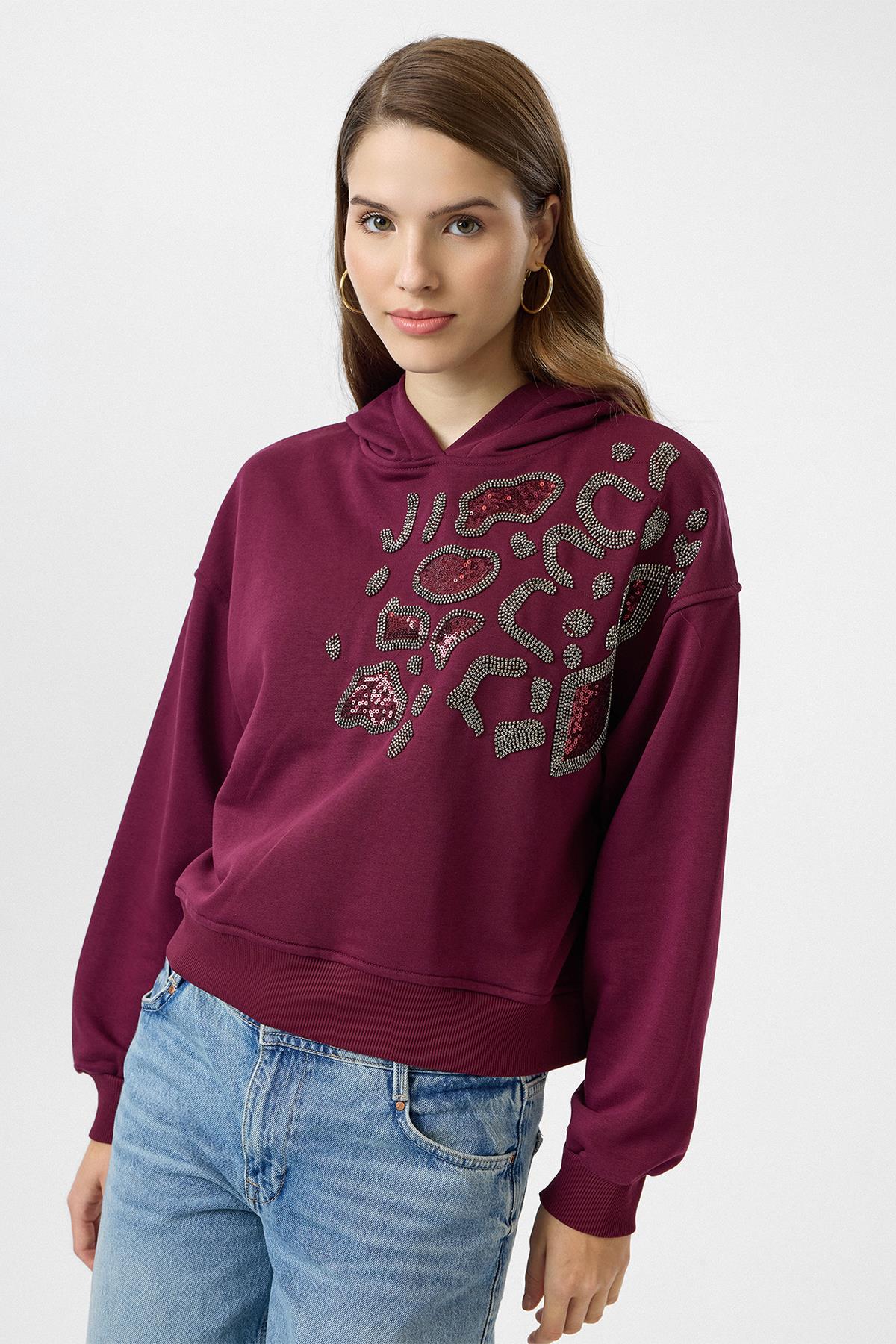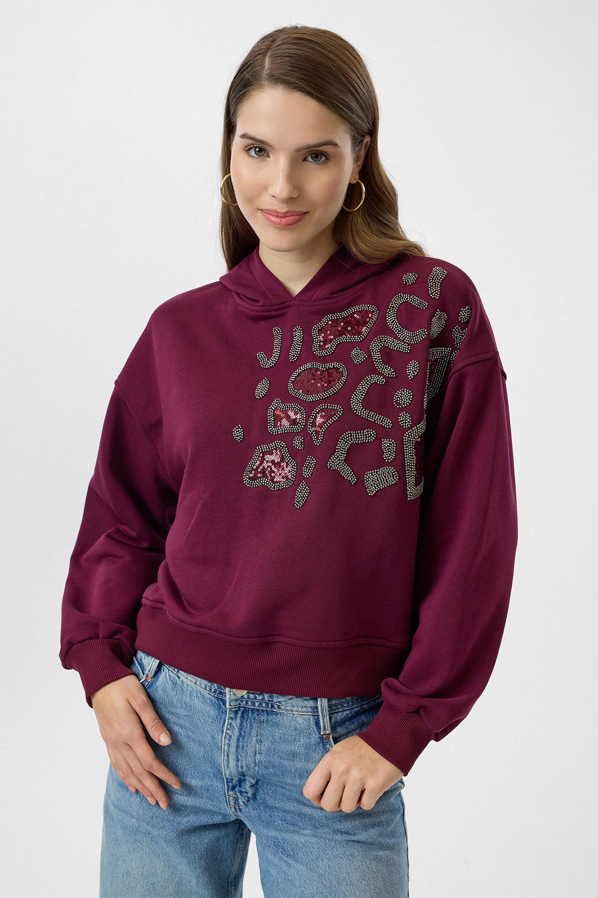 Kapüşonlu Boncuk Nakışlı Crop Sweatshirt (K0105SWT)