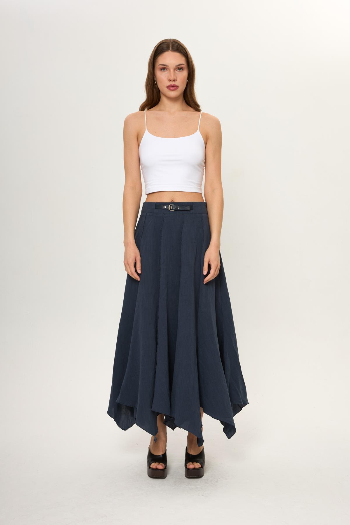 Keten Karışımlı Asimetrik Etek (ETK0131Y)