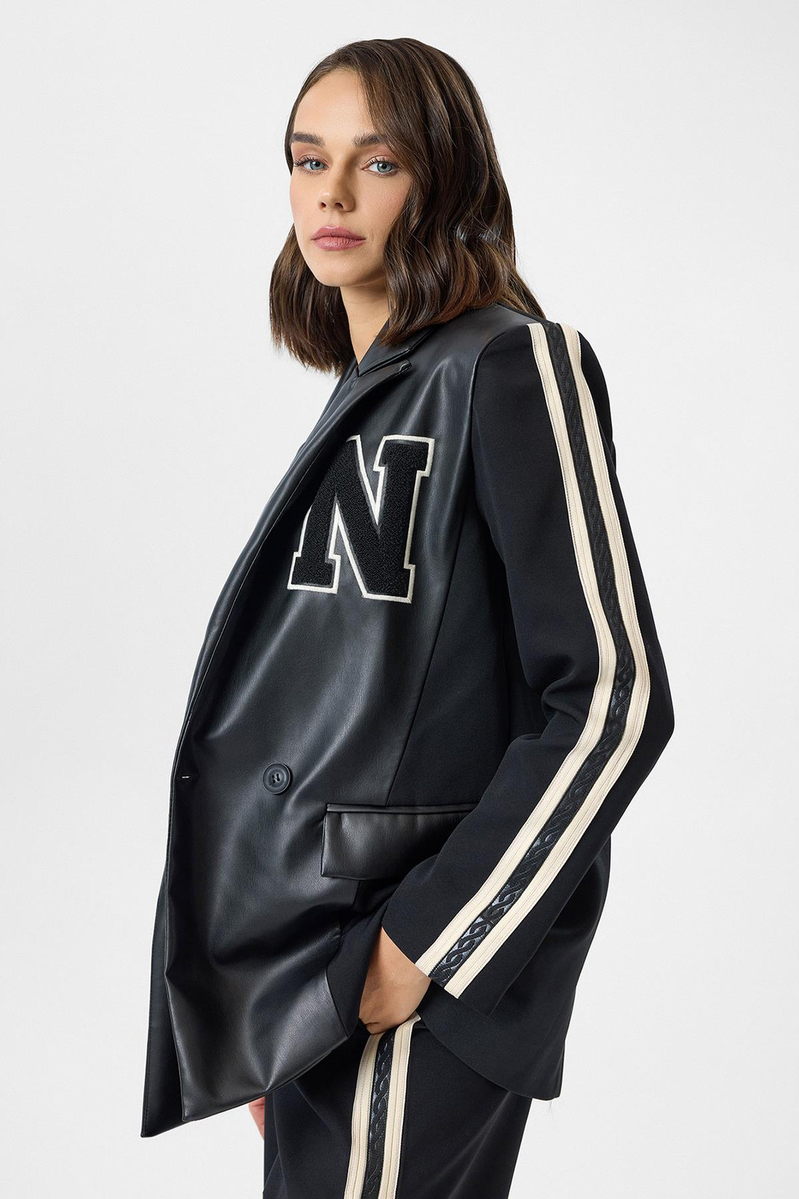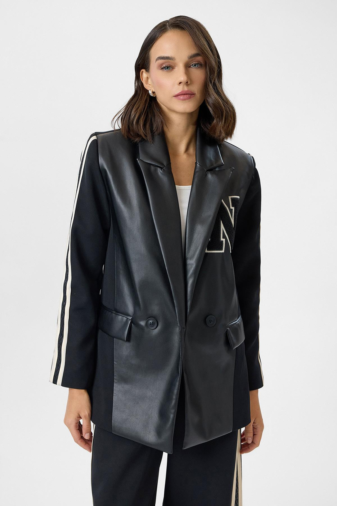 Kolları Şeritli Deri Garnili Atlas Ceket (CKT0108K)