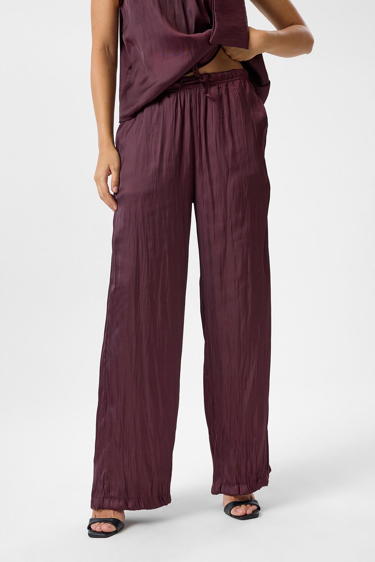 Kraşlı Saten Pantolon - Gül (PNT0219Y)