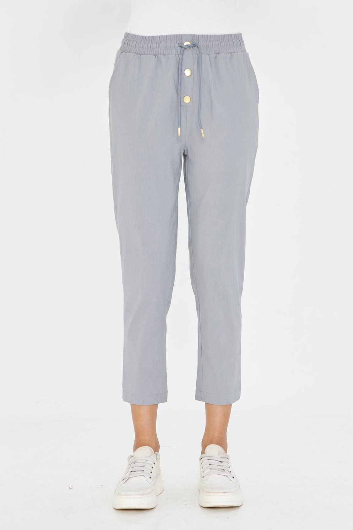 Lastikli Düğmeli Havuç Kesim Pantolon - Gri (PNT0211Y)