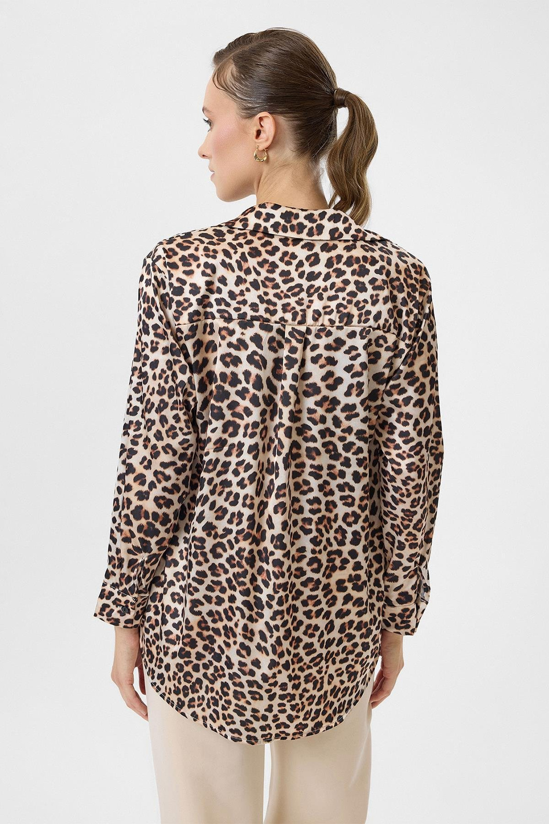 Leopar Desenli Klasik Saten Gömlek