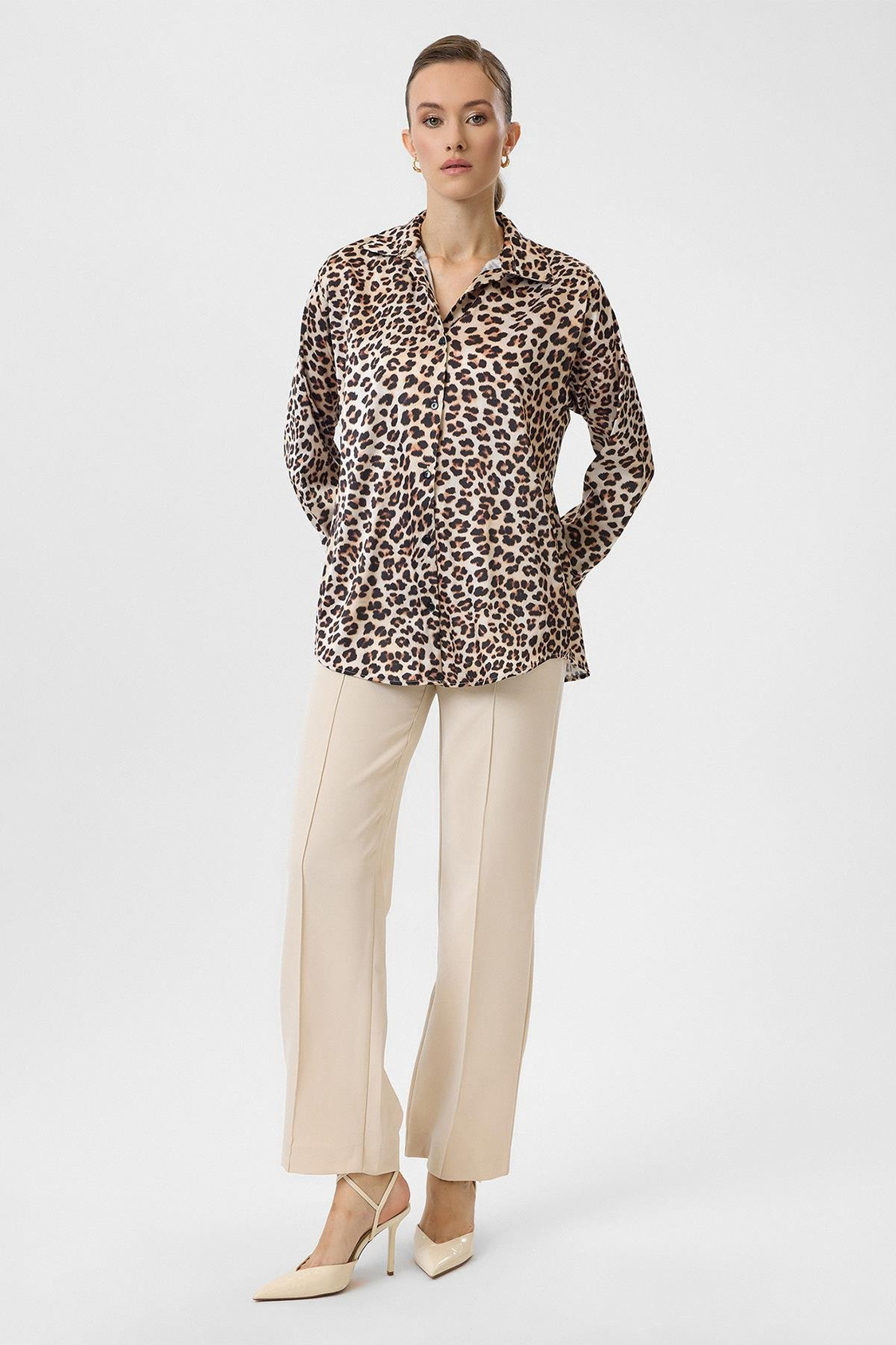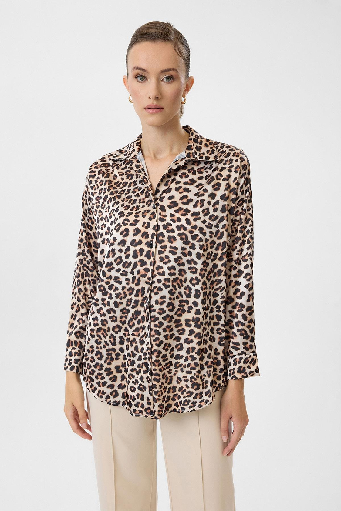 Leopar Desenli Klasik Saten Gömlek (GML0074K)
