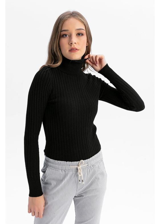 Likrali Bogazli Triko - Siyah (A0121Y_K20038)