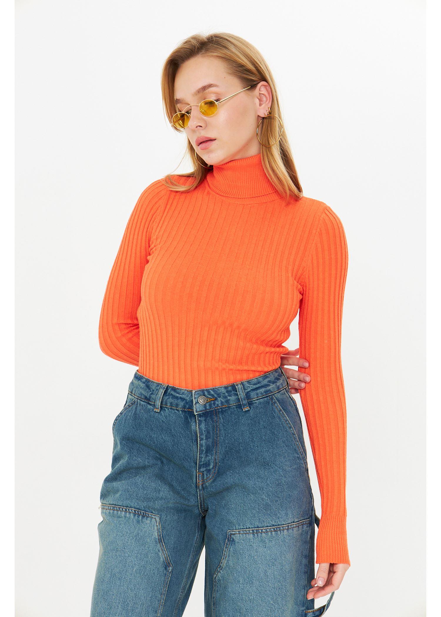 Likrali Bogazli Triko - Turuncu (A0121Y_K20038)