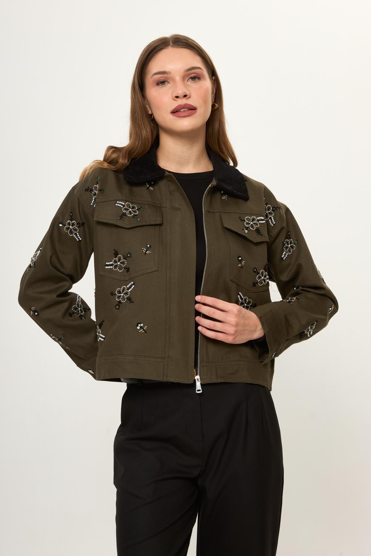 Nakış İşlemeli Gabardin Ceket Nakış İşlemeli Gabardin Ceket