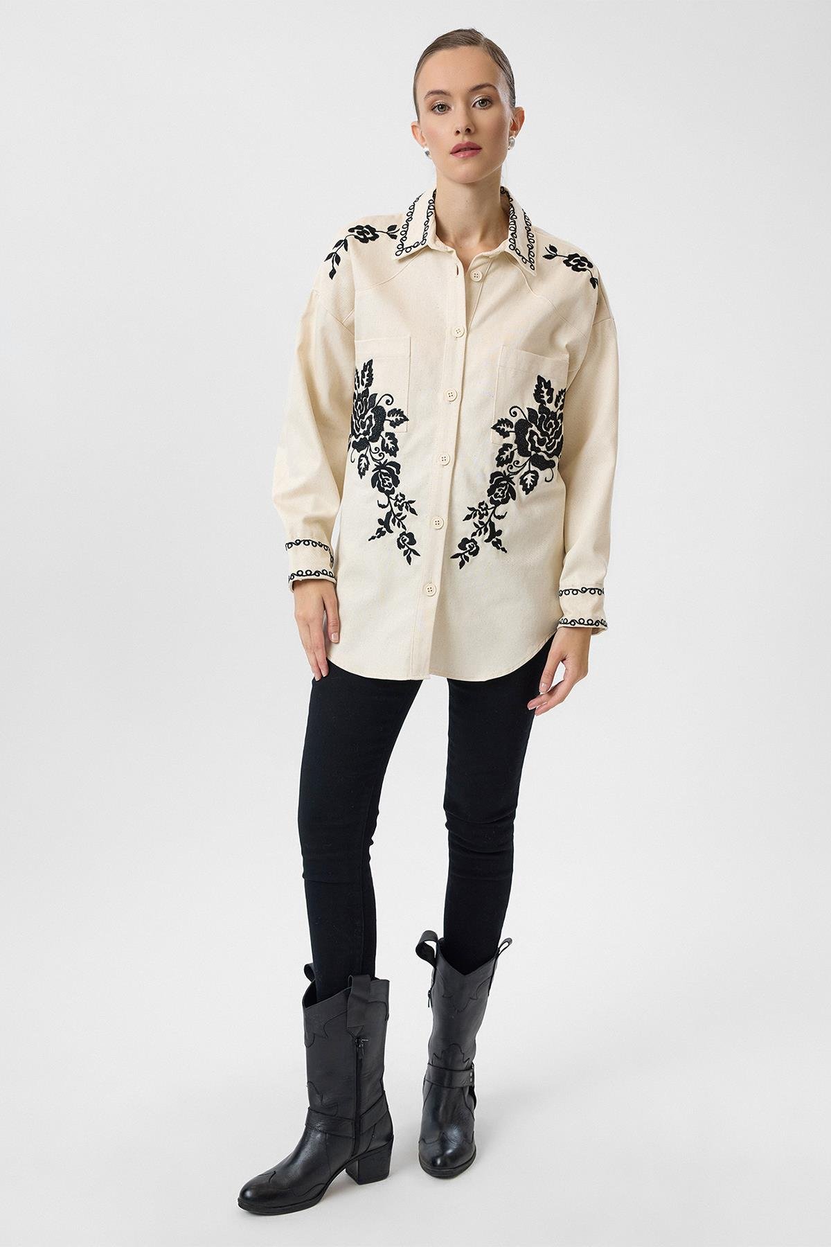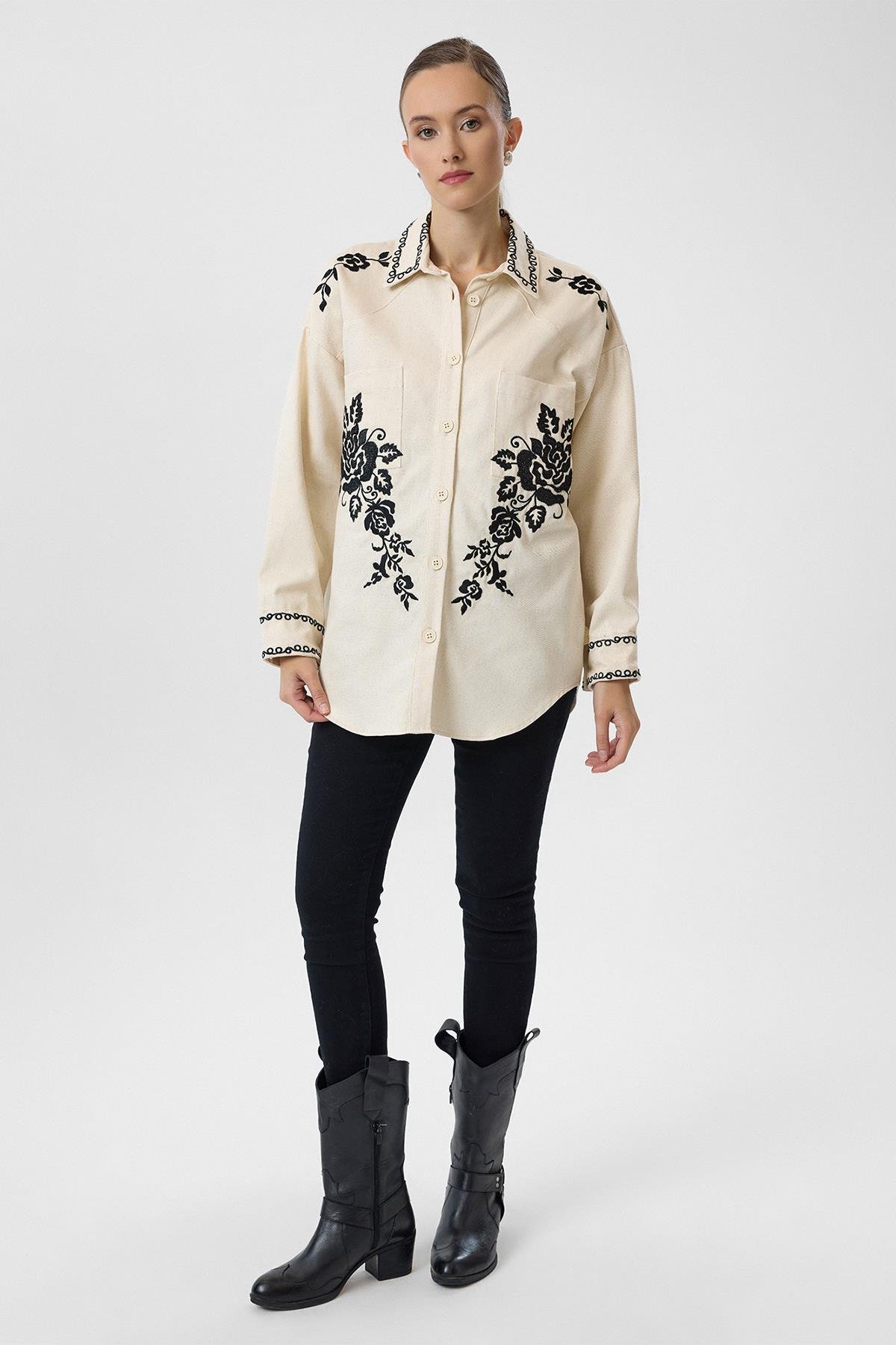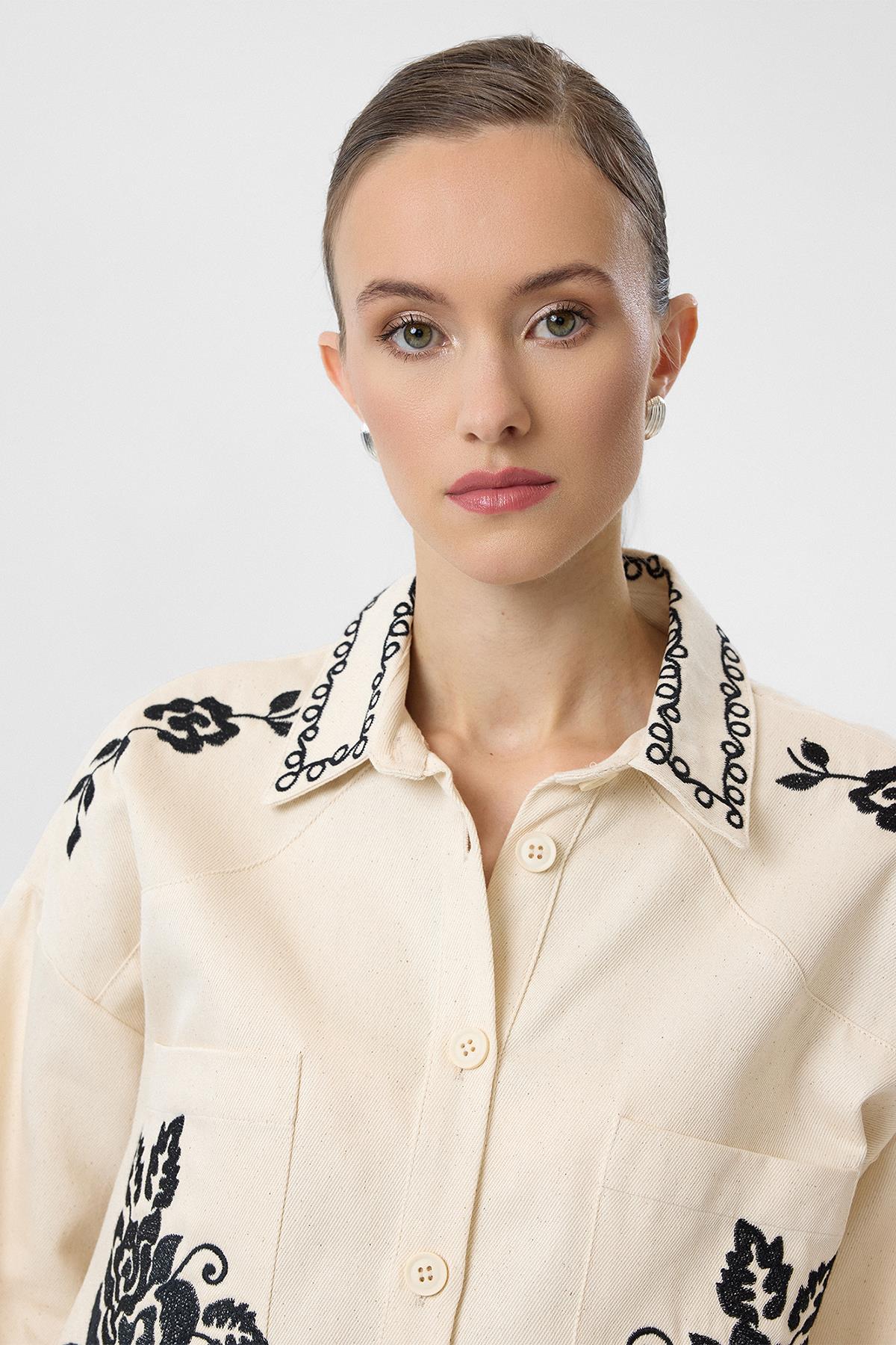 Nakışlı Cepli Gabardin Gömlek (GML0341K)