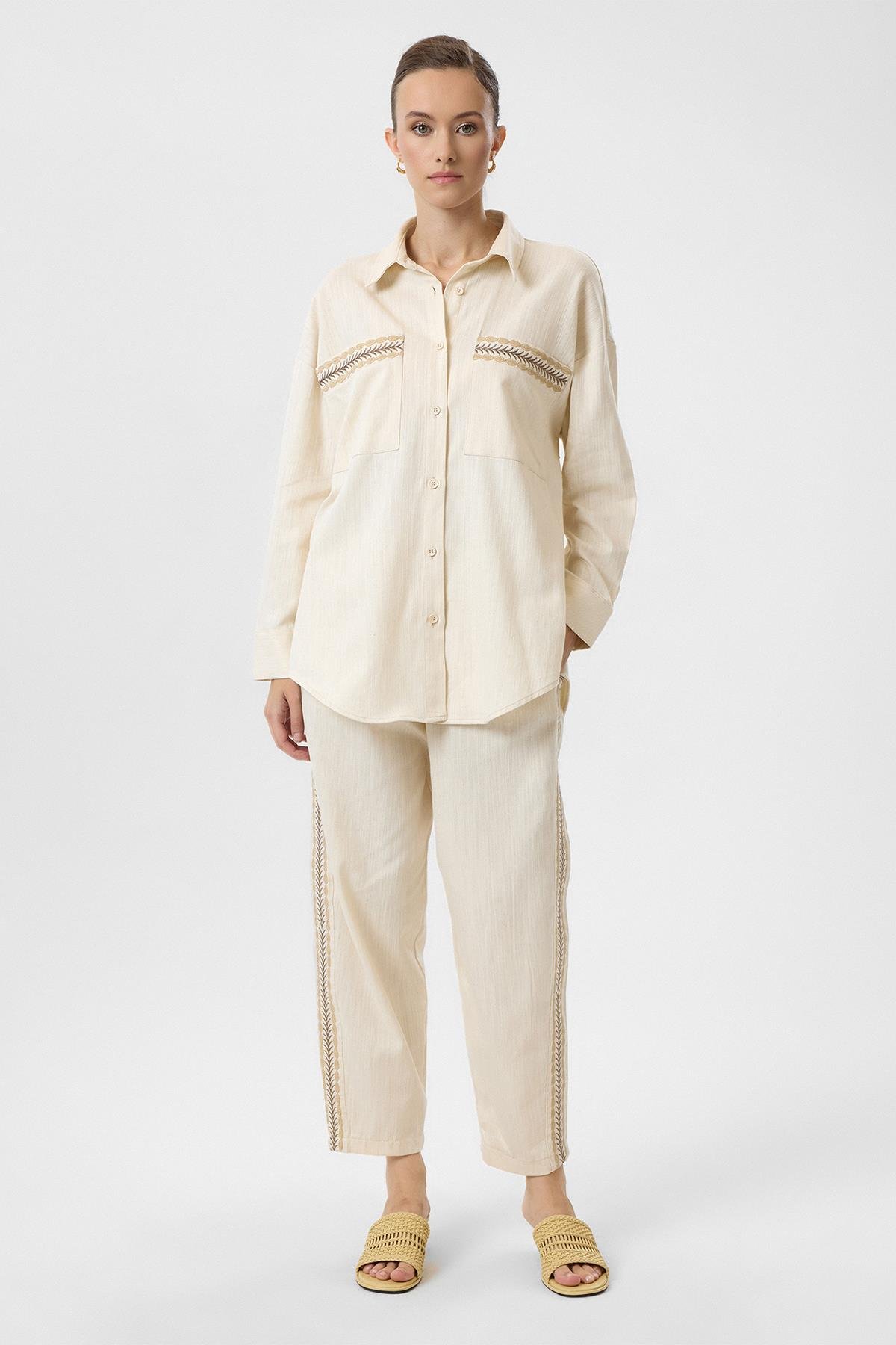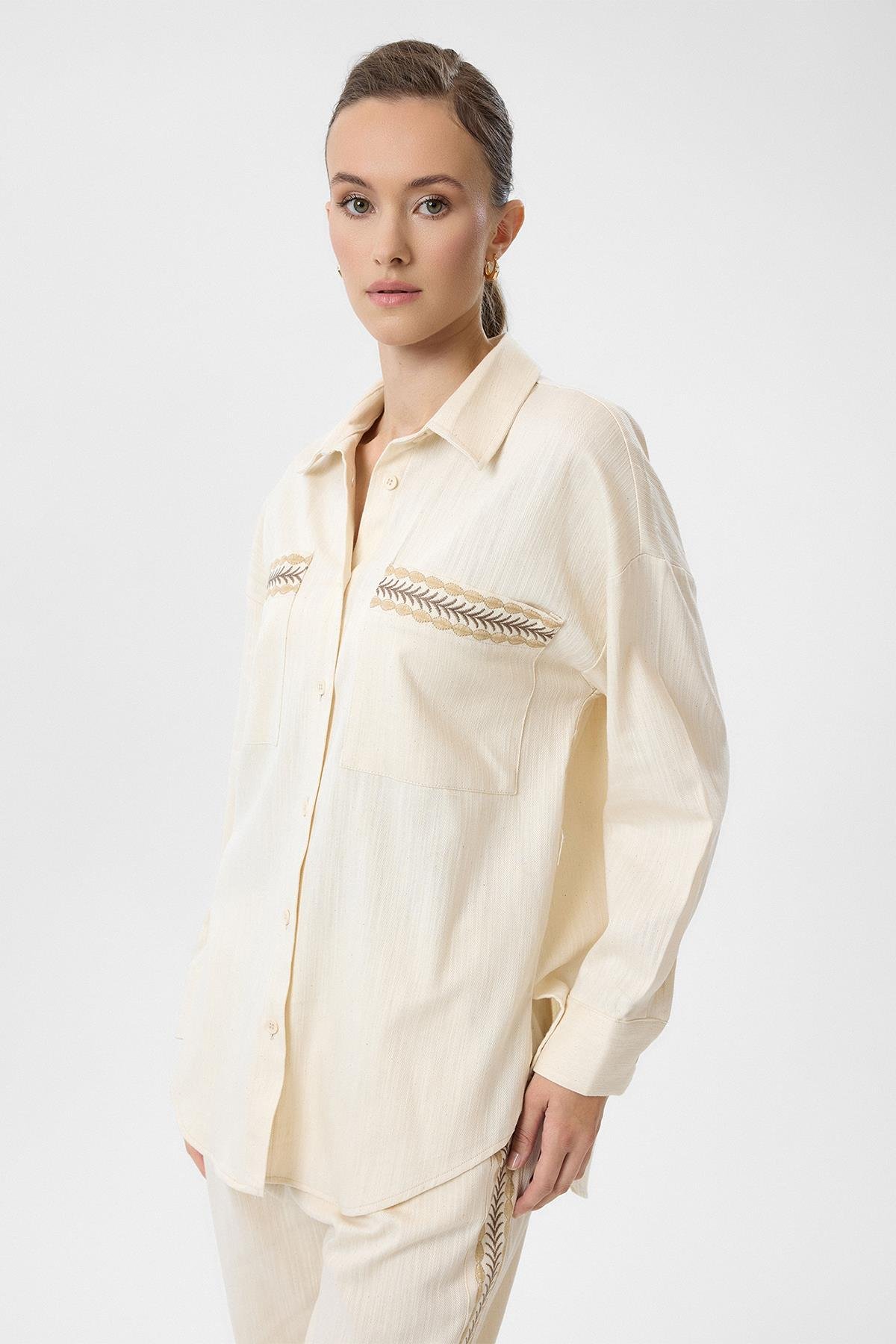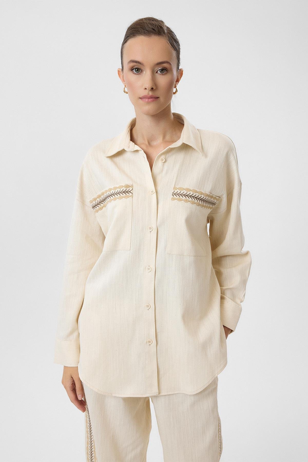 Nakışlı Keten Karışımlı Gömlek (GML0333Y)