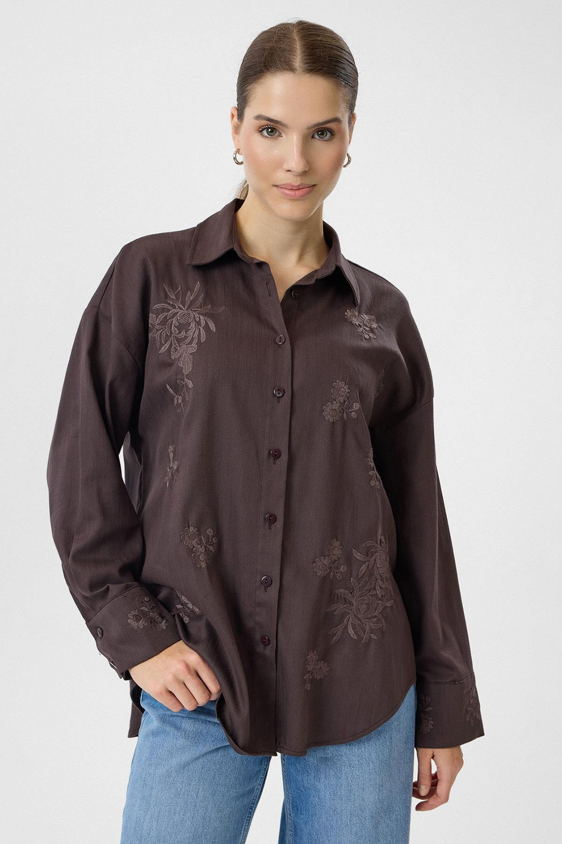 Nakışlı Yırtmaçlı Gabardin Gömlek (GML0343K)