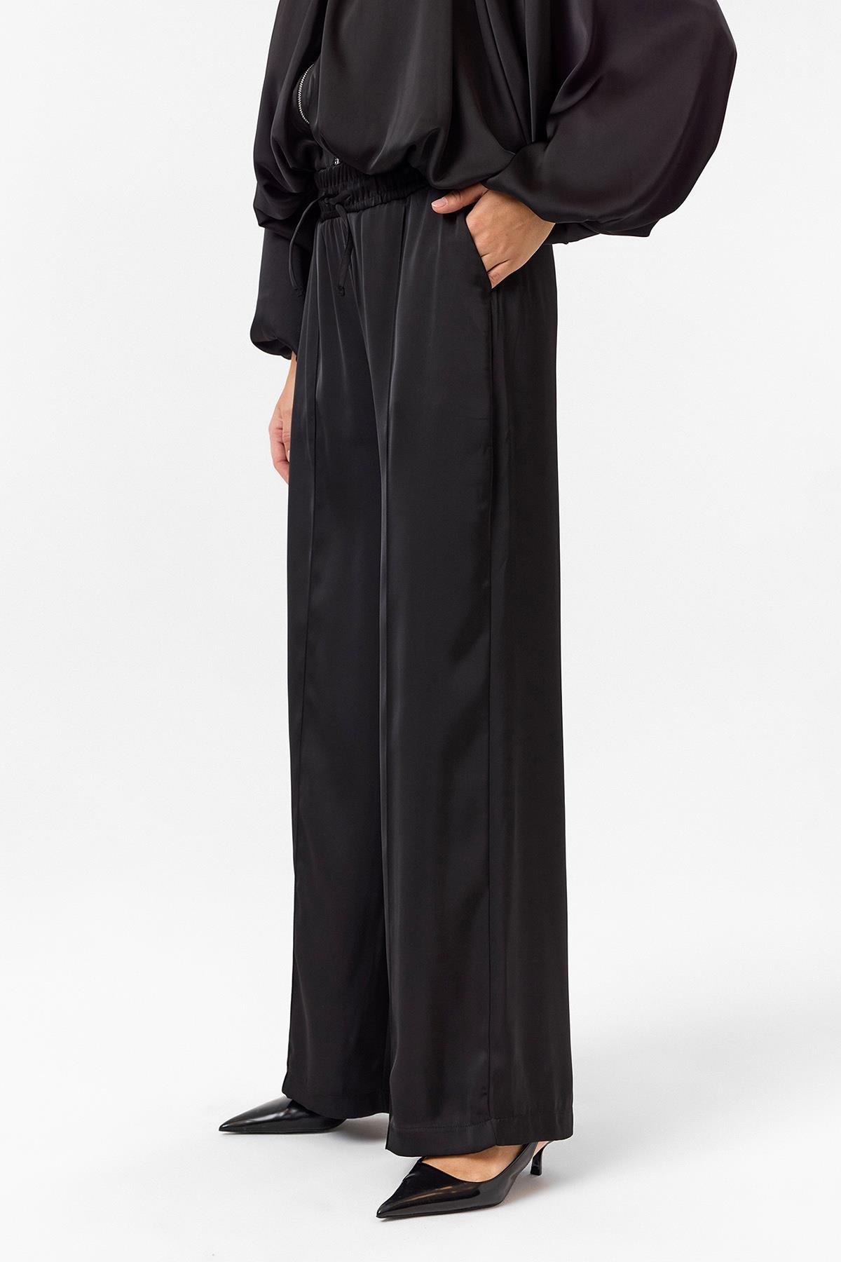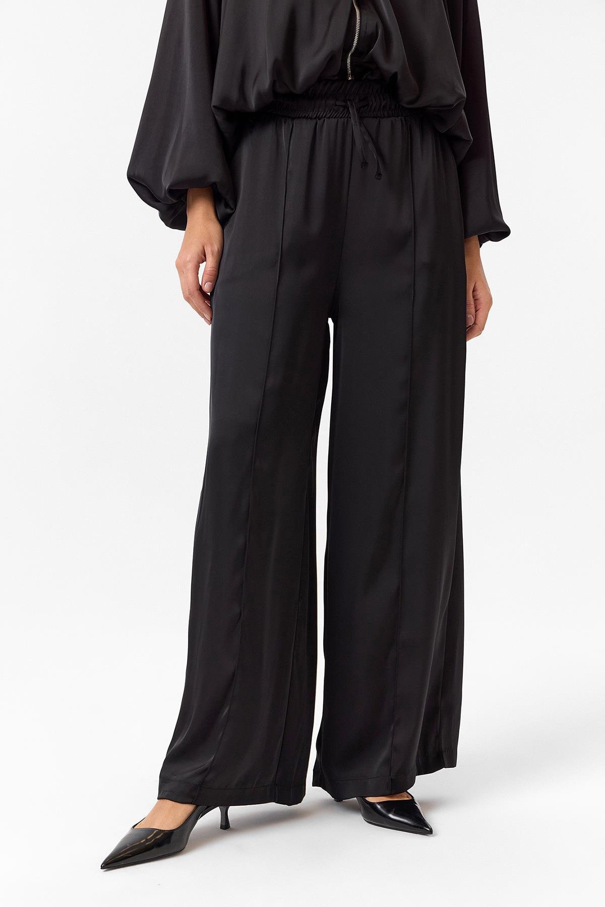Önü Çimalı Saten Pantolon (PNT0250K)