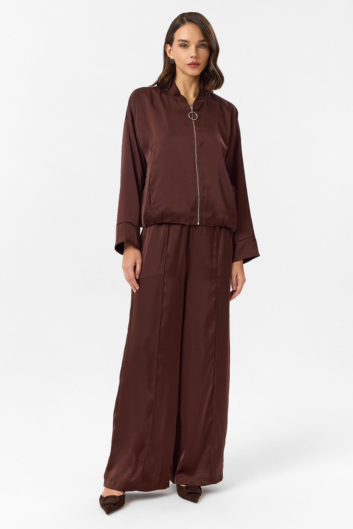 Önü Çimalı Saten Pantolon Önü Çimalı Saten Pantolon