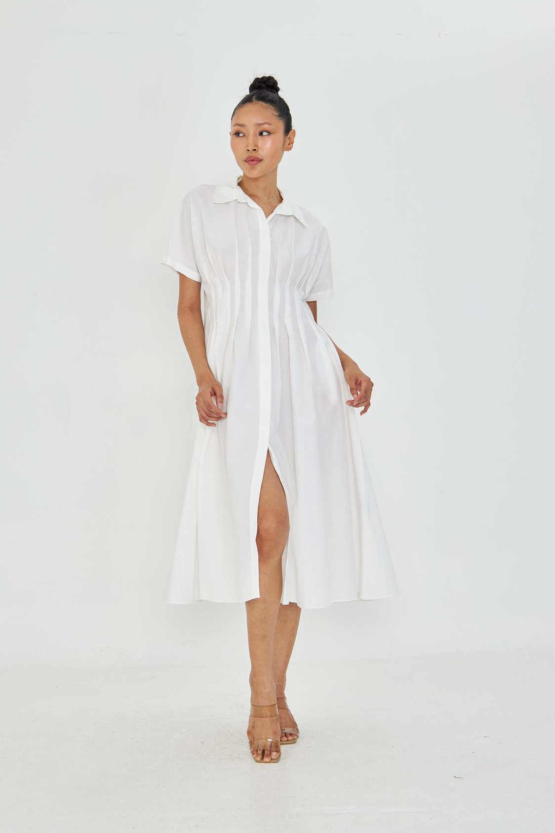 Pileli Gömlek Yaka Poplin Elbise (ELB0226Y)