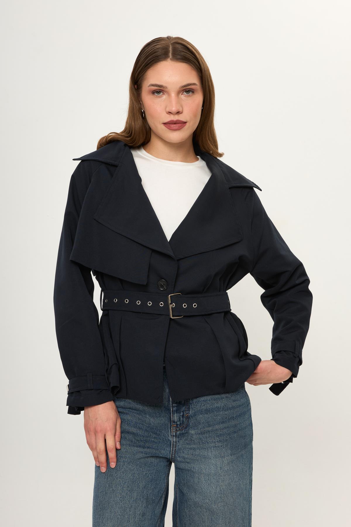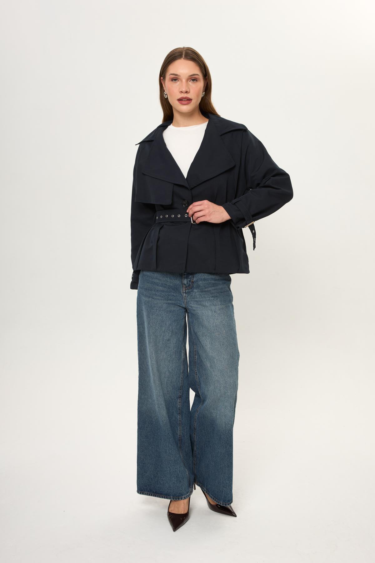 Pileli Kısa Trençkot (TRN0028Y)