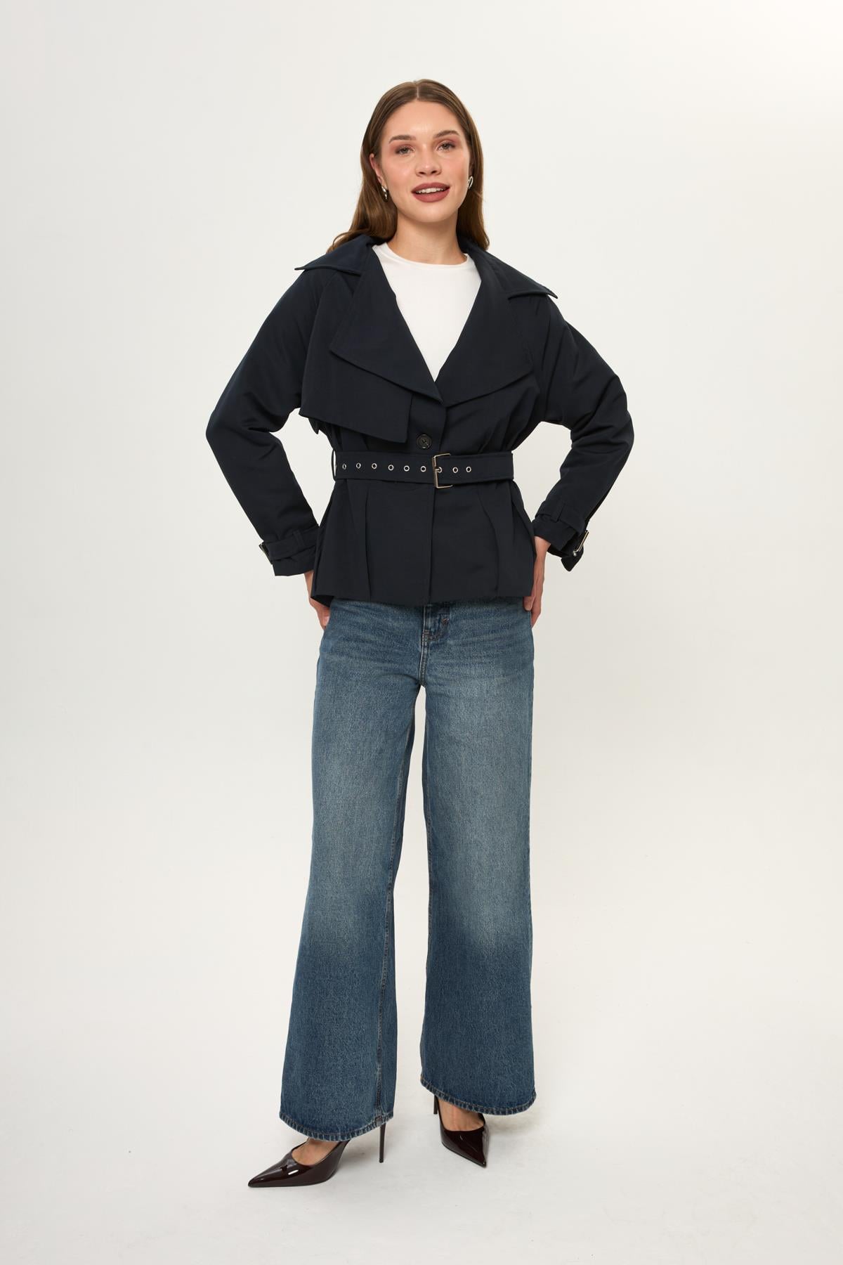 Pileli Kısa Trençkot Pileli Kısa Trençkot