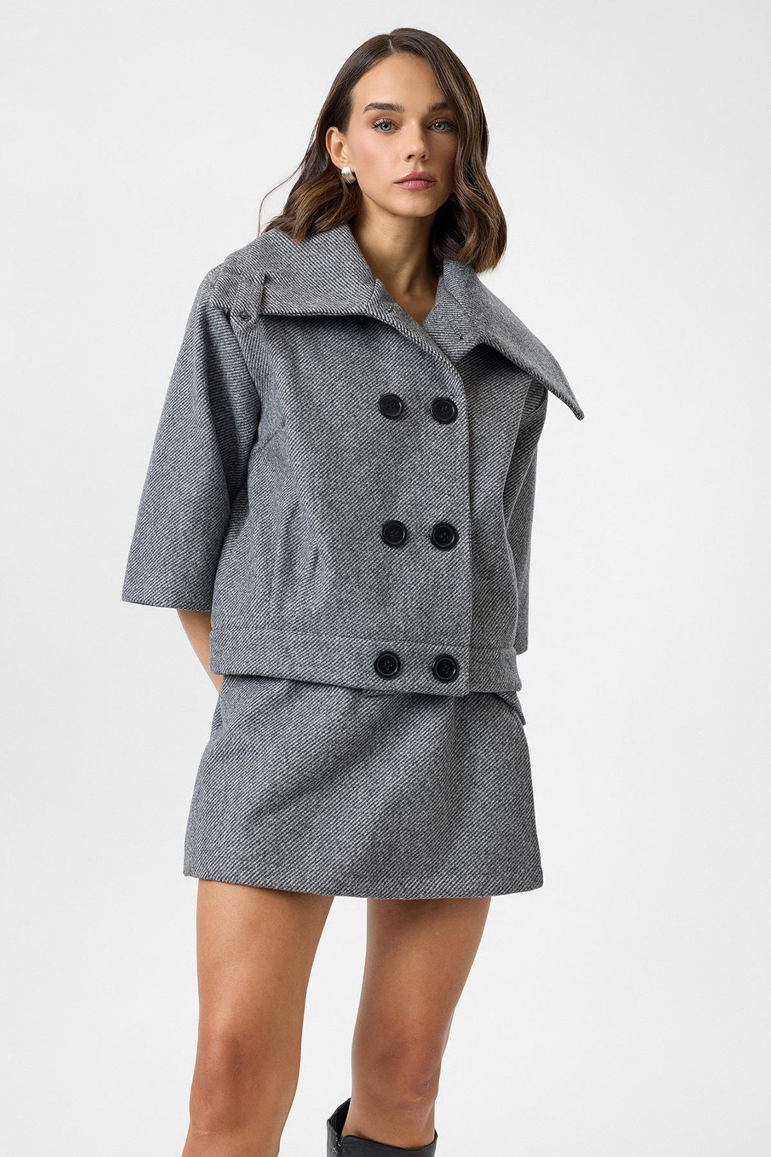 Pili Detaylı Diyagonel Kaşe Ceket (CKT0141K)