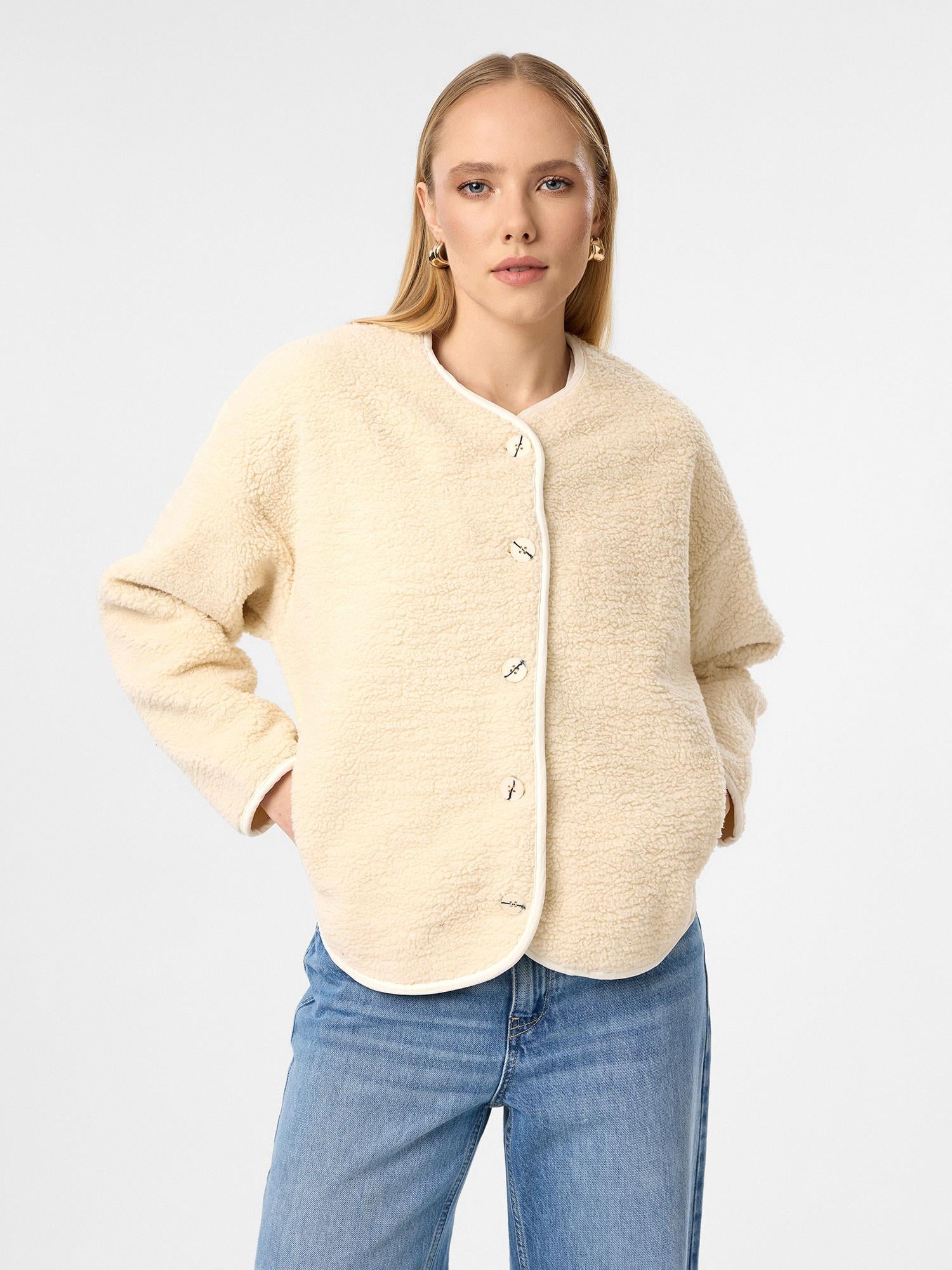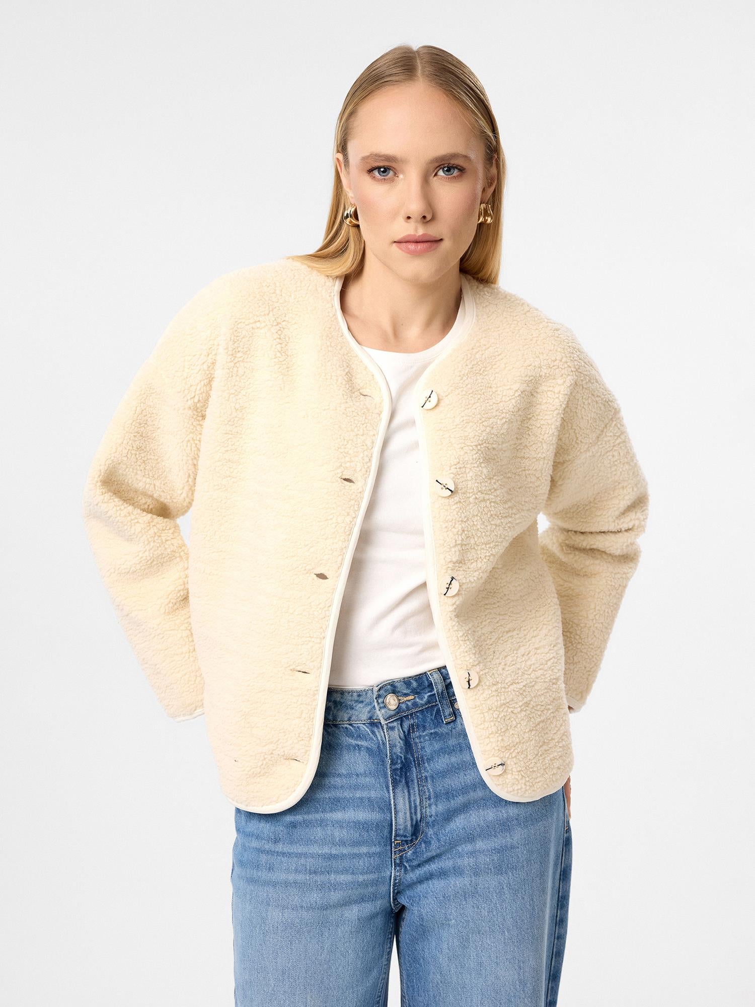 Polarlı Düğmeli Peluş Ceket