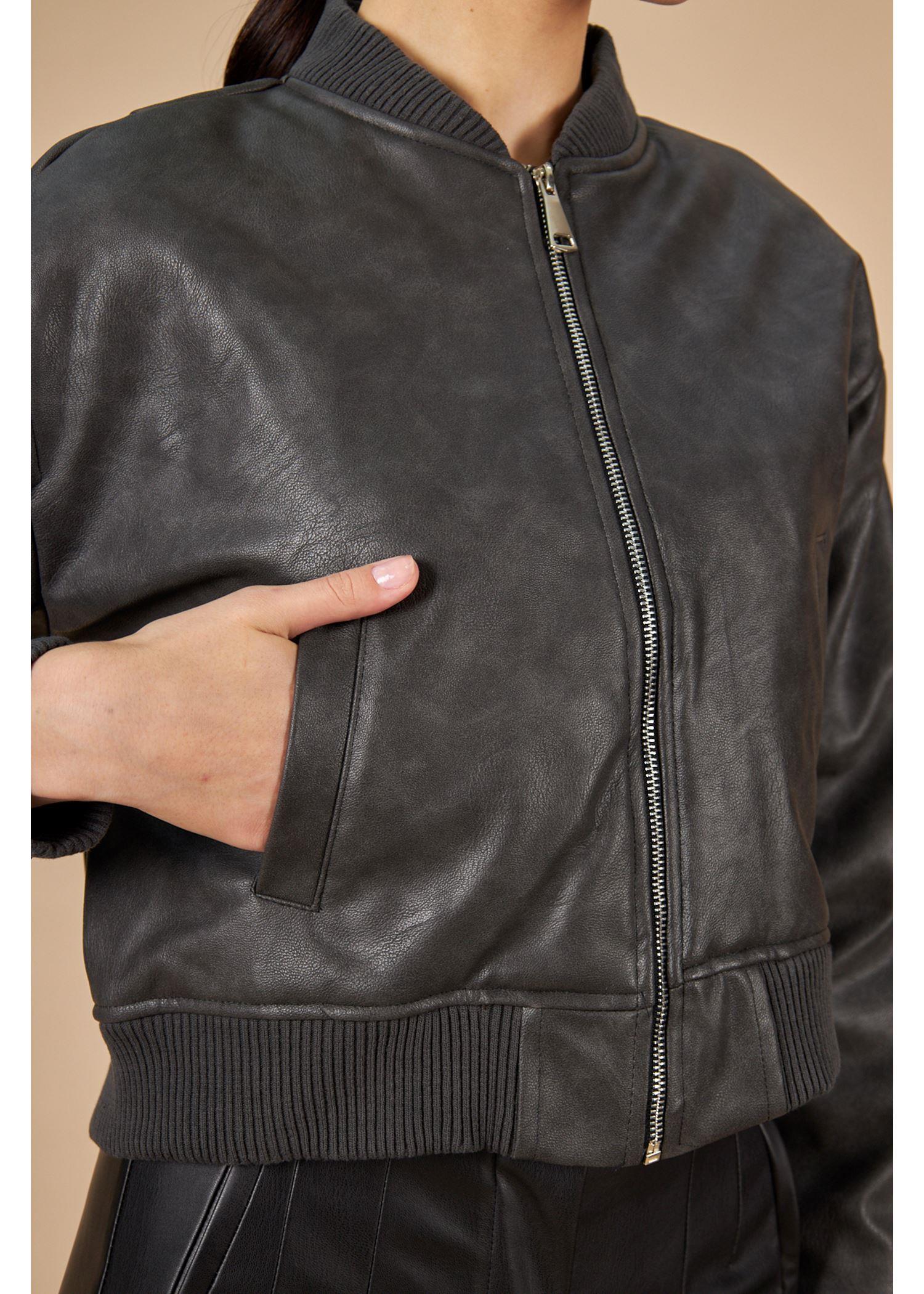 Ribanalı Eskitme Deri Mont (MNT0035K)