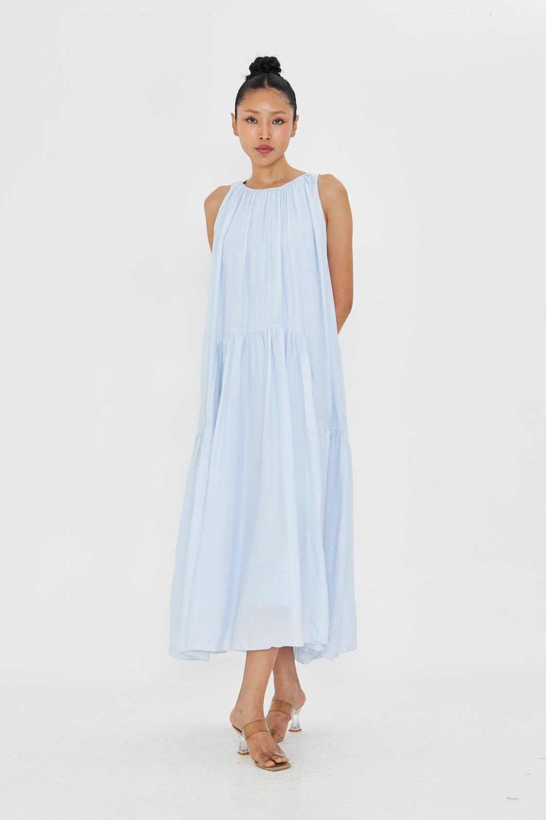 Sıfır Kol Fırfırlı Uzun Elbise (ELB0218Y)