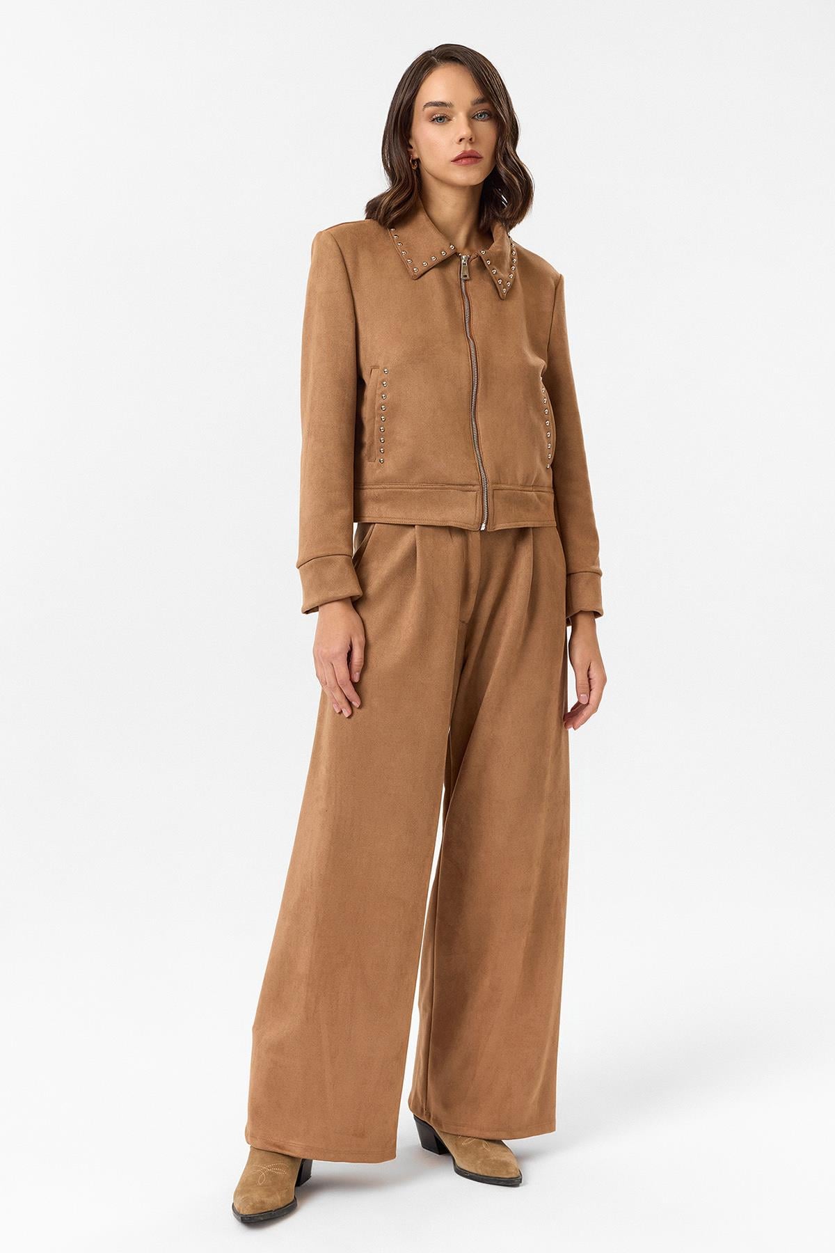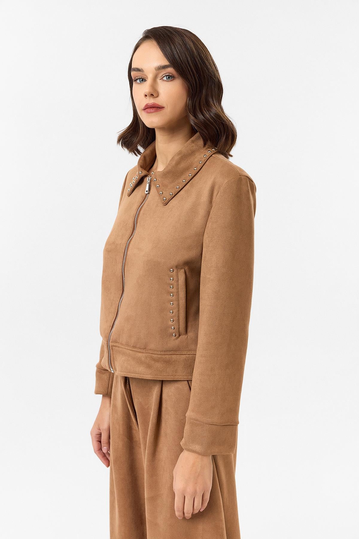 Taş Detaylı Fermuarlı Süet Ceket (CKT0159K)