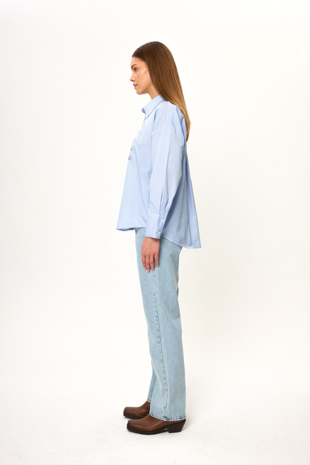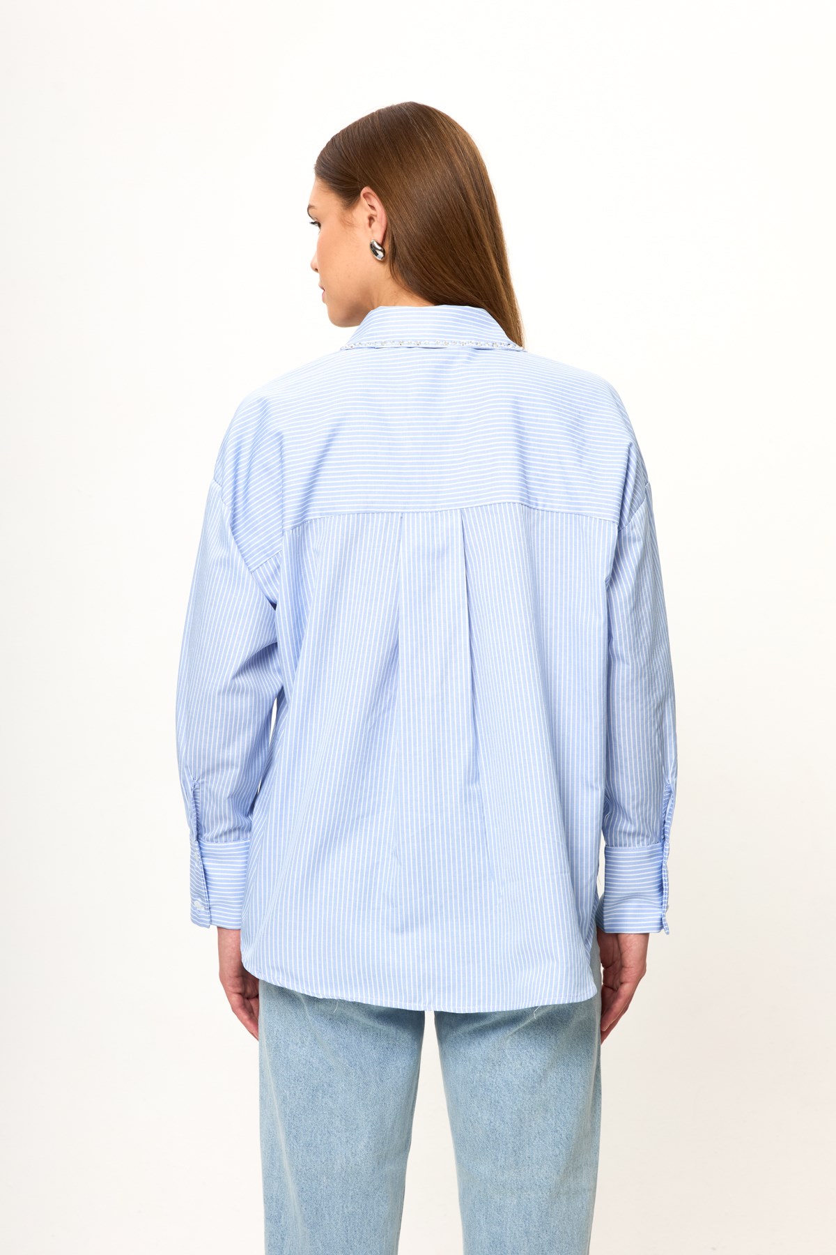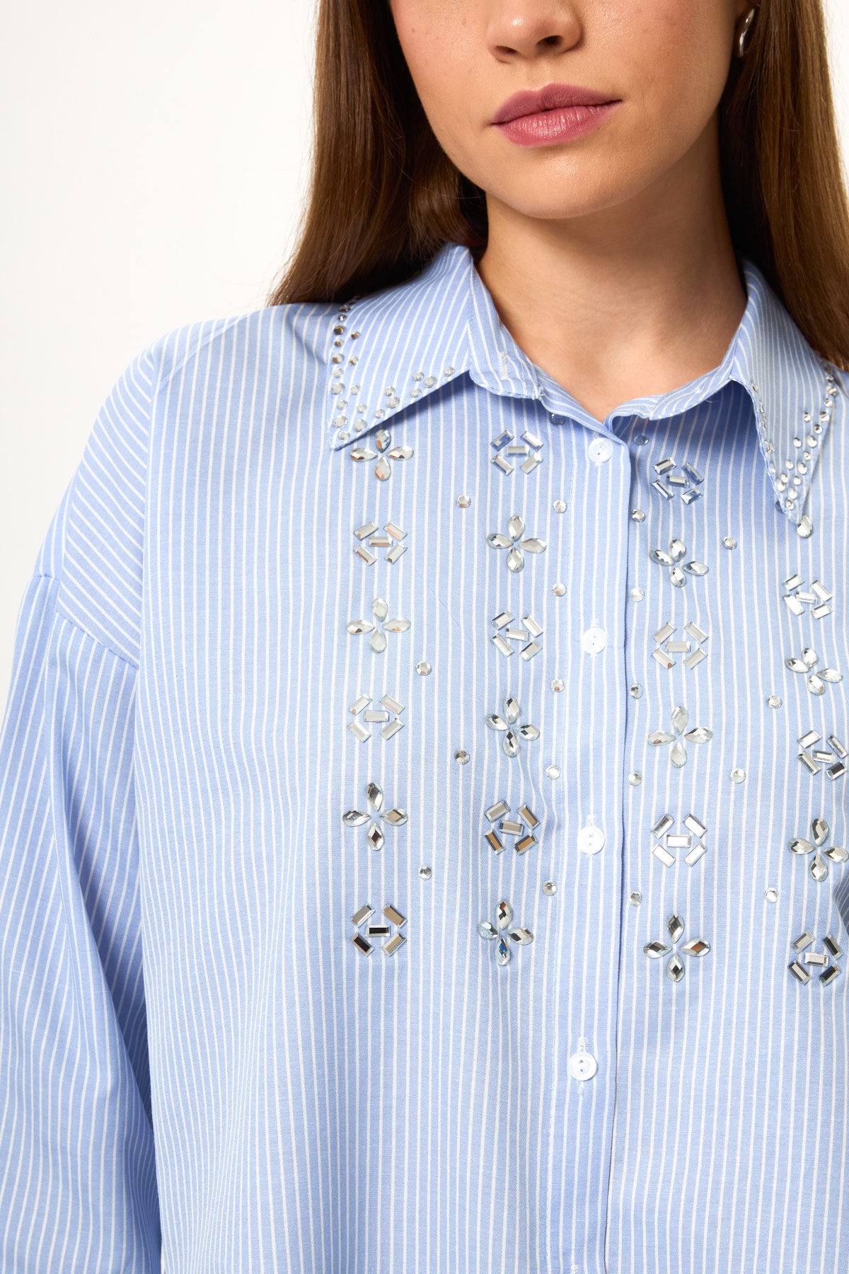 Taş İşlemeli Çizgili Gömlek (GML0367Y)
