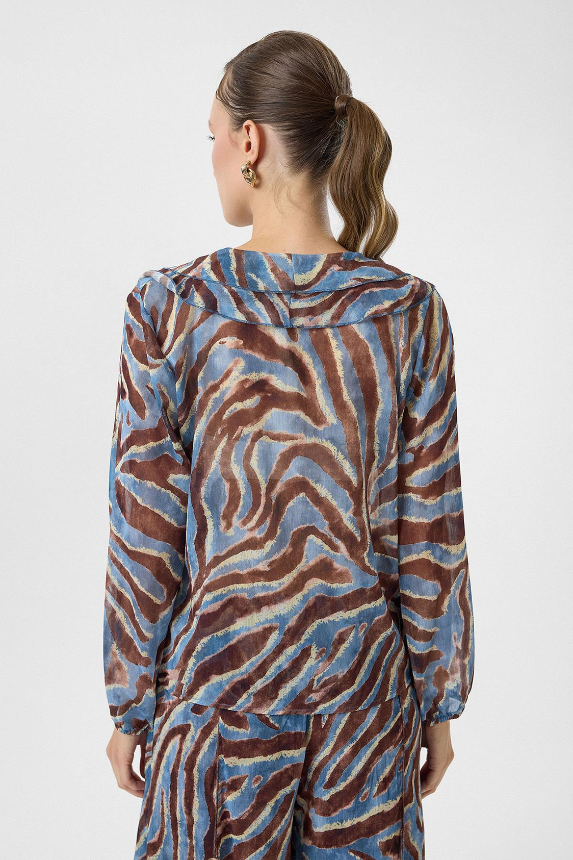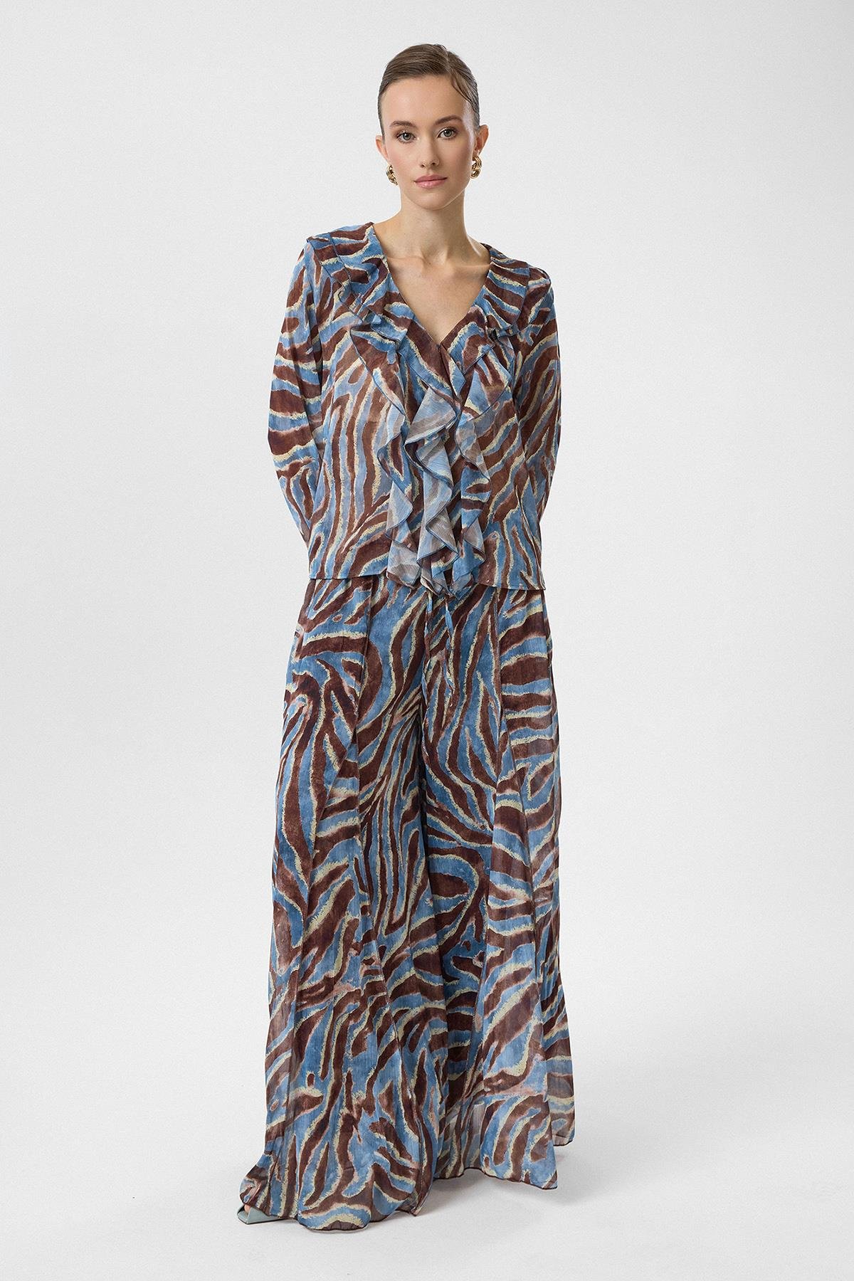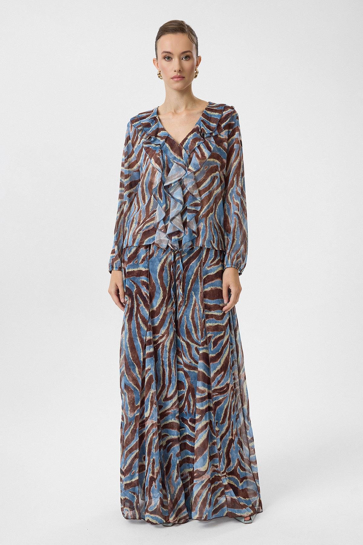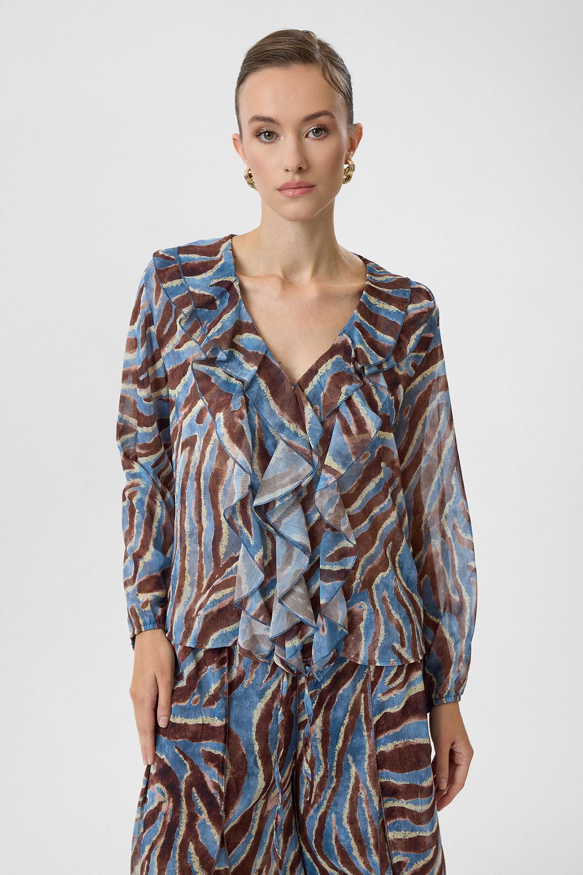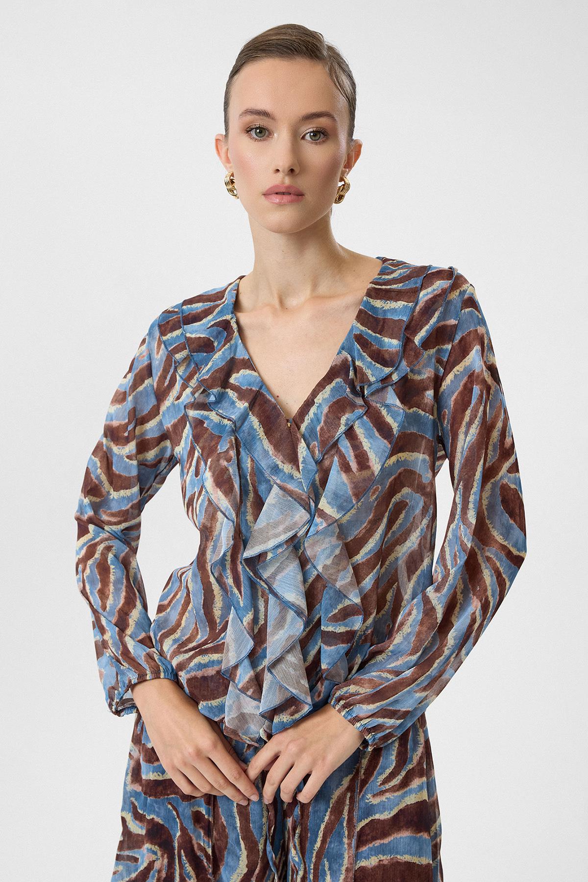 Volanlı Desenli Şifon Bluz (BLZ0084K)