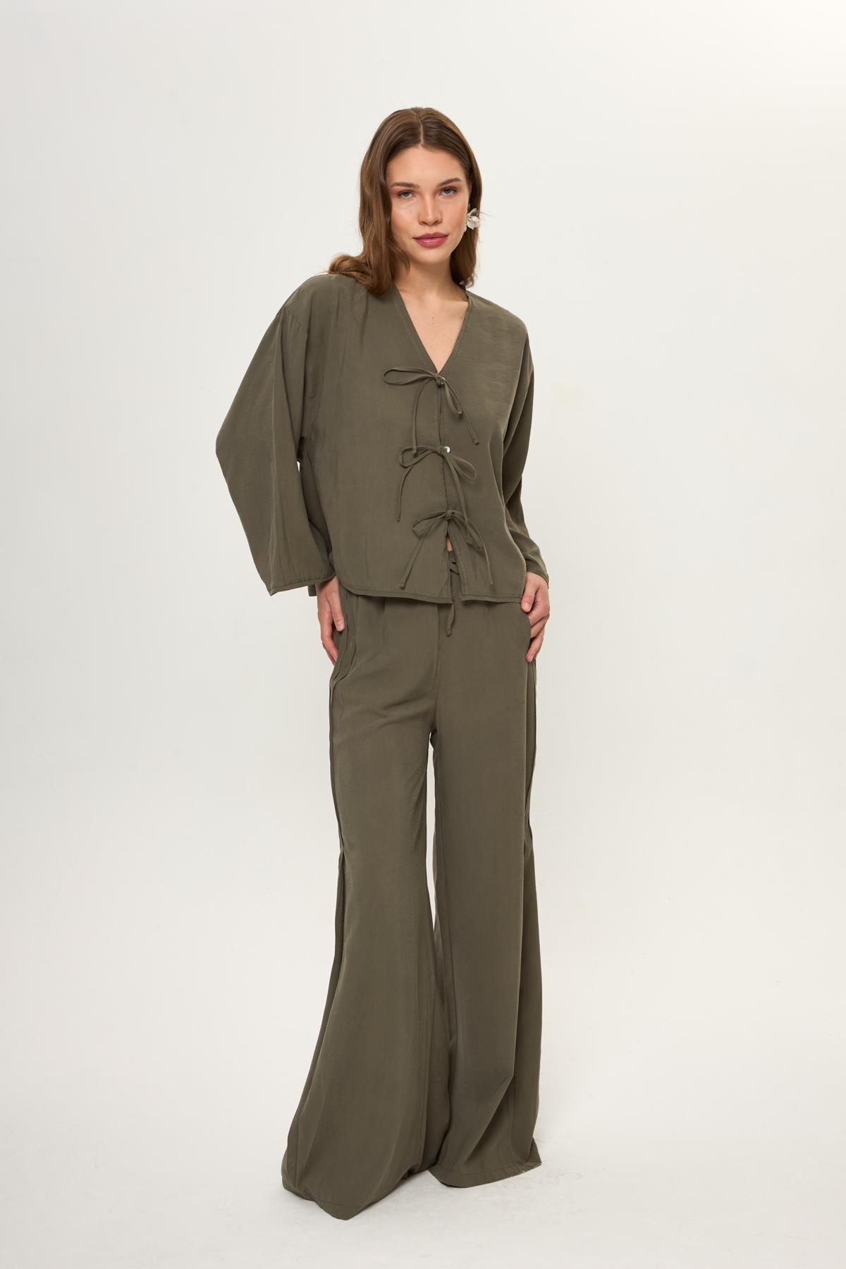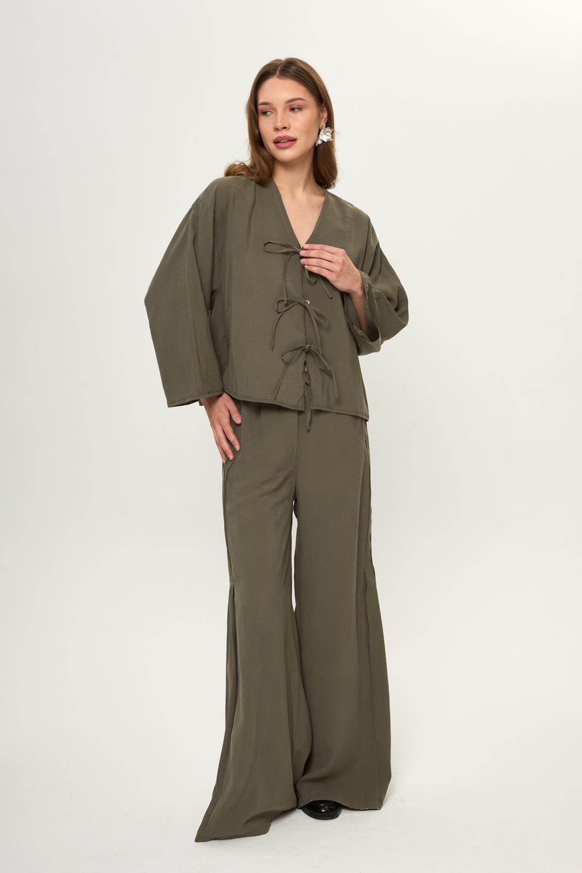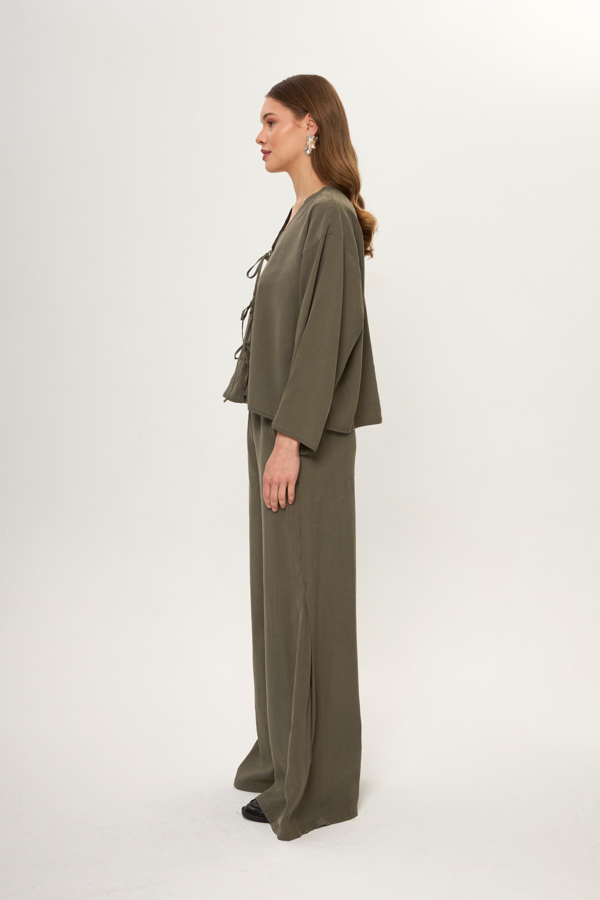 Yanı Pileli Cupra Pantolon (PNT0274Y)